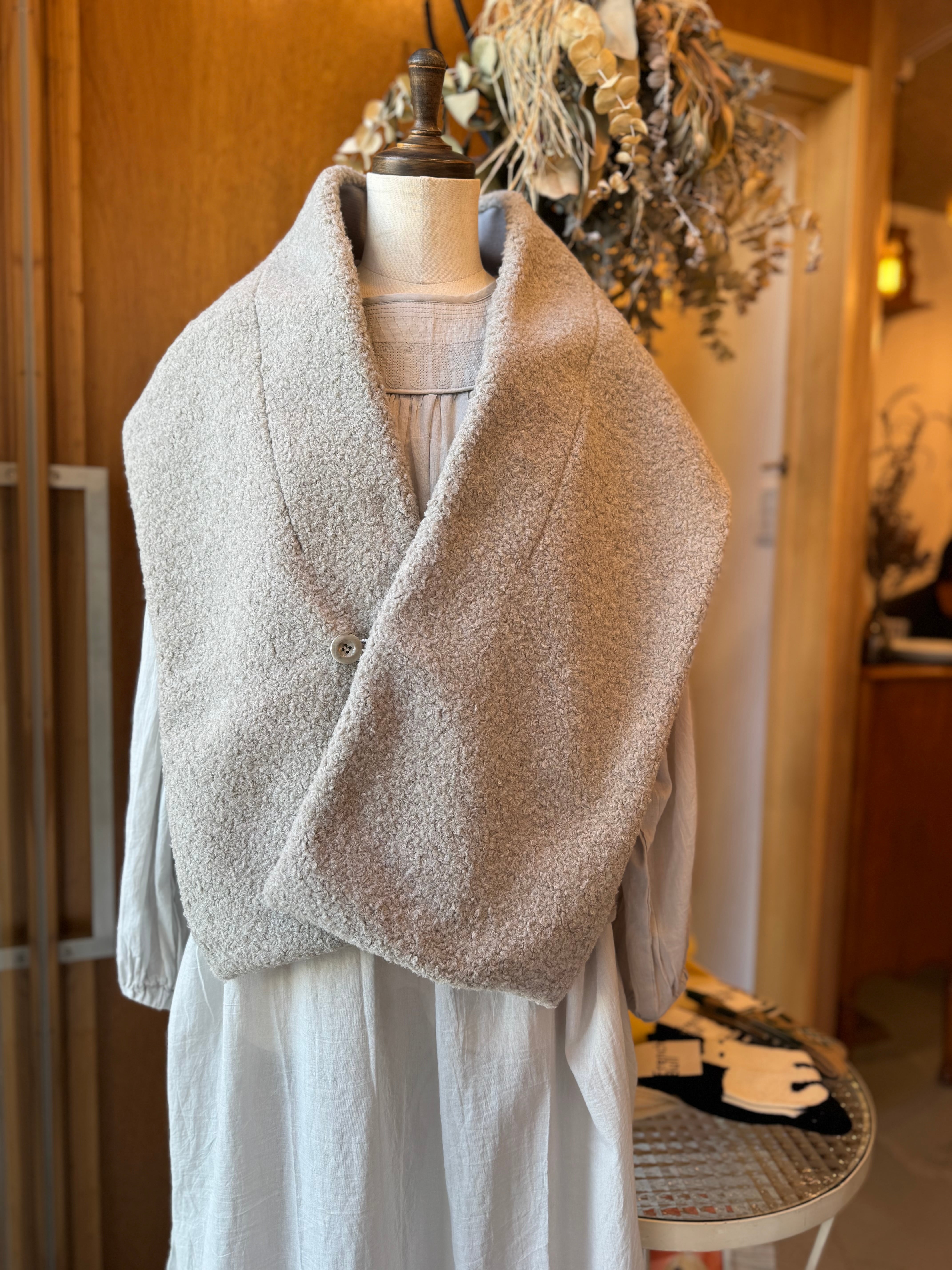 非常に軽くエアリーな素材ですが、キルトのヨークにより肩におさまりがよく綺麗に乗ってくれるので、ふわふわと動いて着崩れてしまう事もないなと感じました!