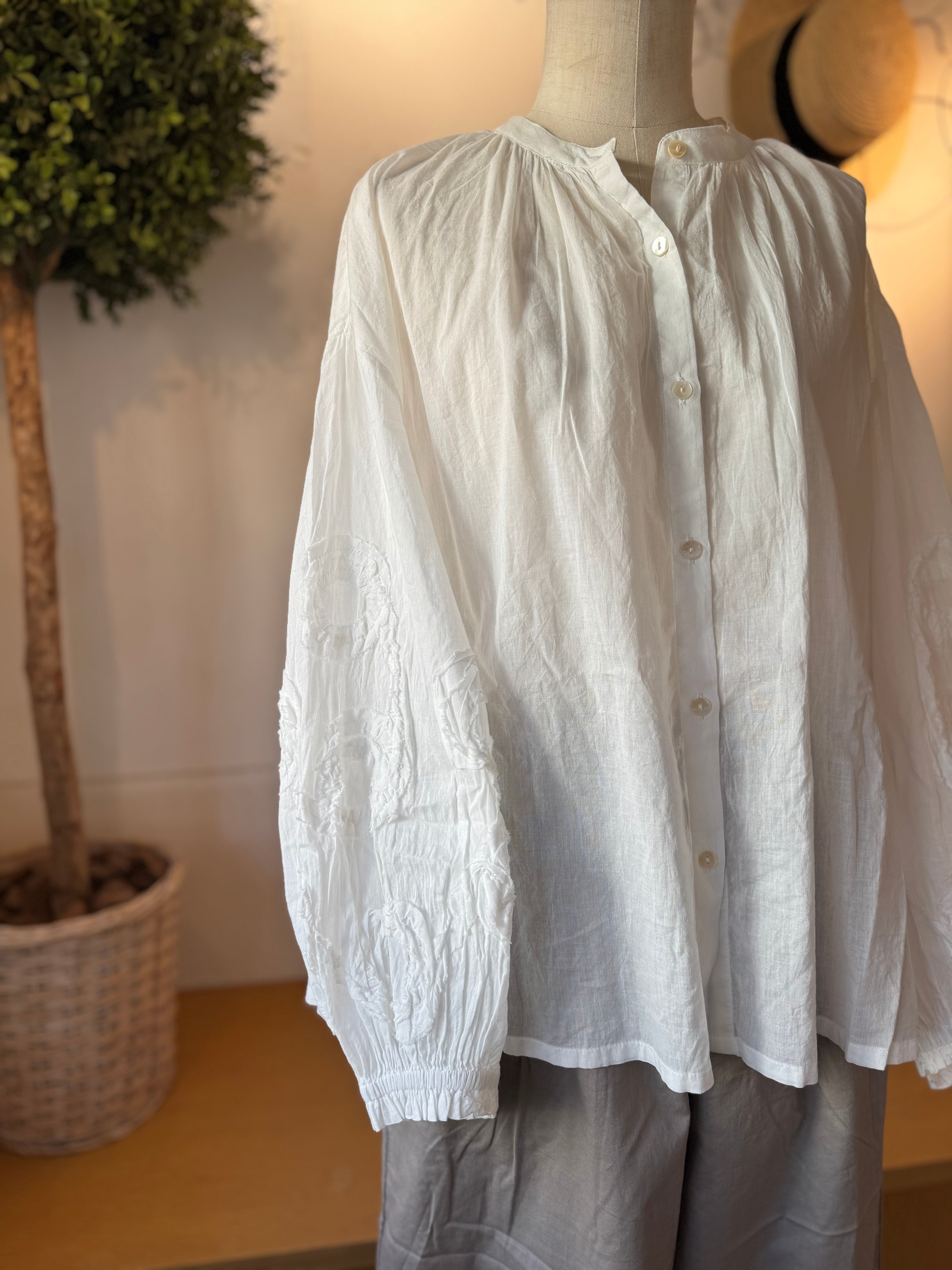 柔らかく仕上げたコットンボイル生地をたっぷりと使ったブラウス