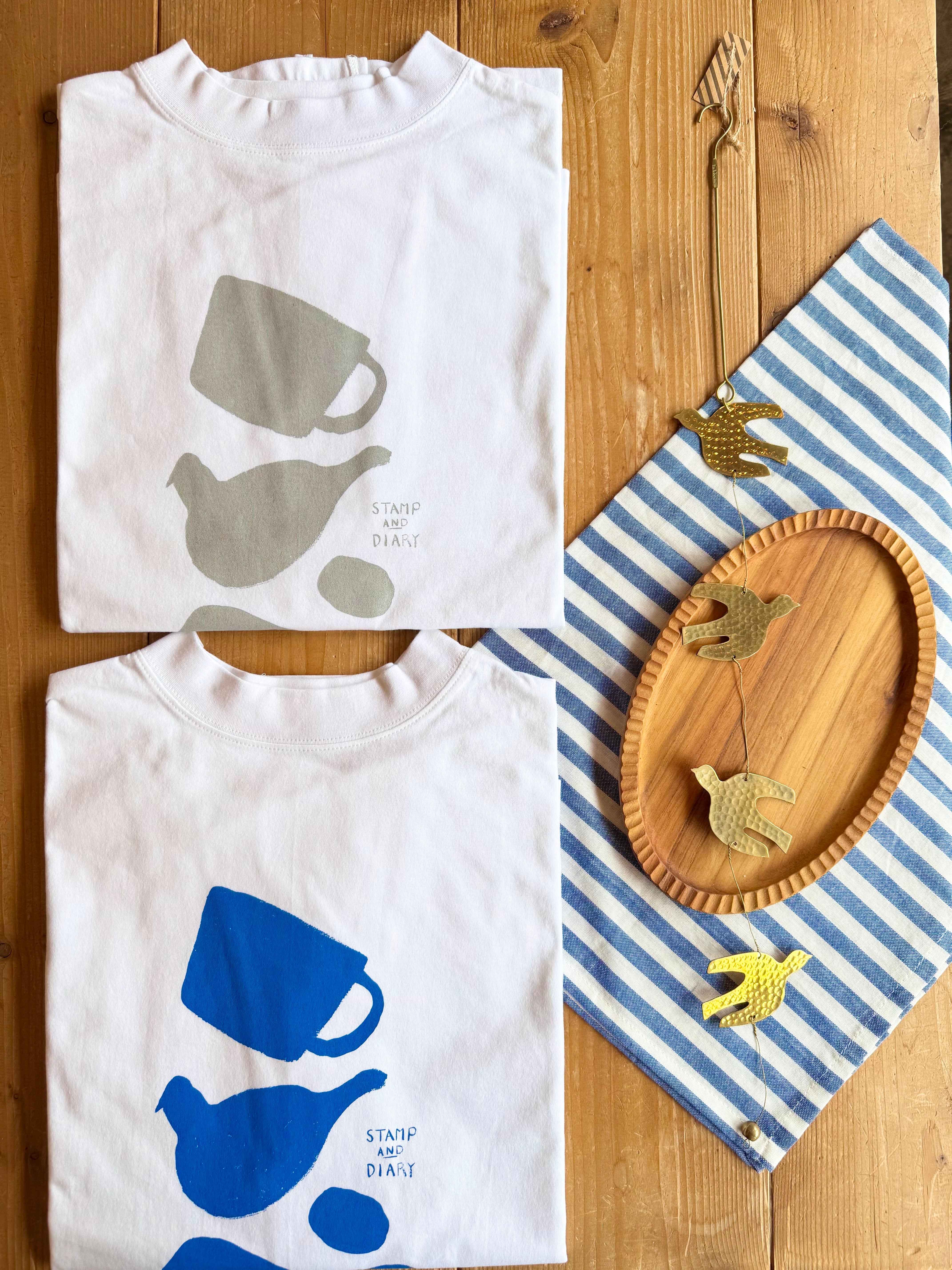STAMPS AND DIARY "Bird & cup " プリントカットソー