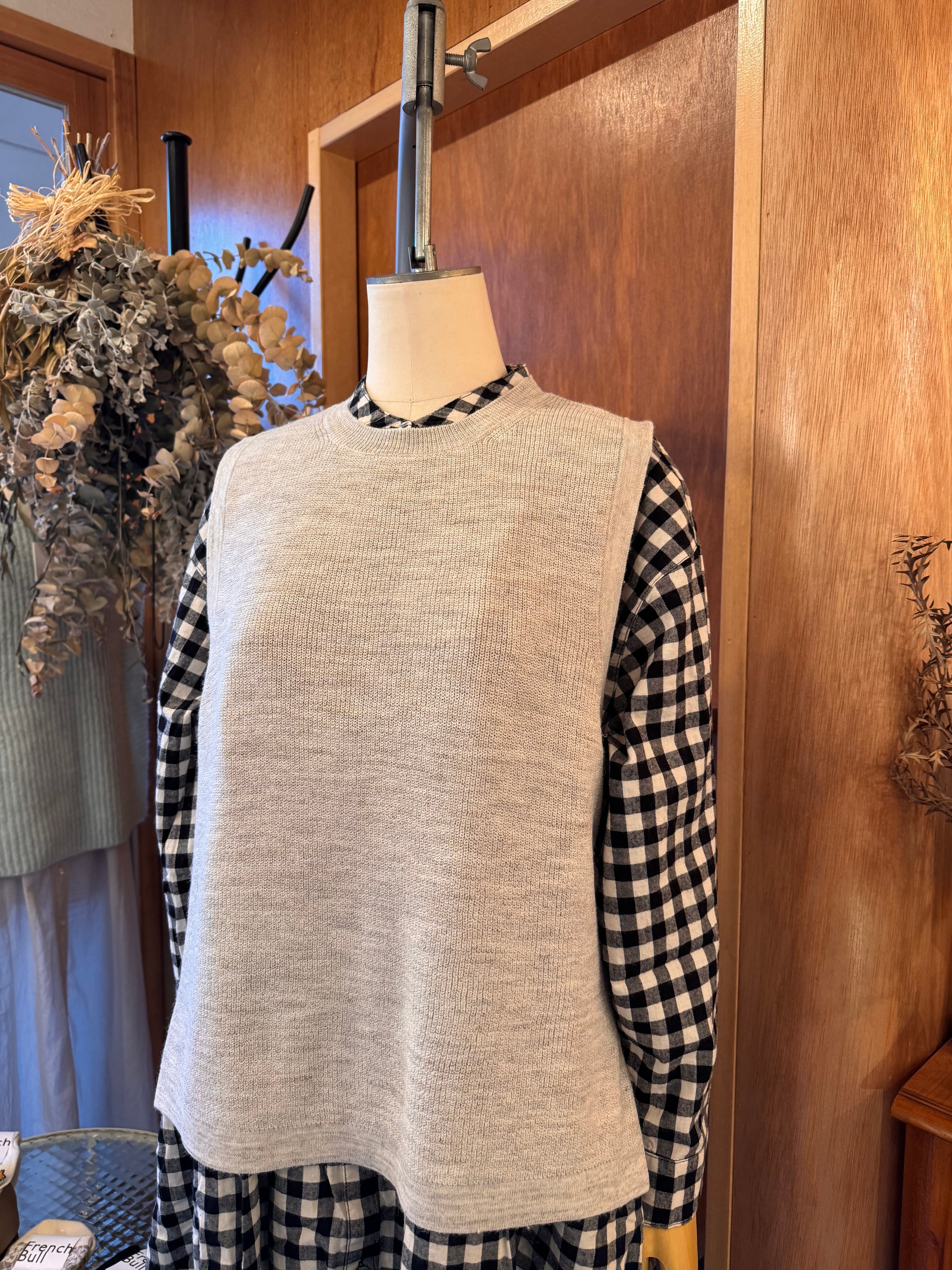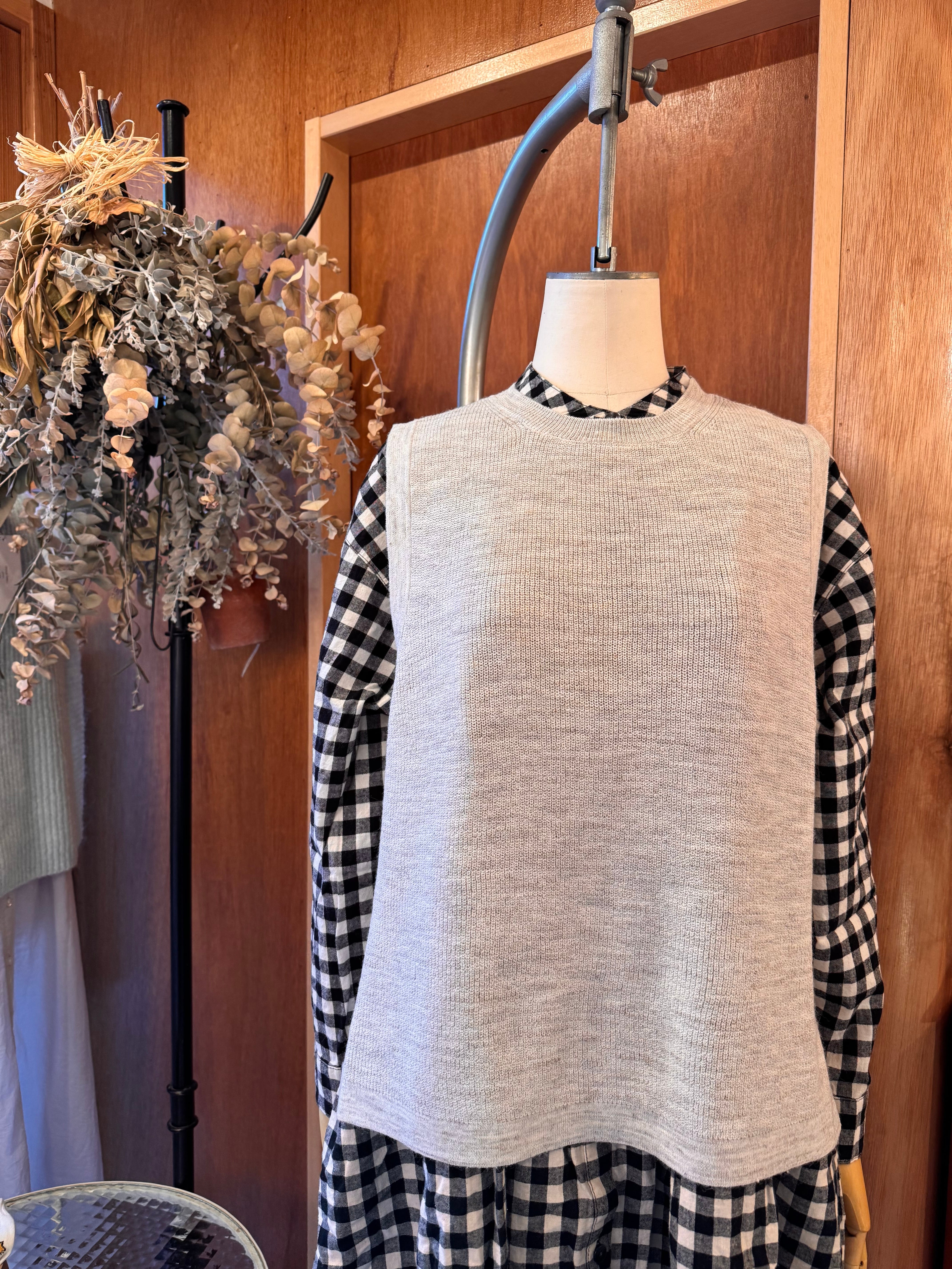 麻やコットン、ウールなどミックスしていてシンプルながら表情のある編み地になっています
