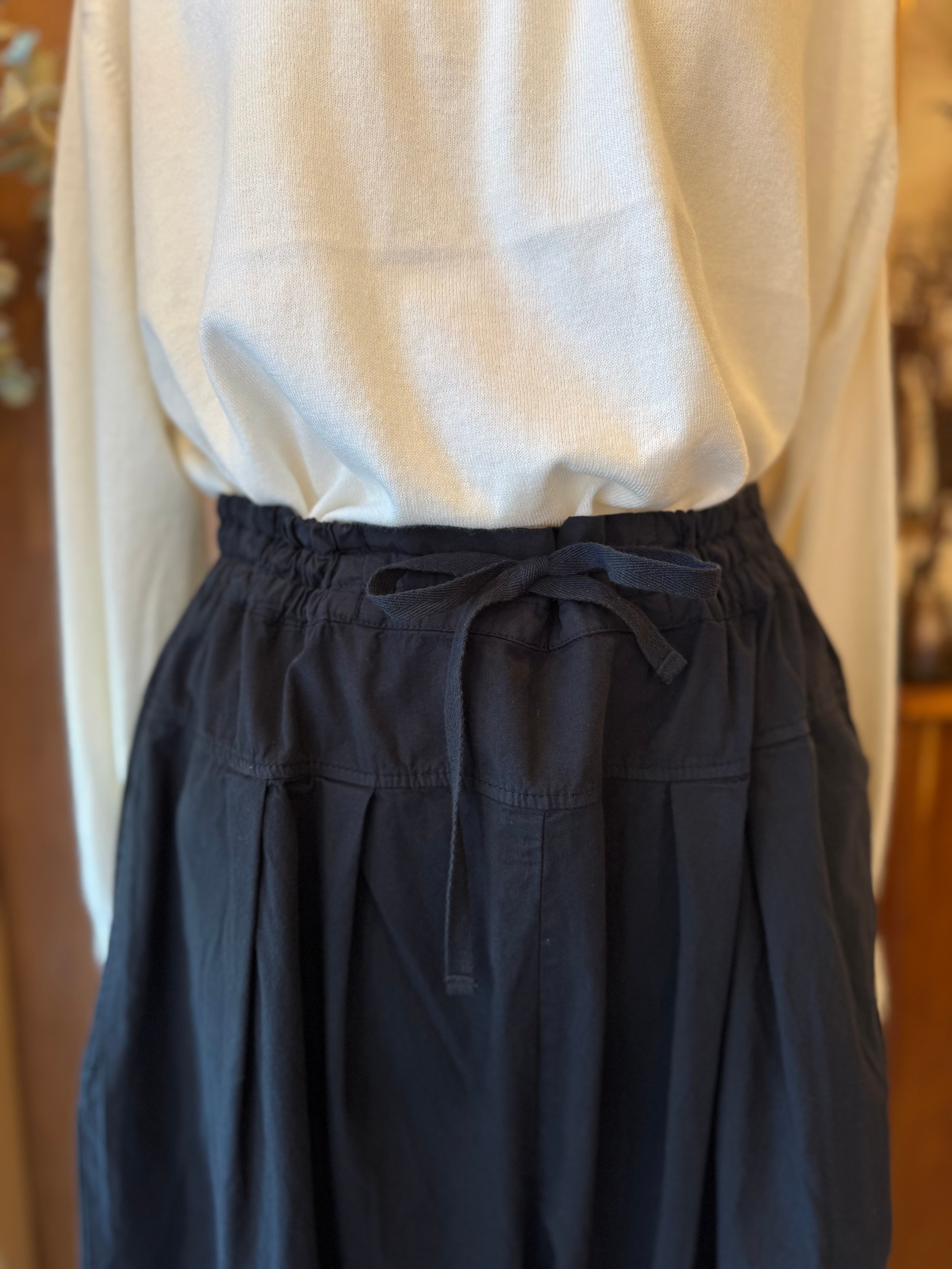 ウエスト下にタックを入れてふんわりストレートなシルエットに仕立てたコットンパンツです