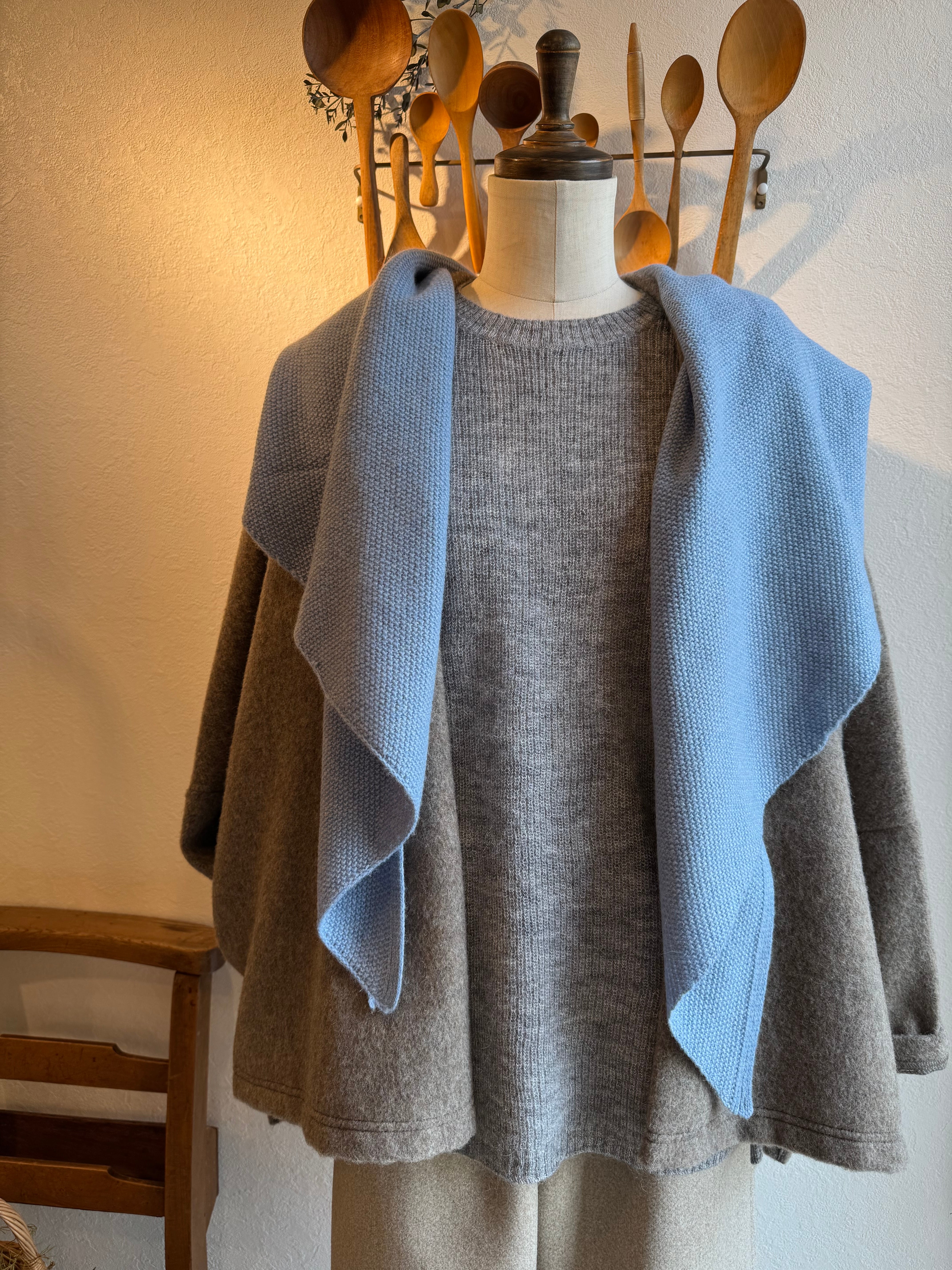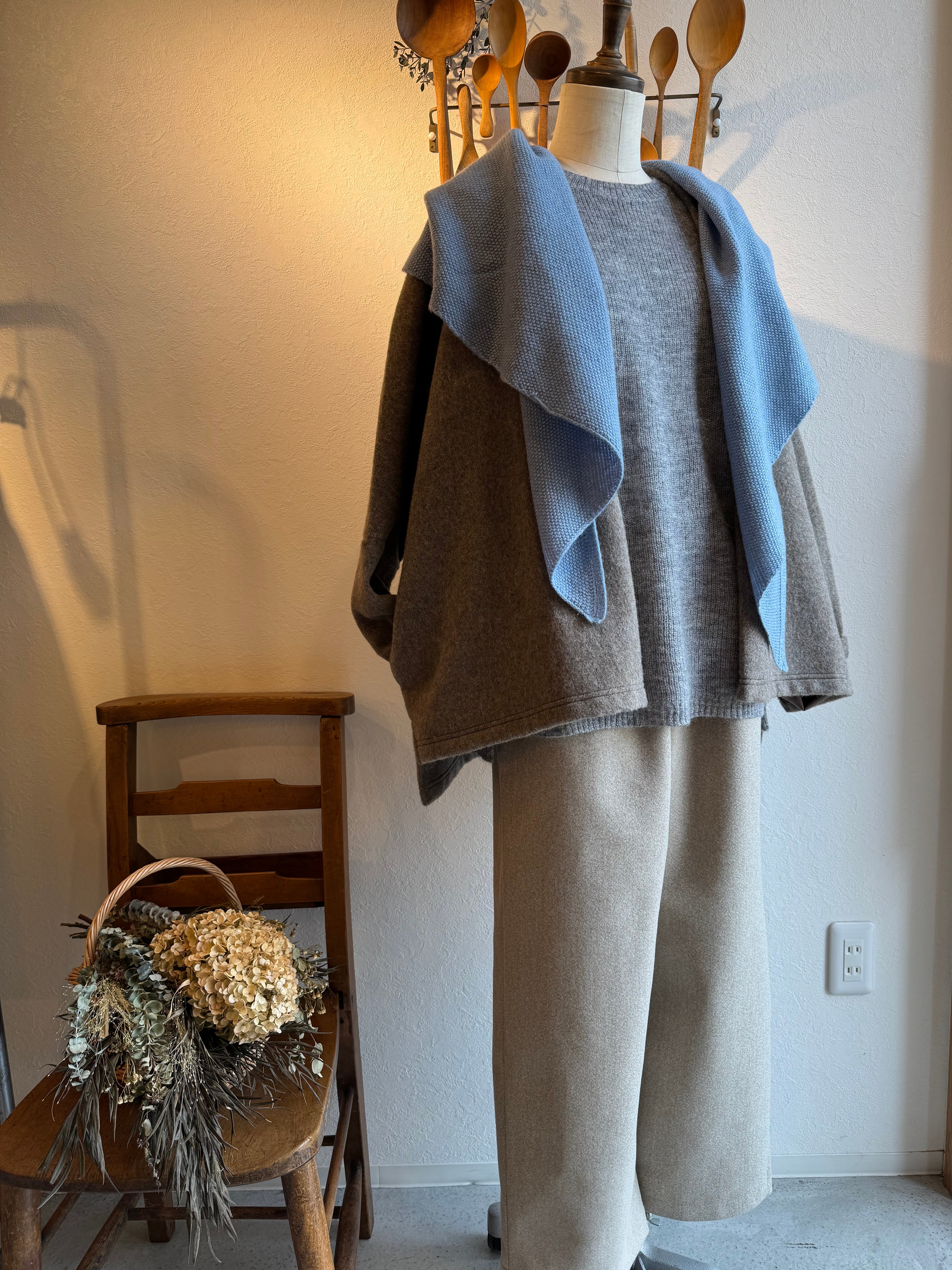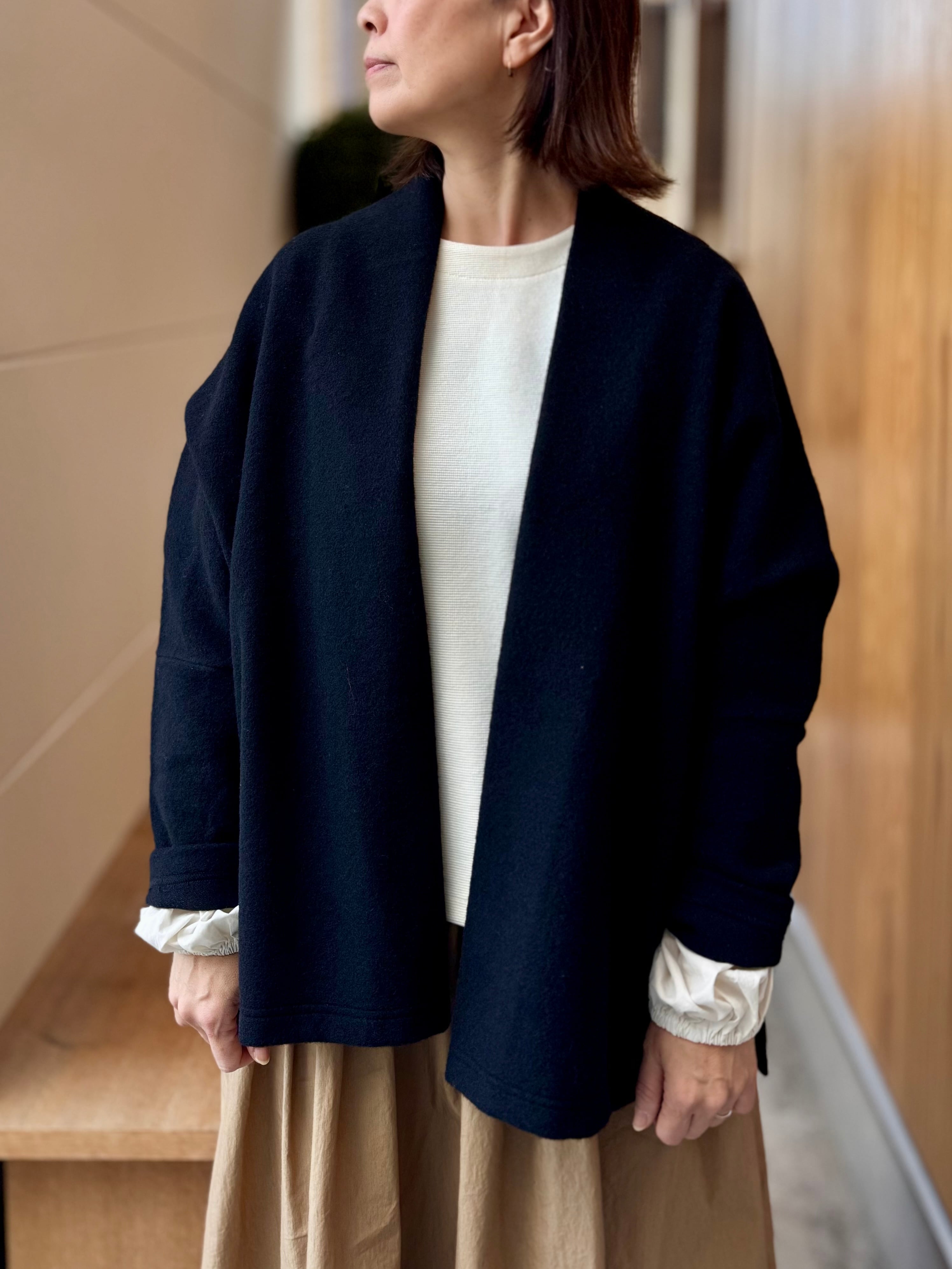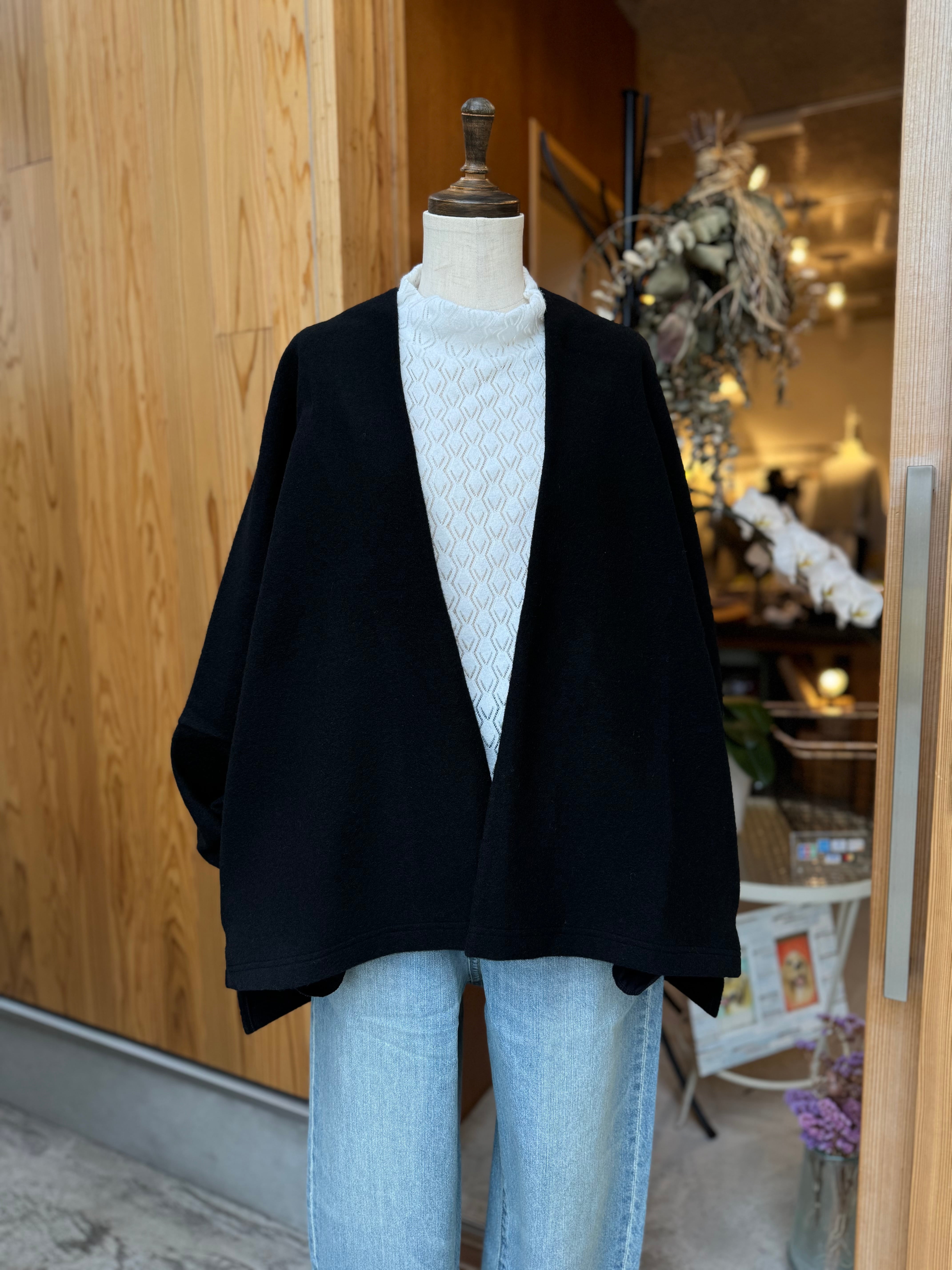大判ストールを掛けているようなラフなシルエットですが、しっかり着崩れせずに着られます