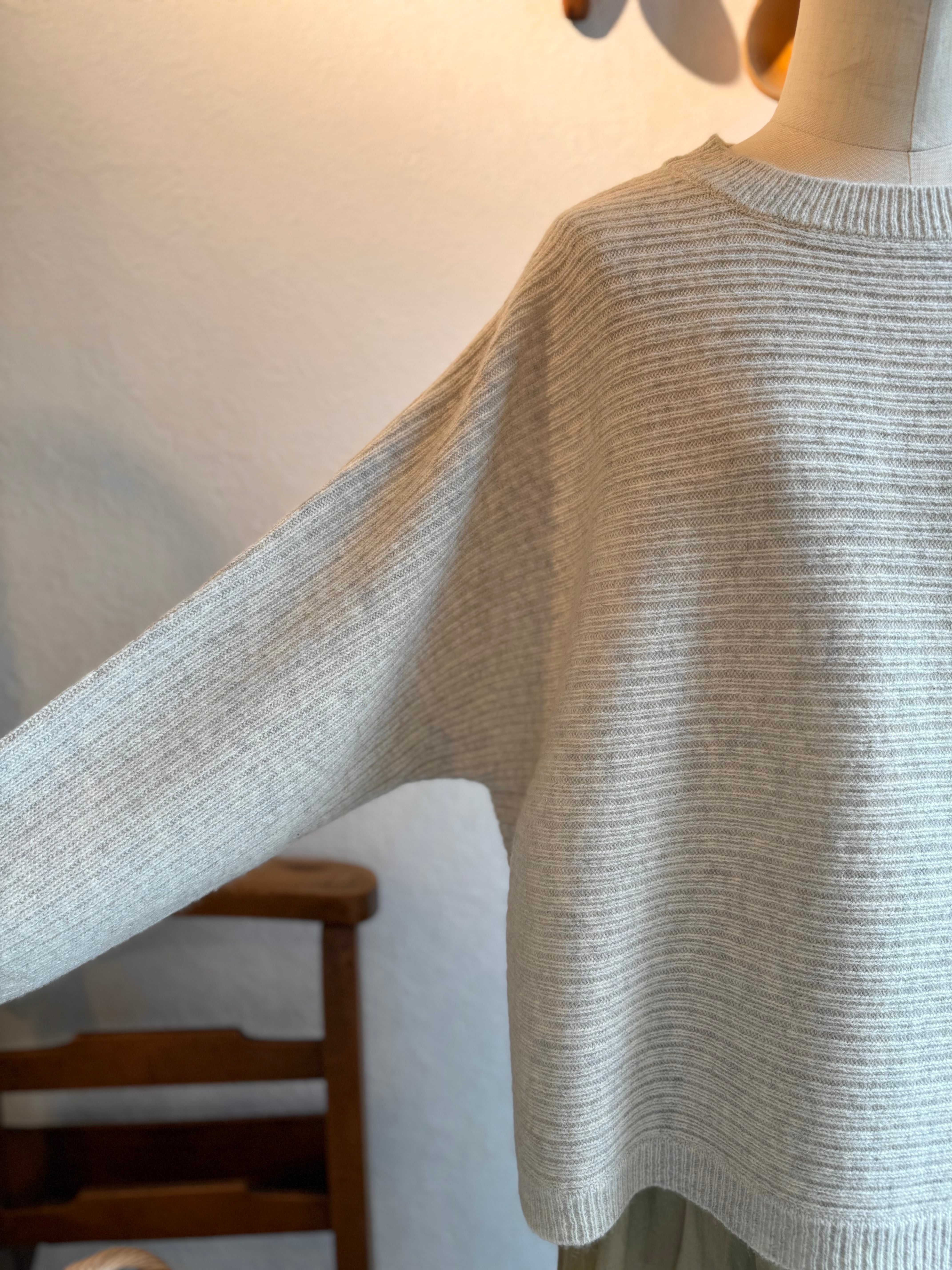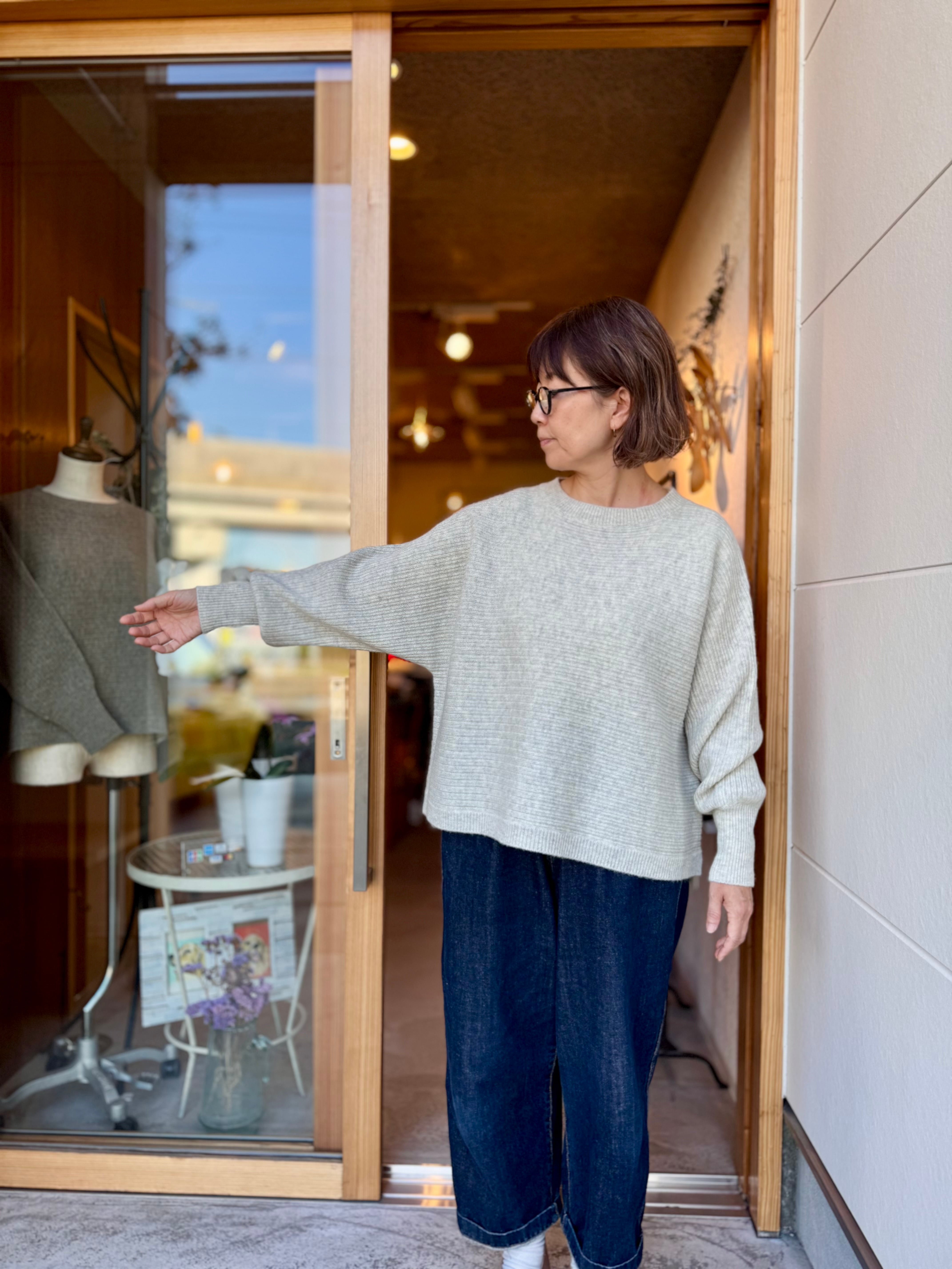 糸の度目を詰めずに作られているため、ゆったりしたシルエットでも驚くほど軽くて着心地がとても良いです