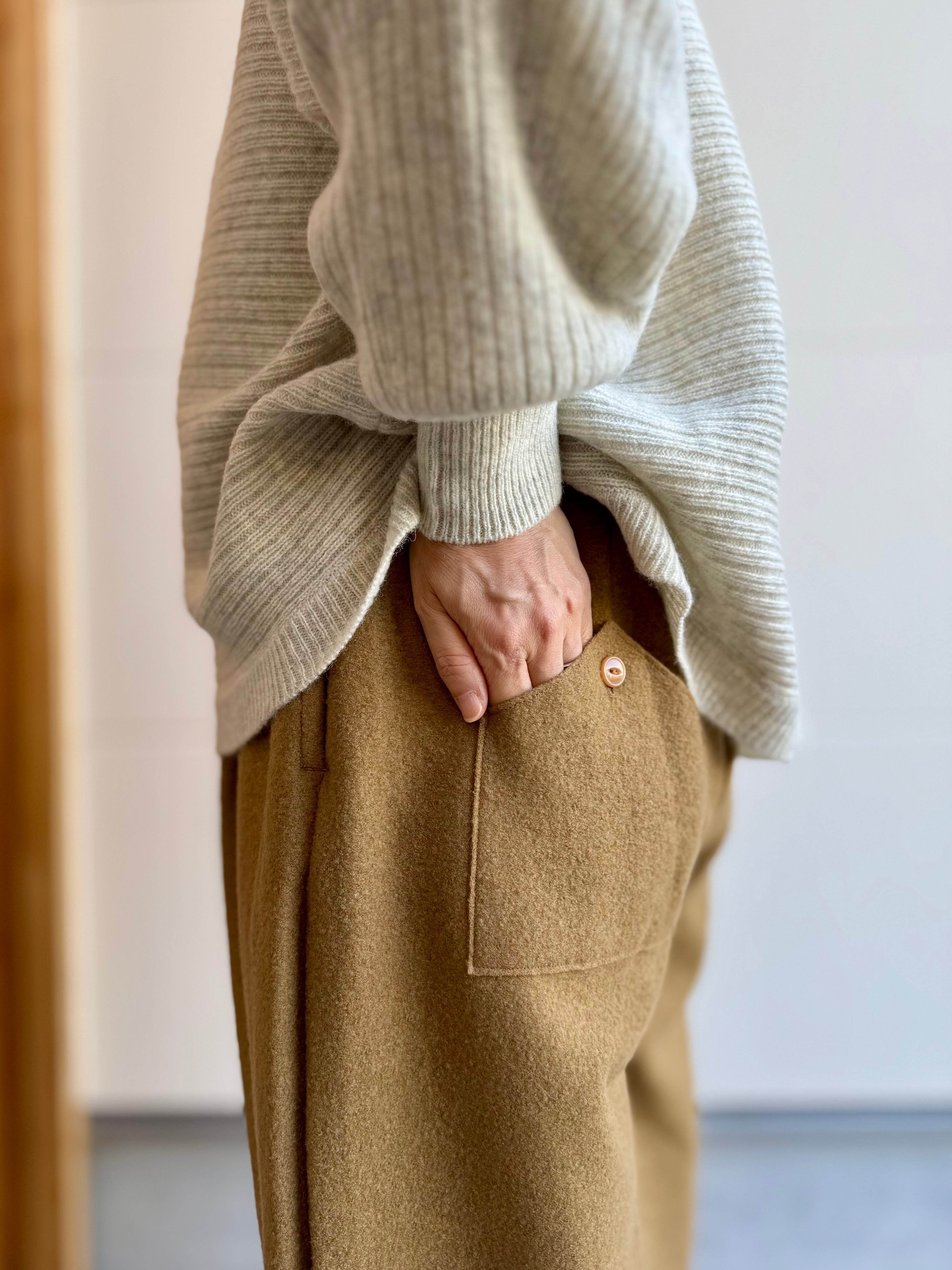 温かみのあるウールのパイル編みが空気を含んでふんわりとした雰囲気のボンタンパンツです