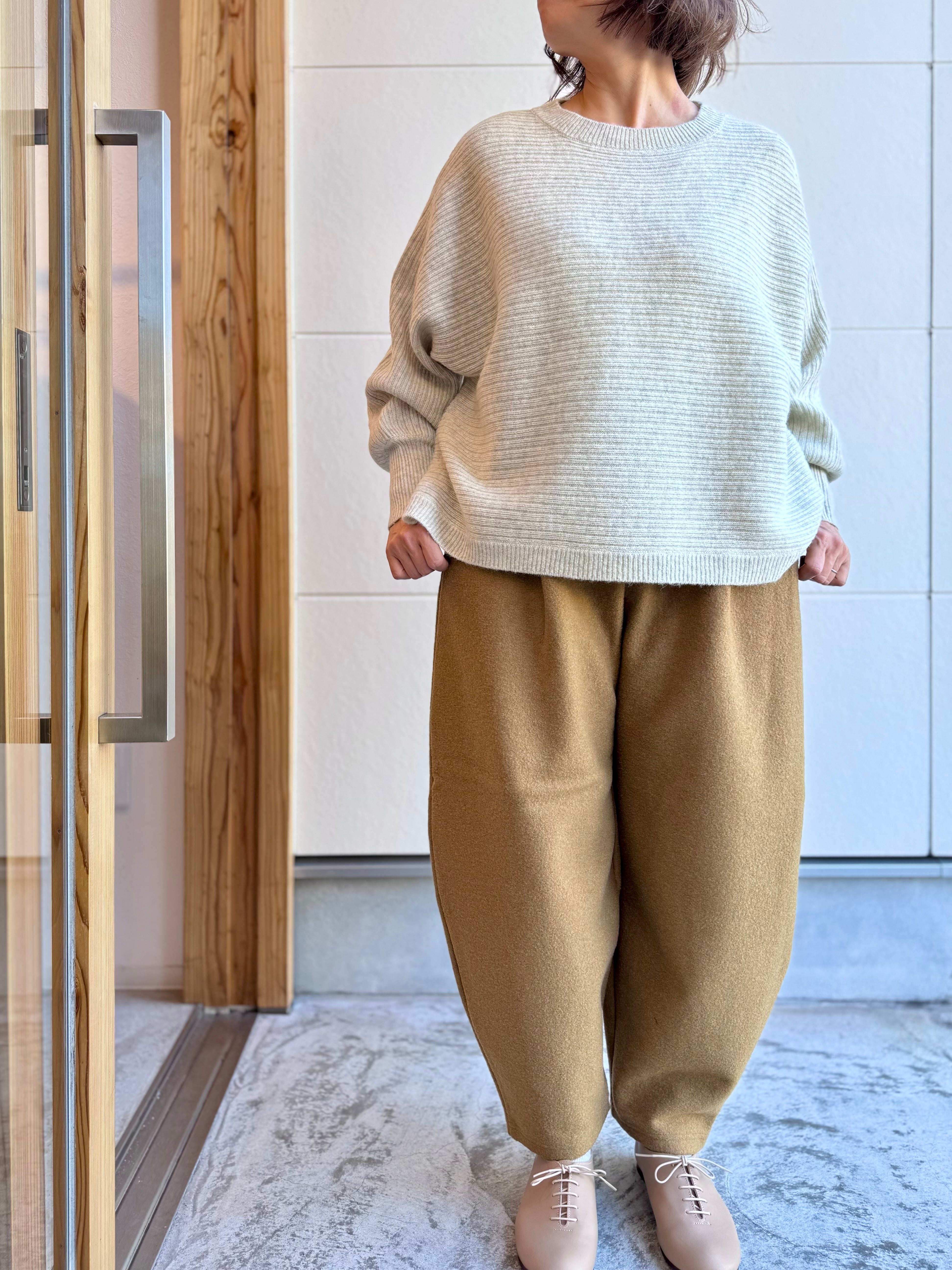 ウールリングの素材感ととても良く合っていて秋冬たくさん着たくなるパンツになっています