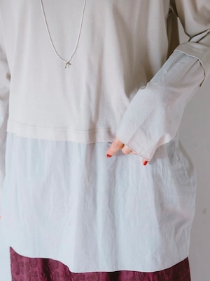 裾と袖にコットン布帛をドッキングしたカットソー