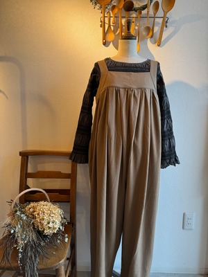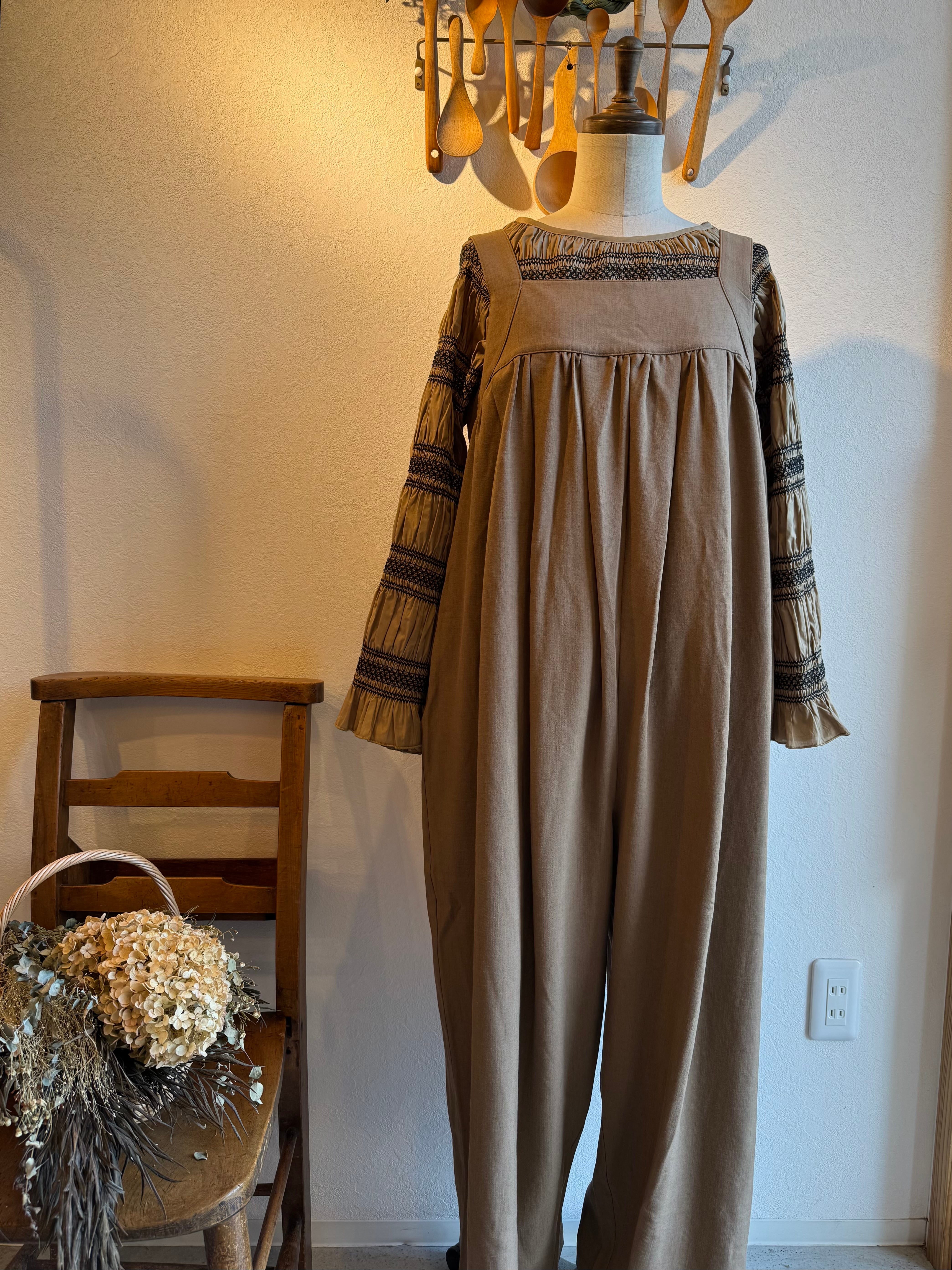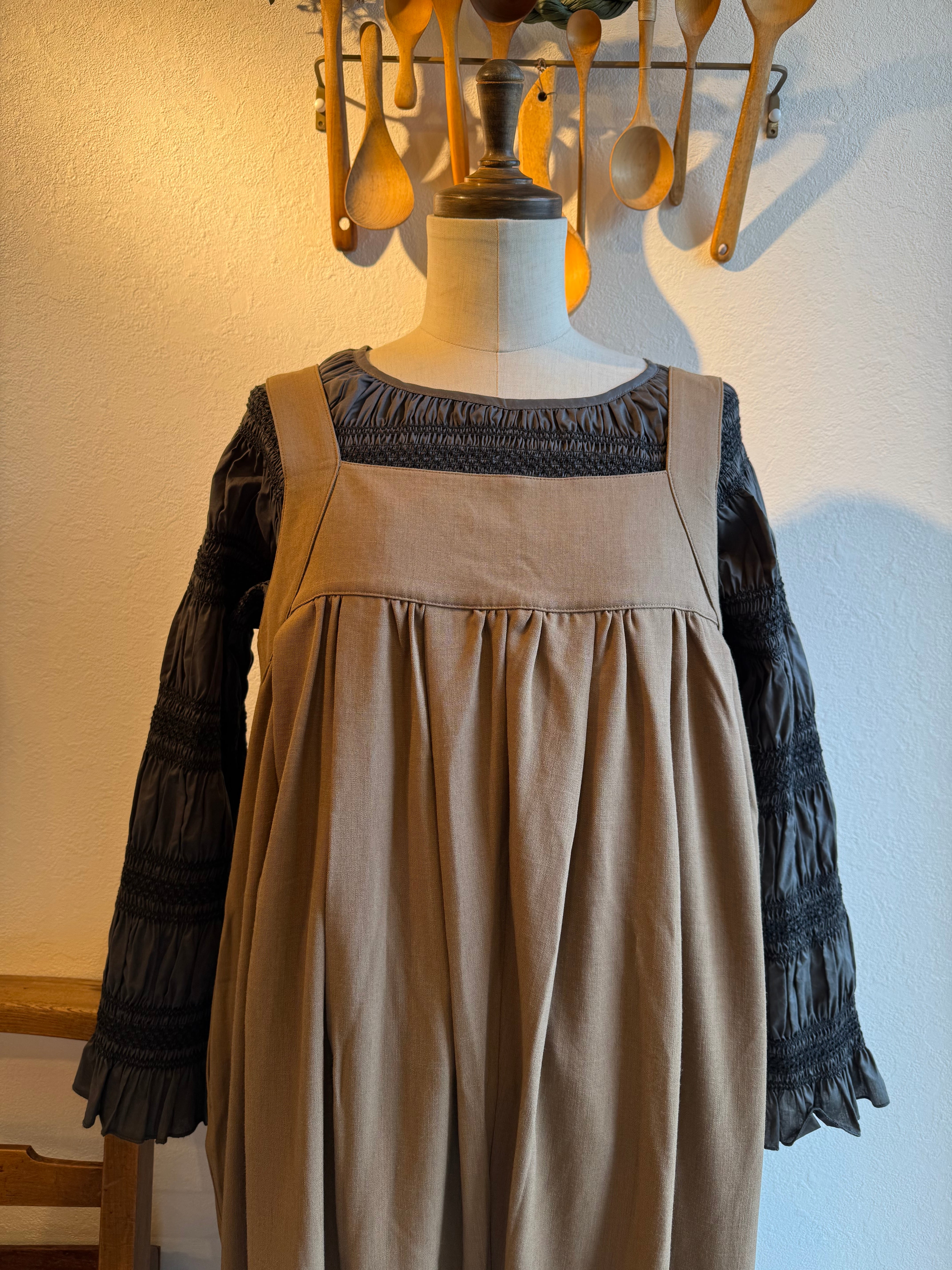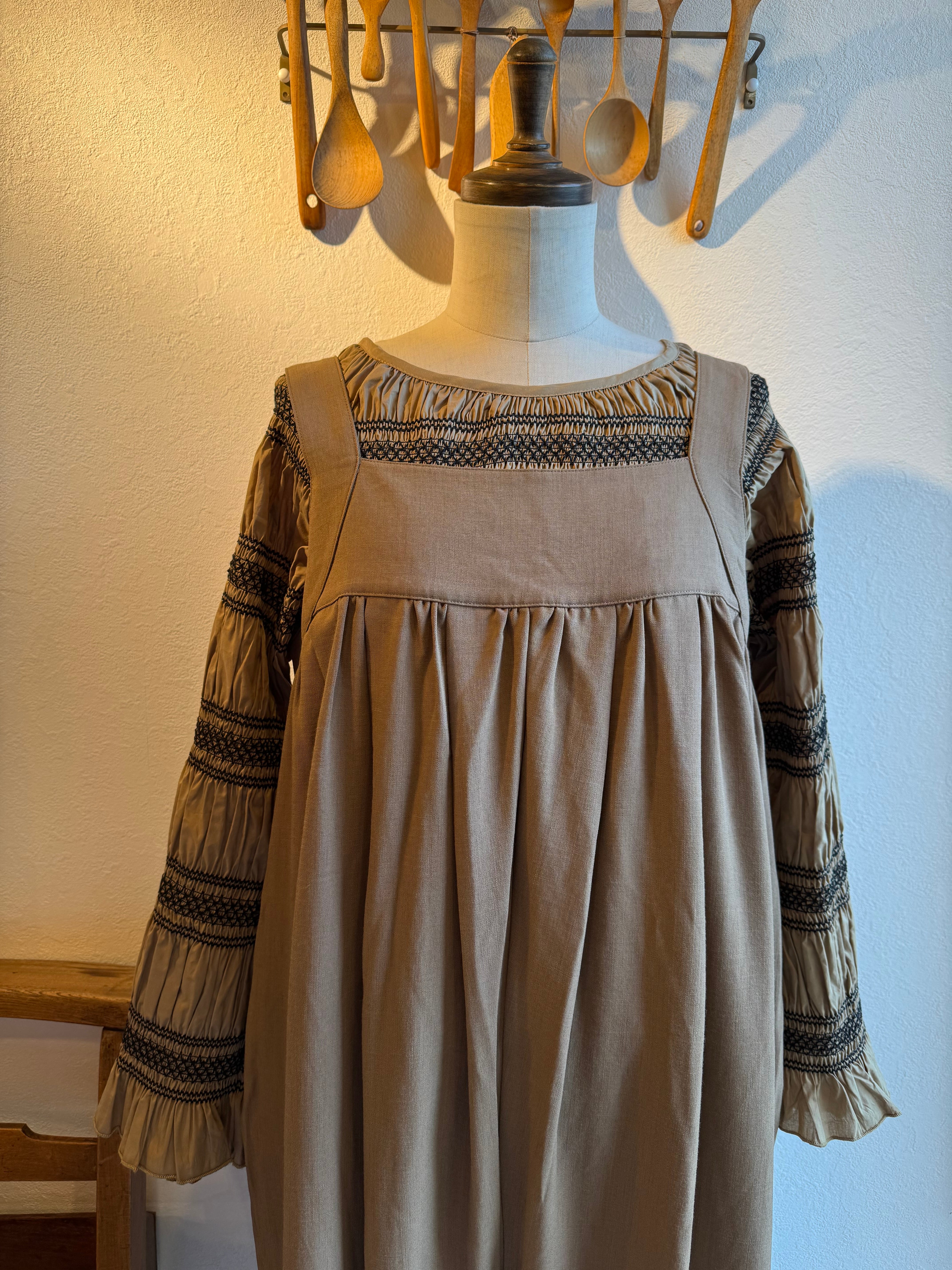 キャメルブラウンとチャコール、どちらもスモッキングの糸はブラックです