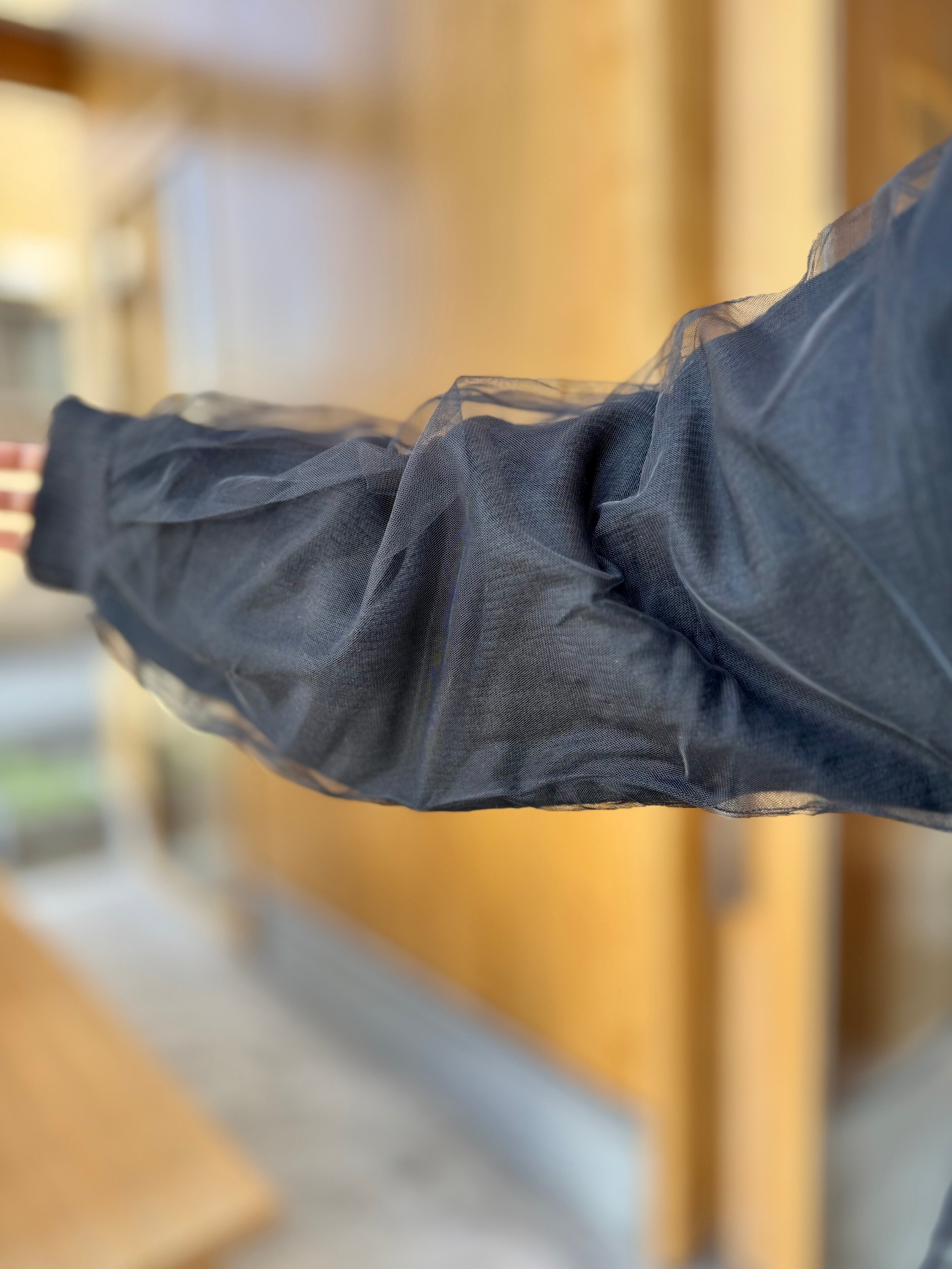 とても柔らかくてなめらかなニット地に表の身ごろだけふんわりとチュールを重ねています