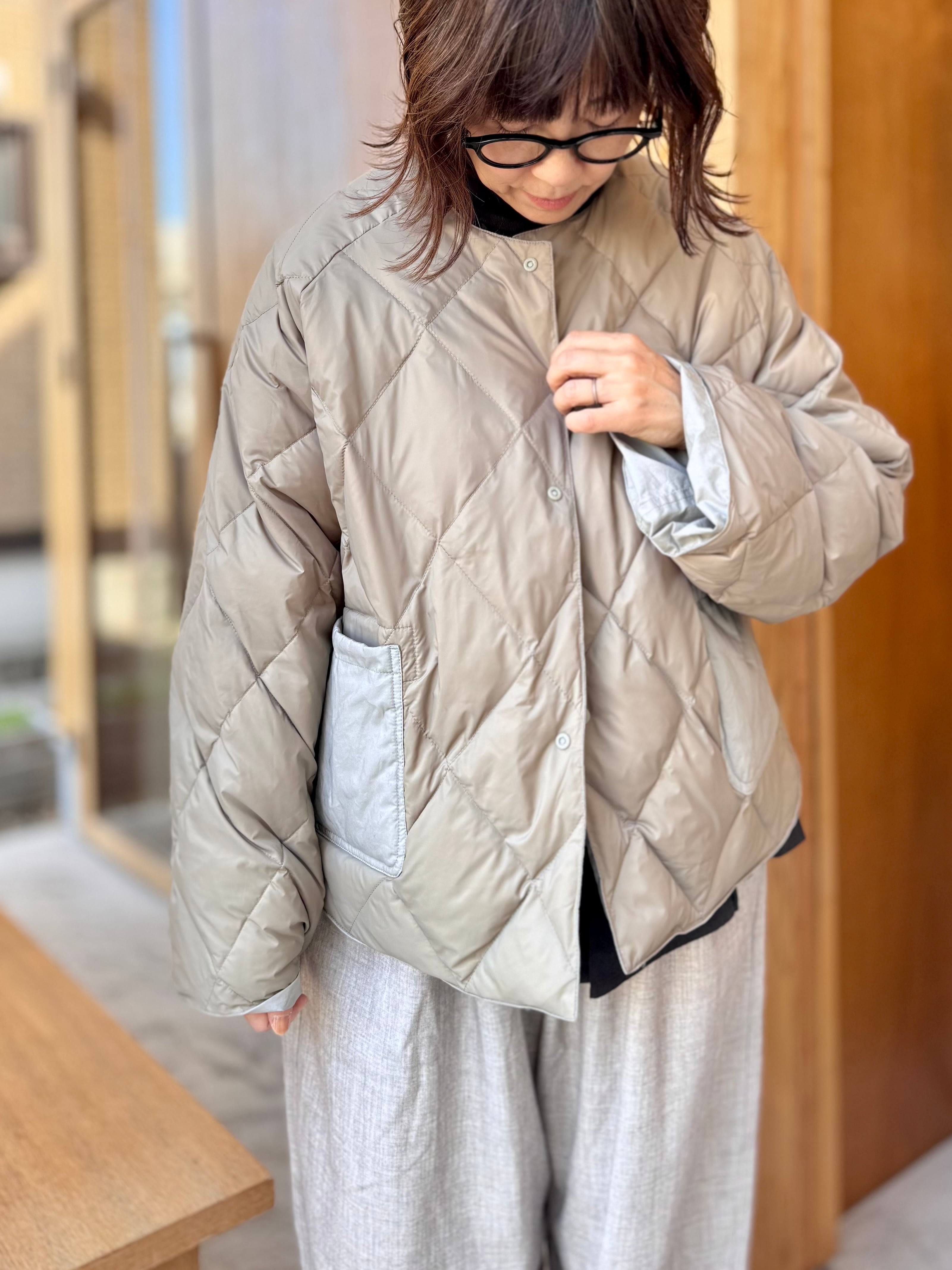 キルティング側はダイヤ型のステッチでポケットはコットン生地の切り替えになっています