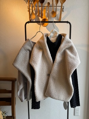 シープボアのストールは外して違うコートの上にプラスしたり、ニットやシャツ、ワンピースなどと合わせても素敵です!