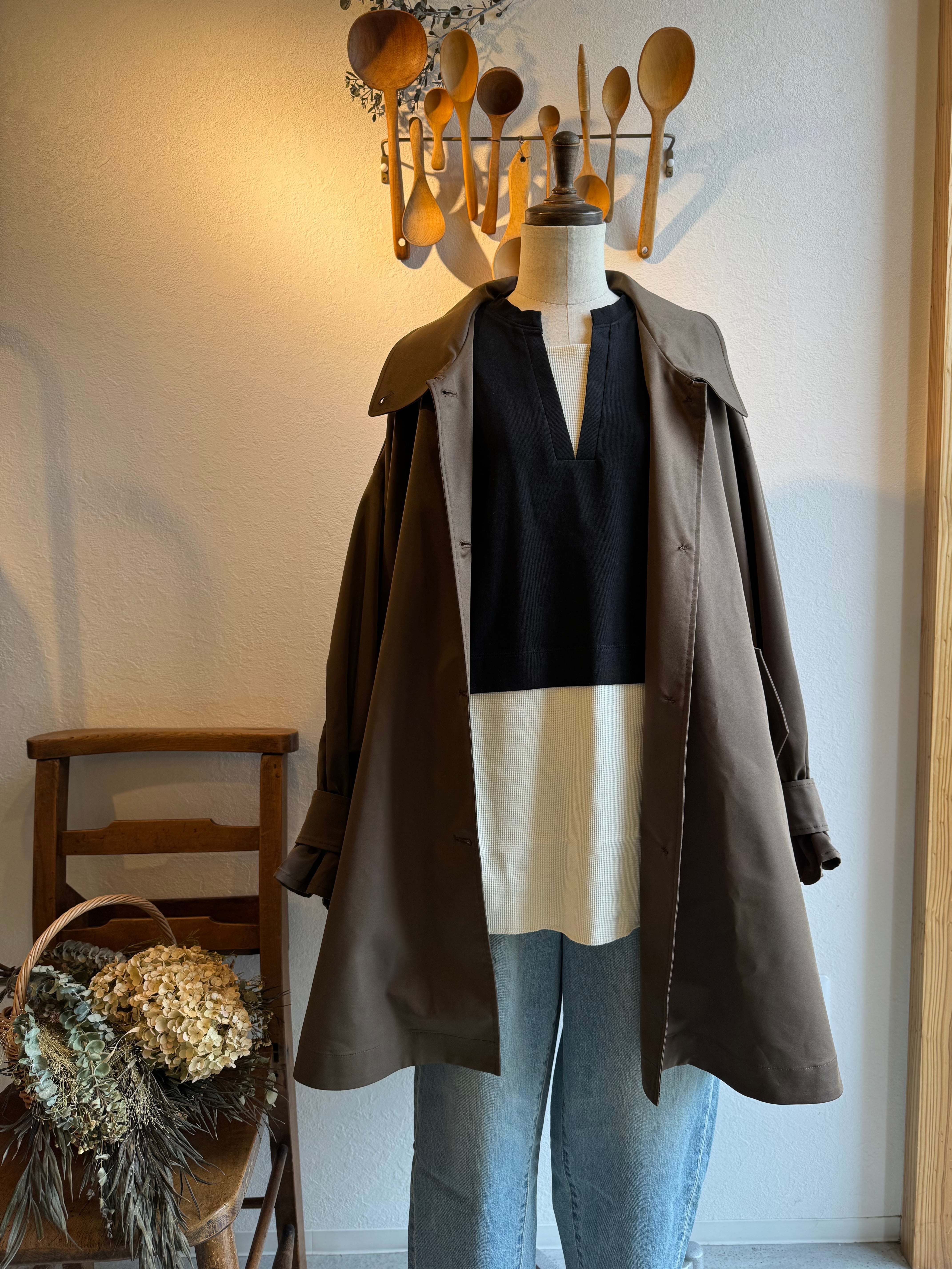 サラッと1枚着てアウターを羽織ればリラックス感のあるお出かけスタイルに◎