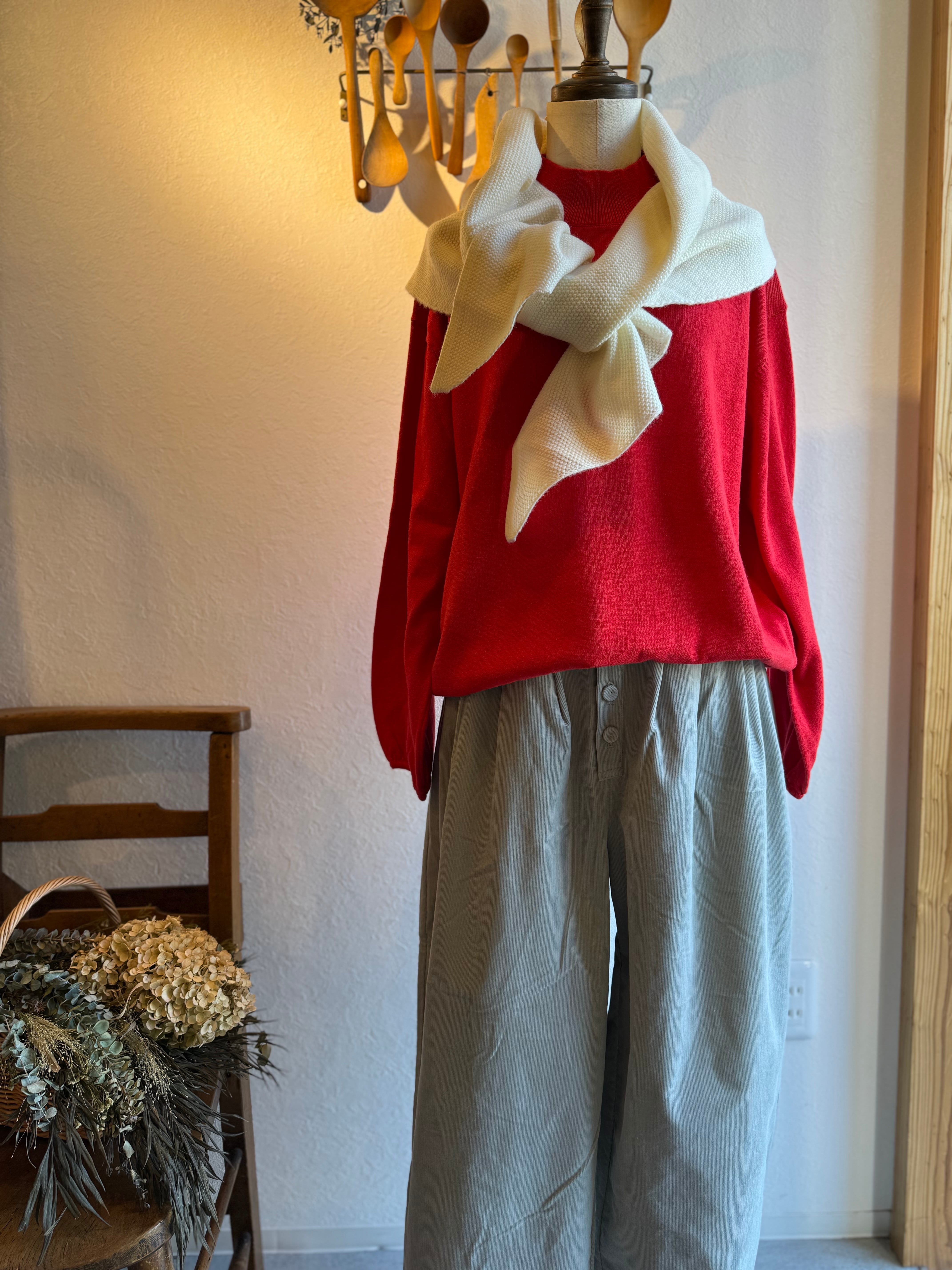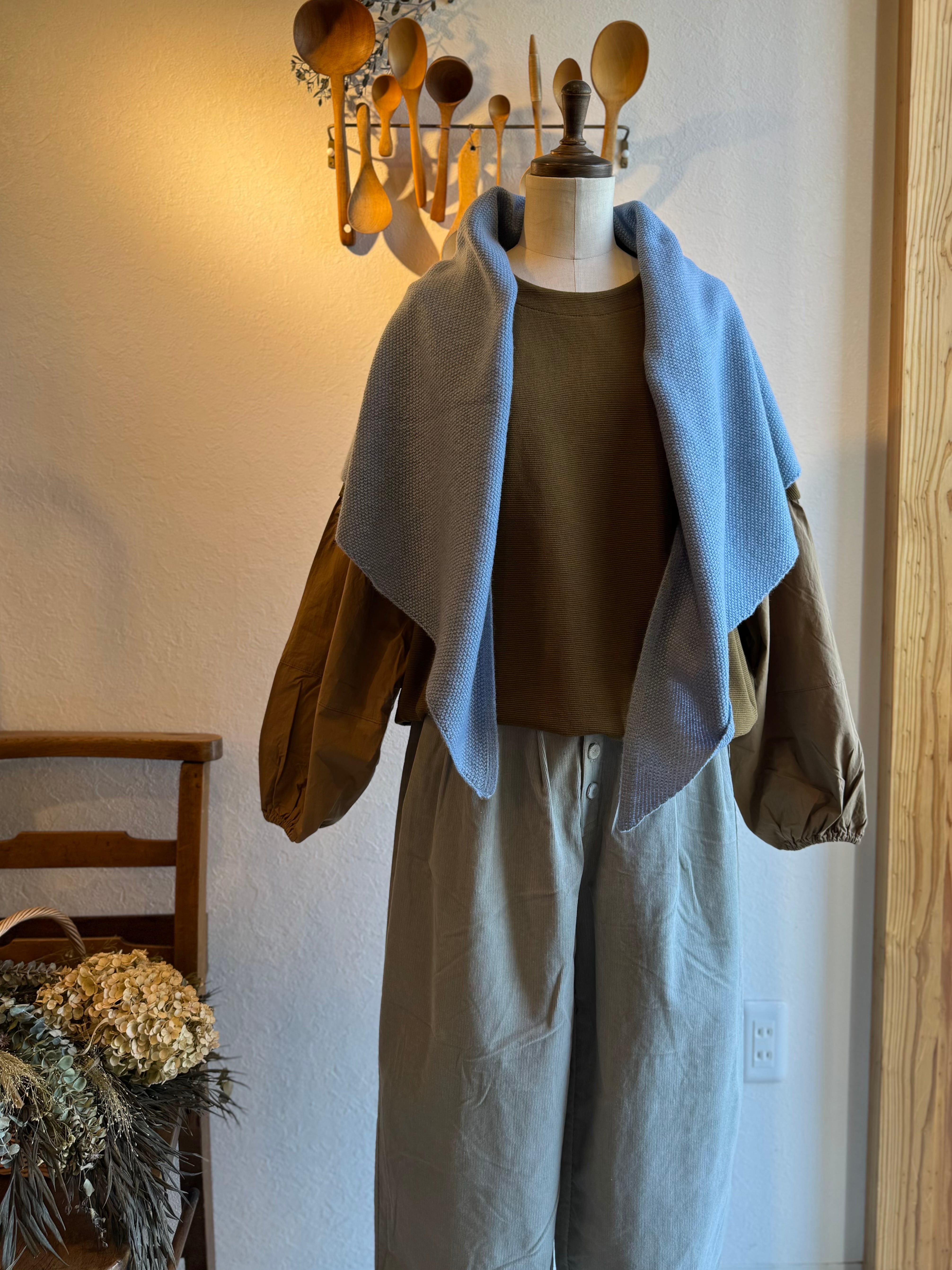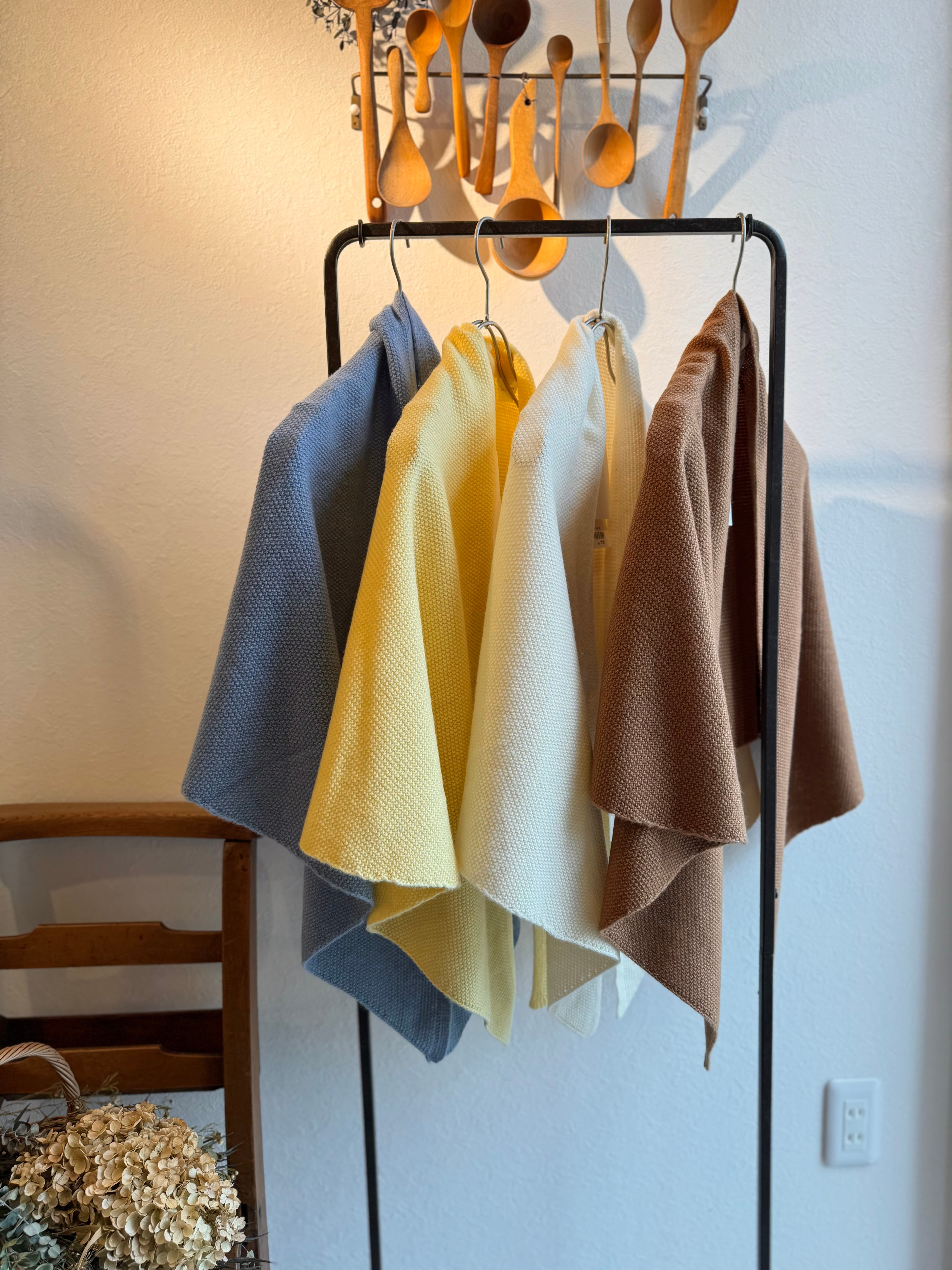 秋冬の着こなしに馴染むキャメルブラウン、明るいアイボリー、ポイントカラーになるクリームイエロー、爽やかなスモークブルーの4カラーです