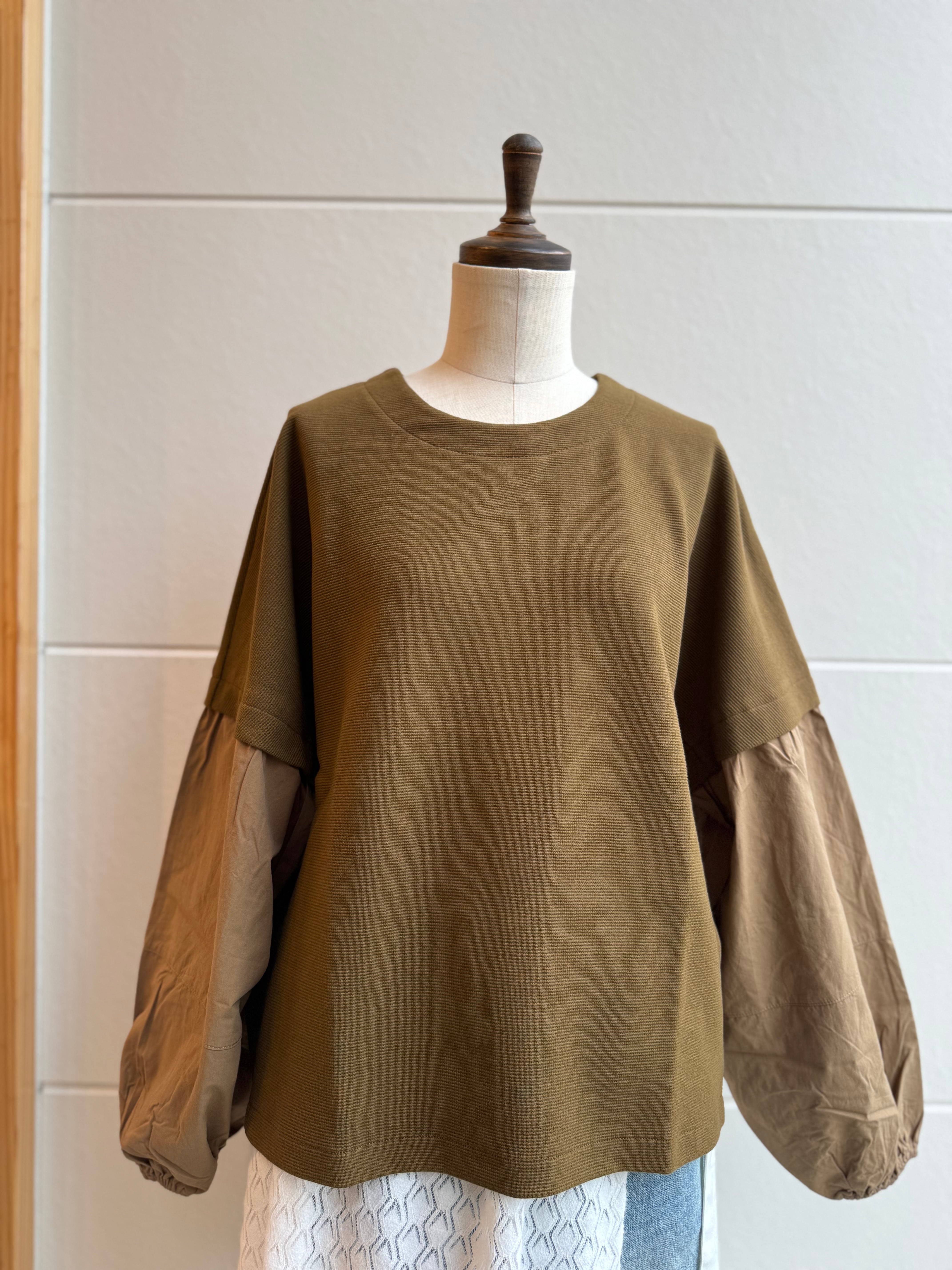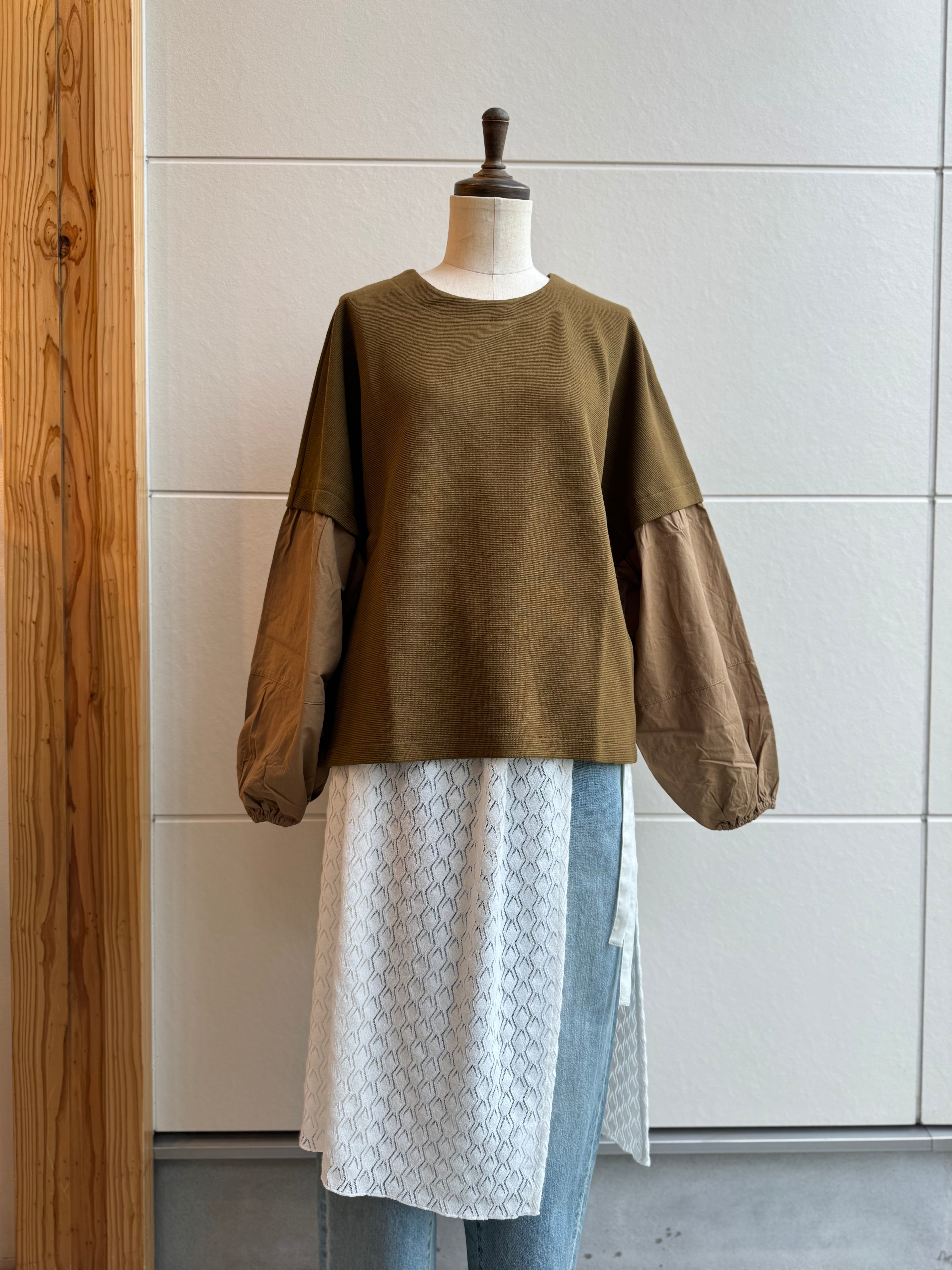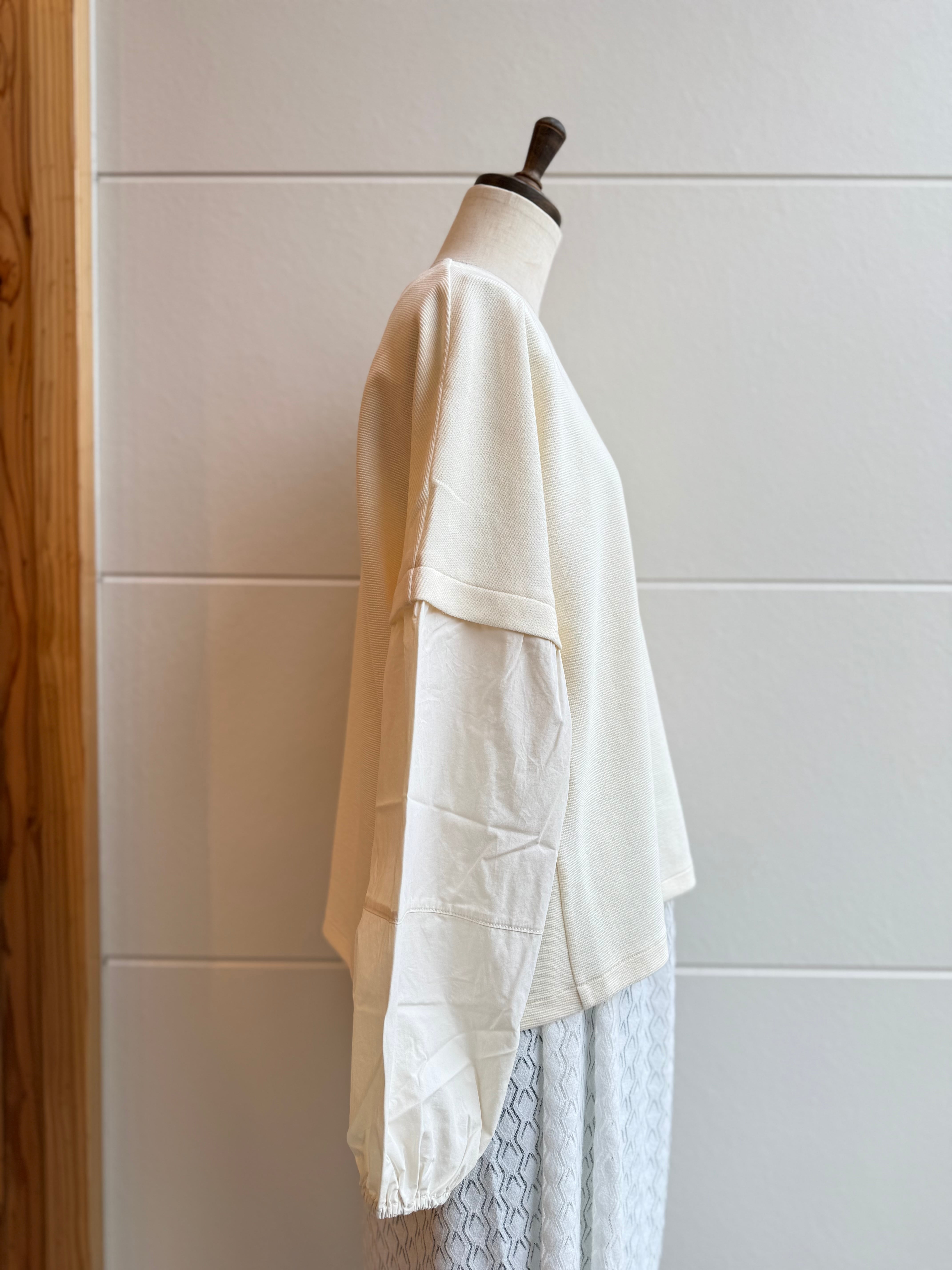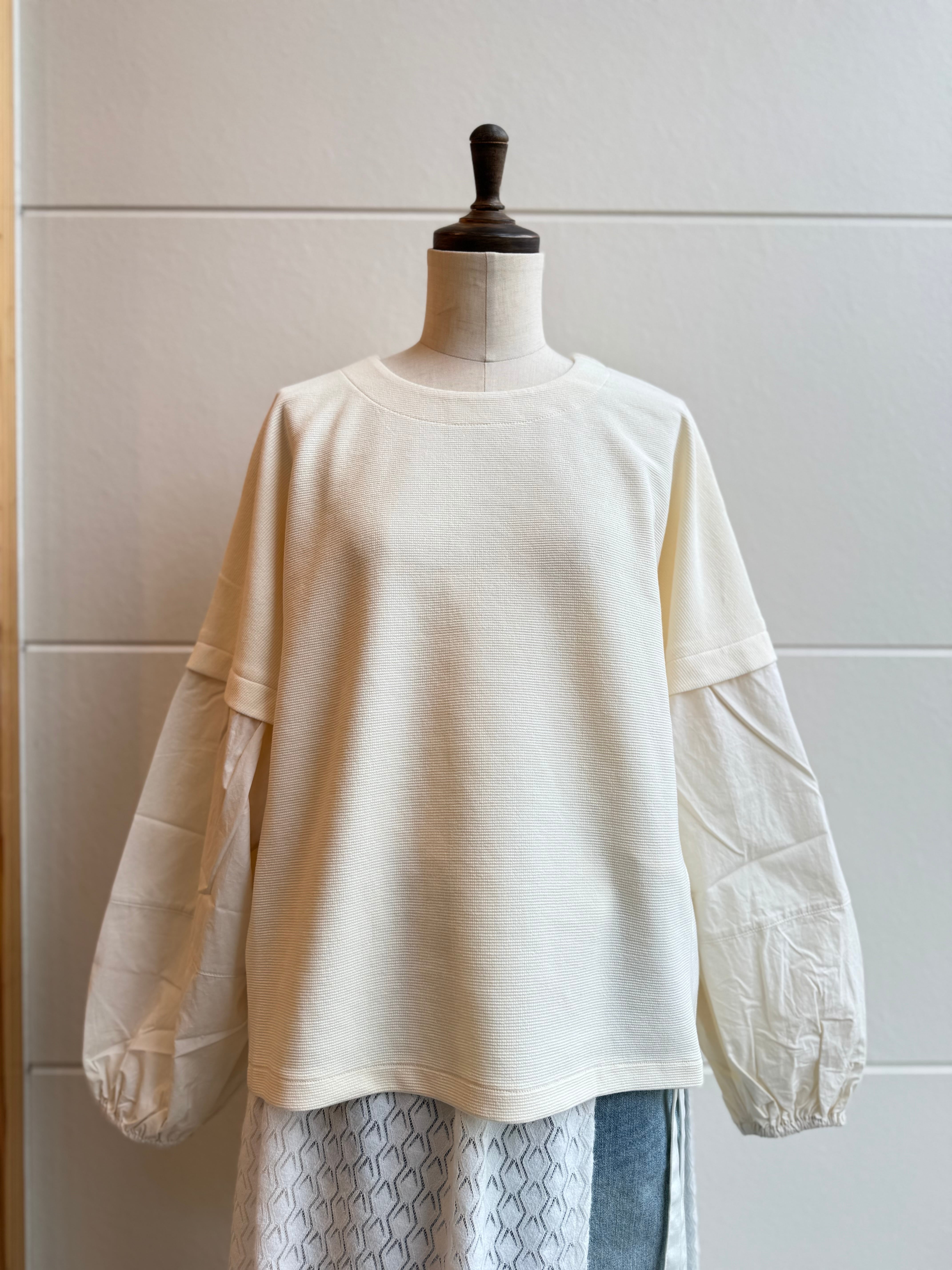 ふんわりコットンスリーブに表情のあるカットソーを組み合わせたコンビネーションデザインのプルオーバーです