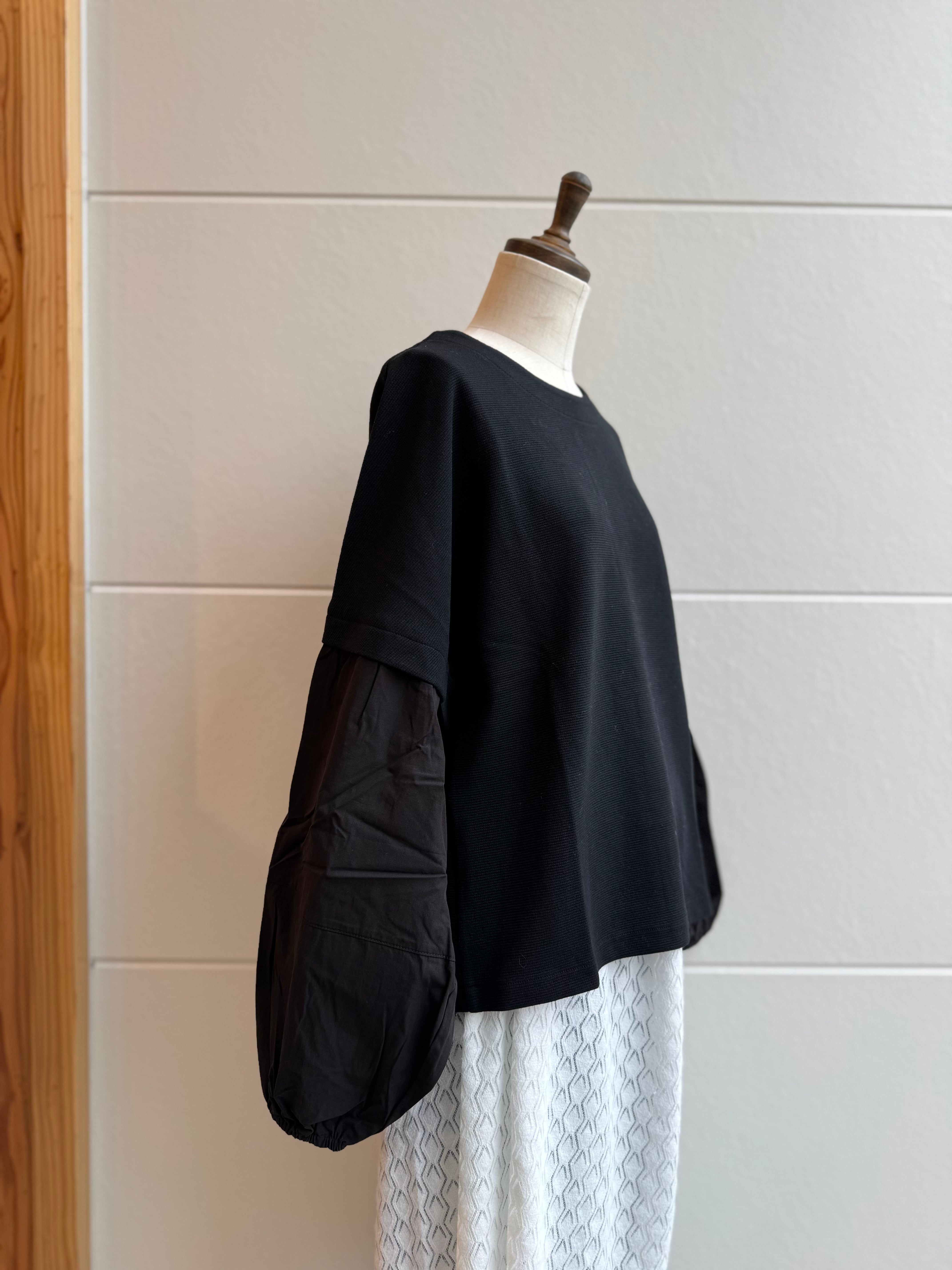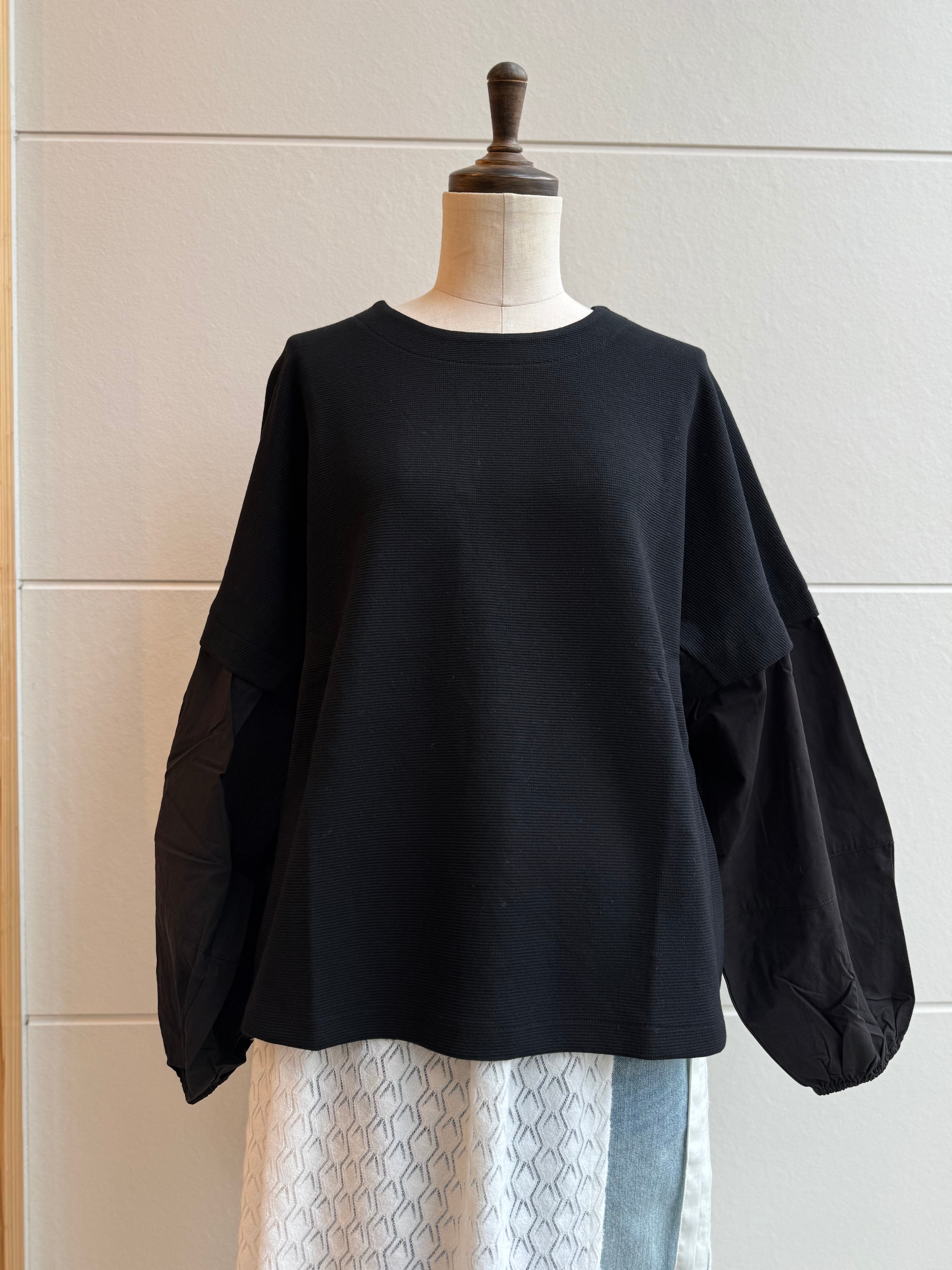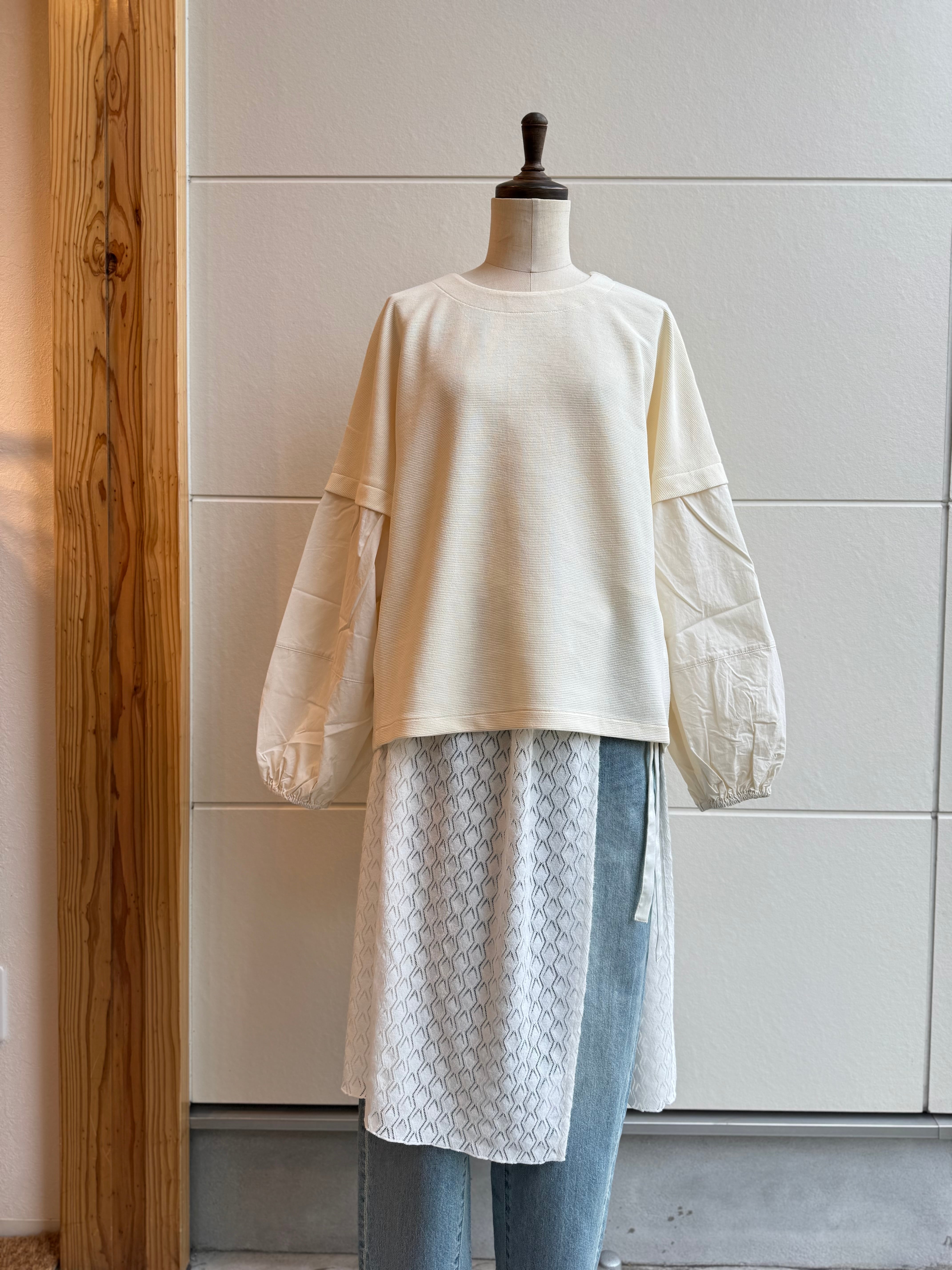 ふんわりコットンスリーブに表情のあるカットソーを組み合わせたコンビネーションデザインのプルオーバーです