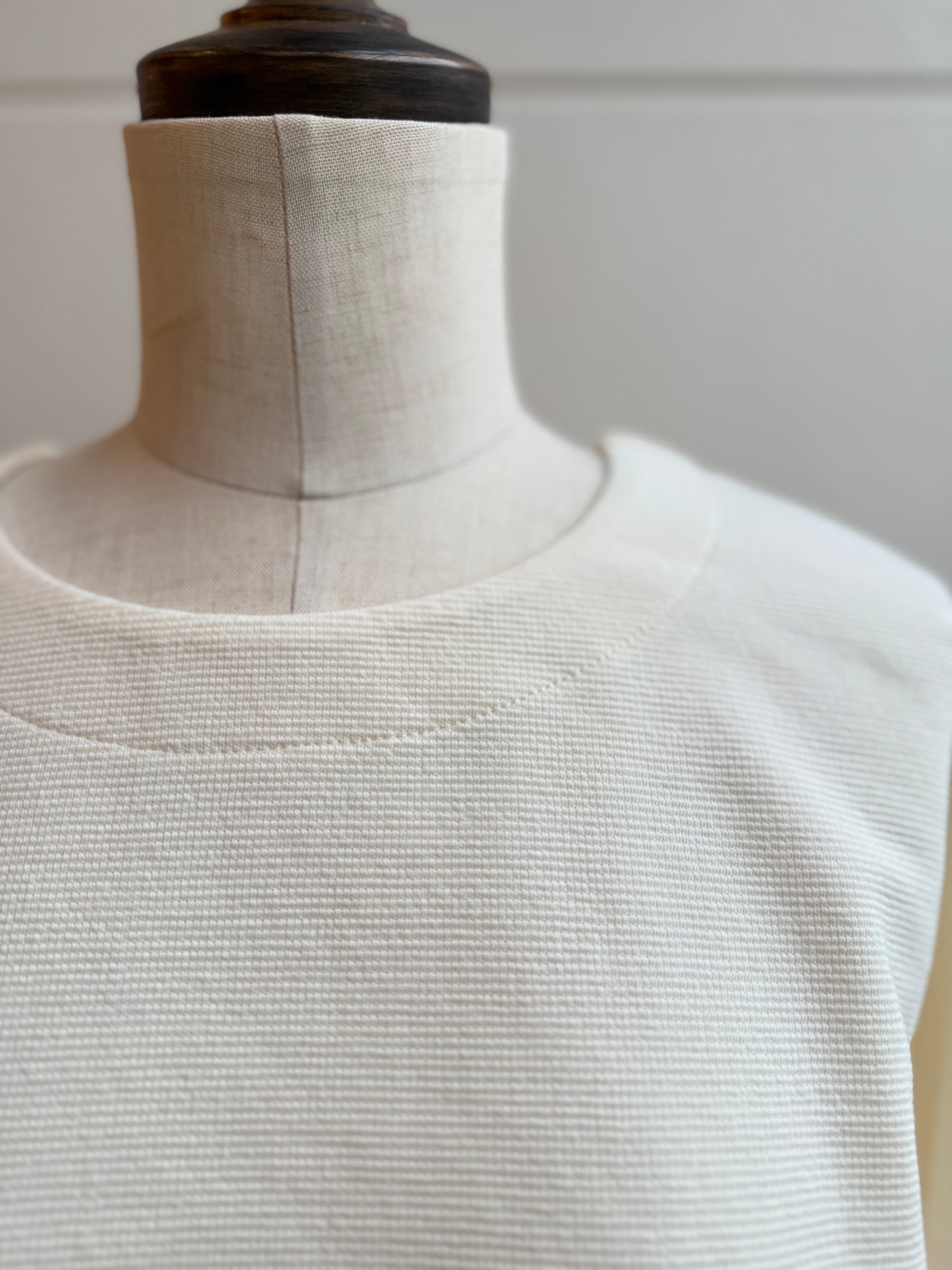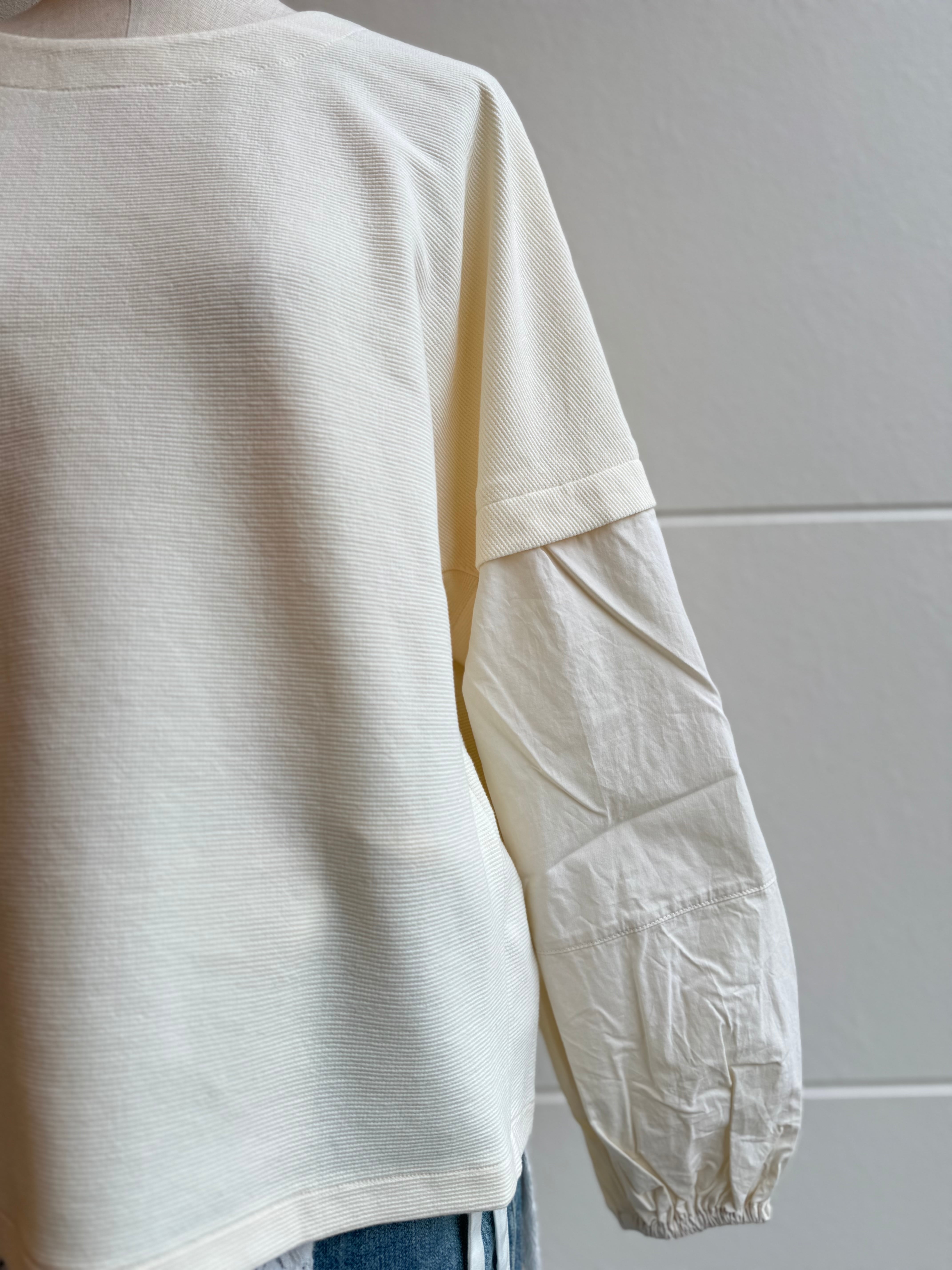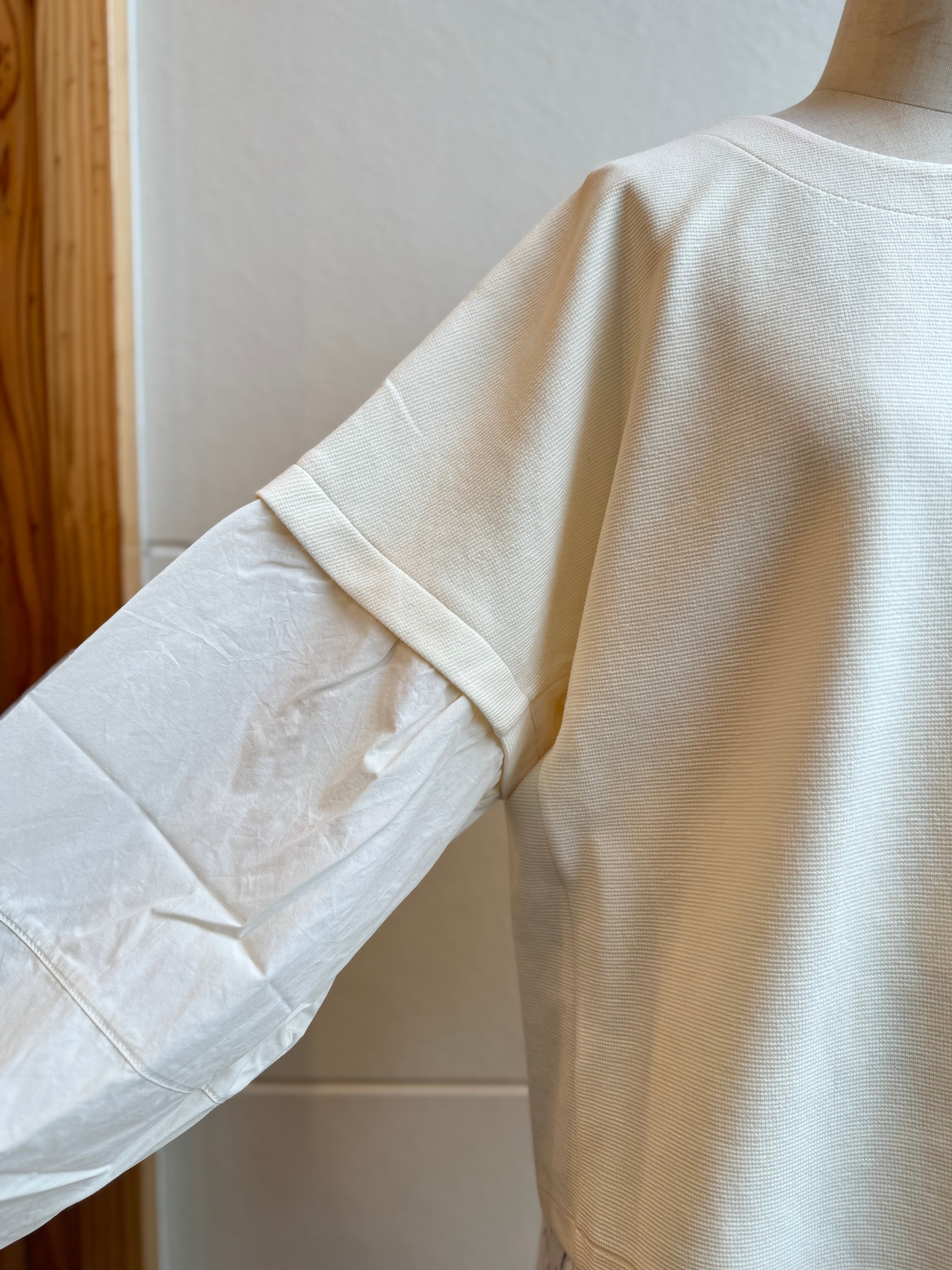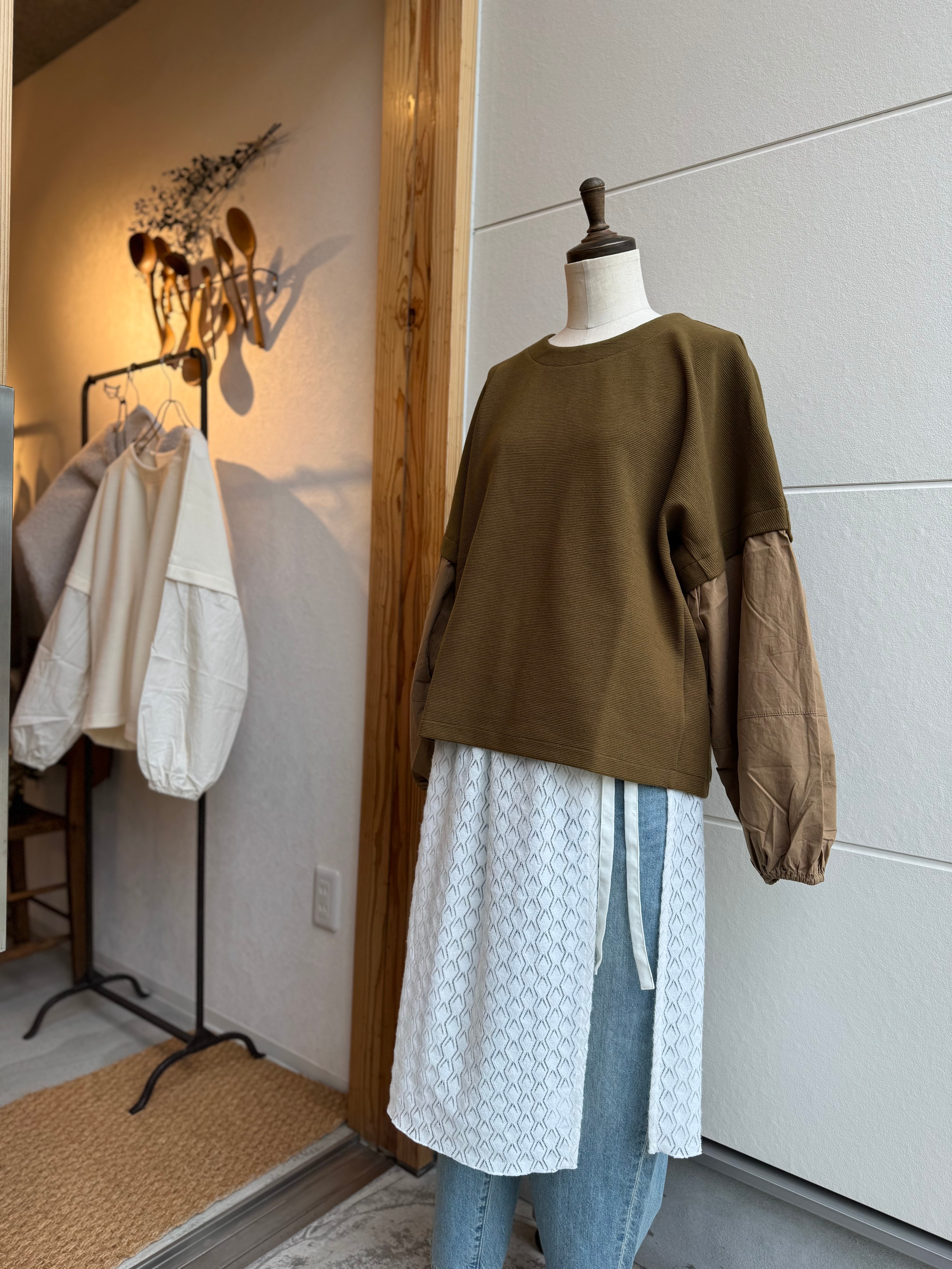 ふんわりコットンスリーブに表情のあるカットソーを組み合わせたコンビネーションデザインのプルオーバーです