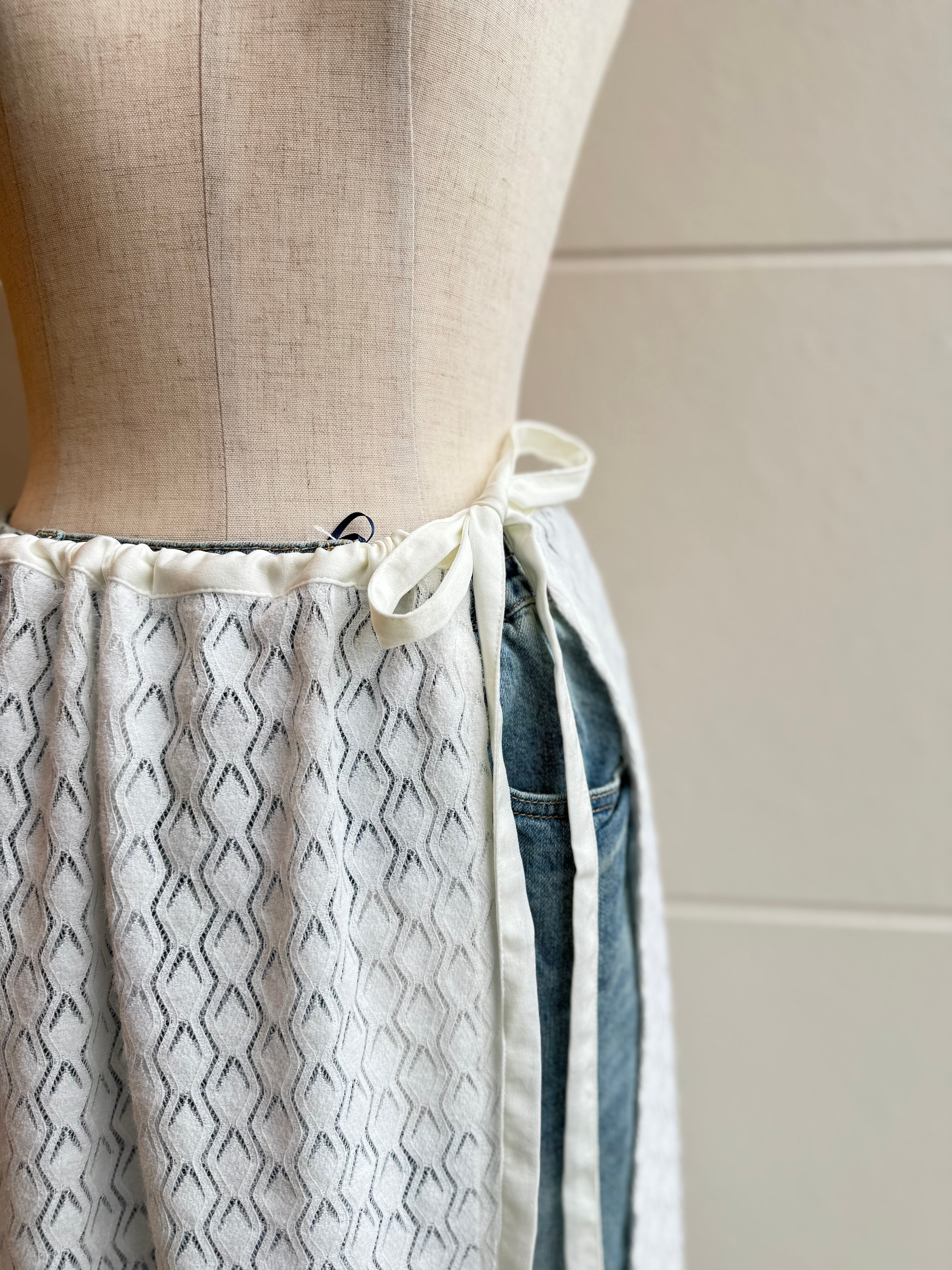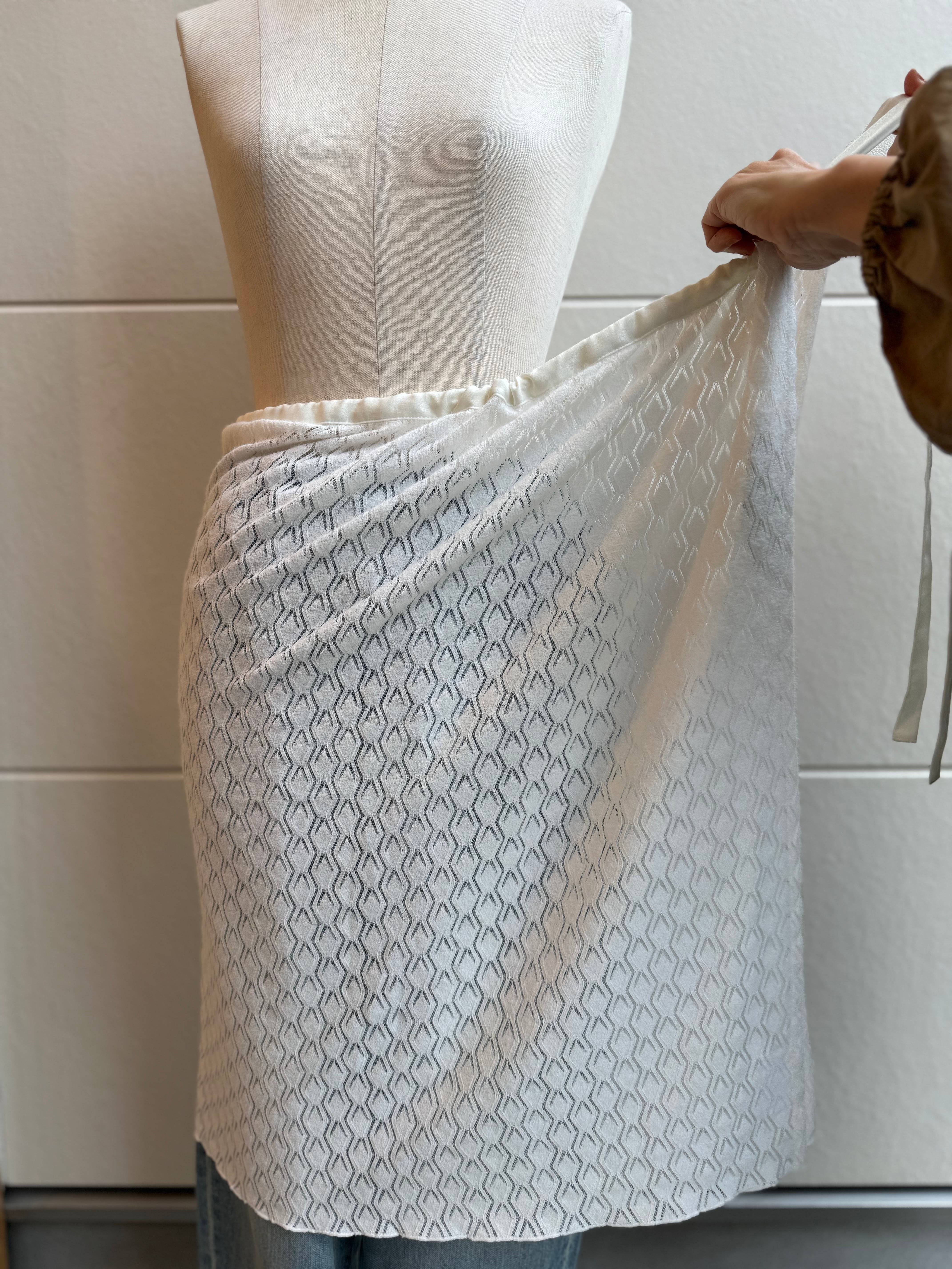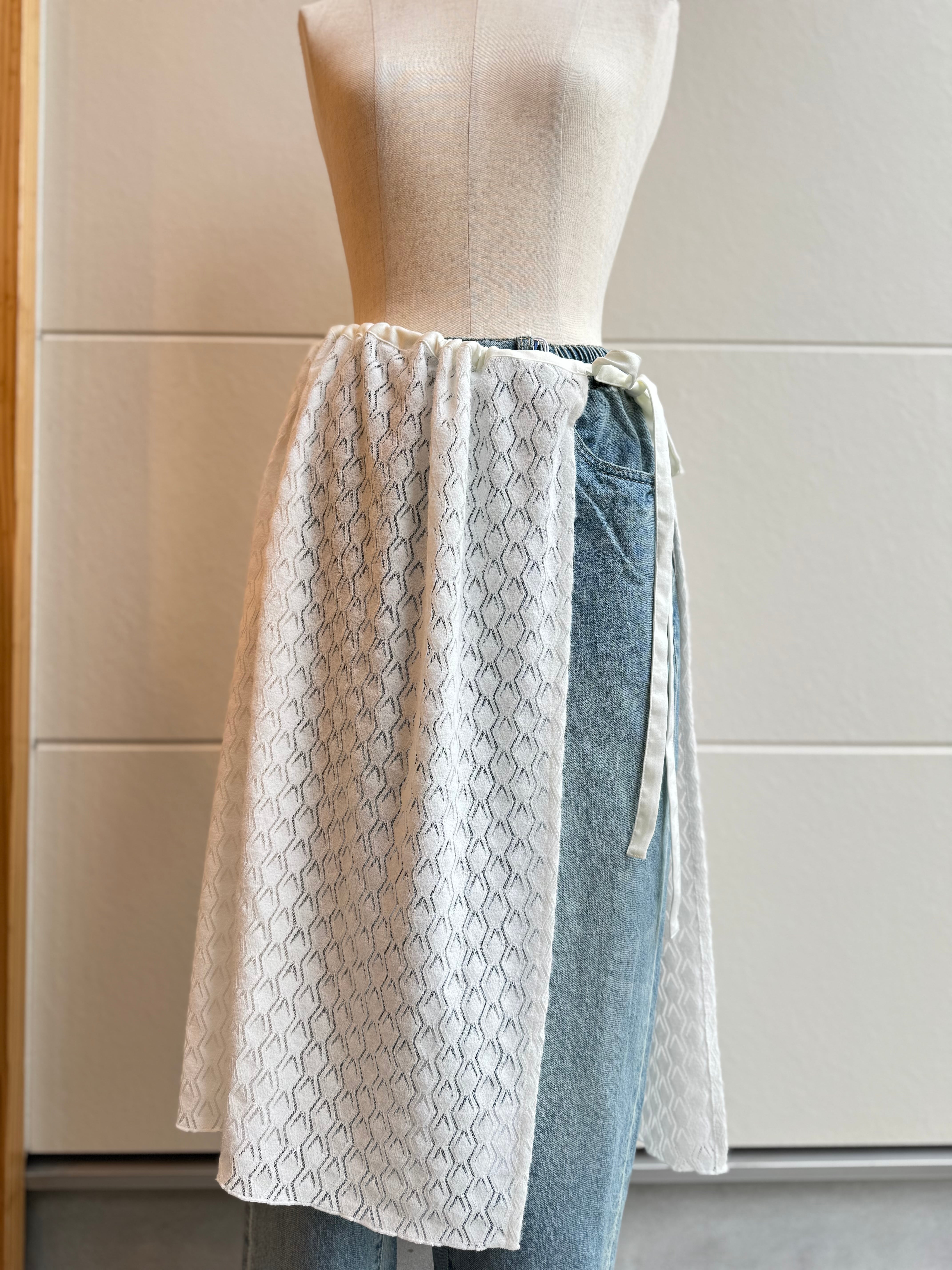 手軽にレイヤードスタイルが楽しめるラップ(巻き)タイプのレーススカートです