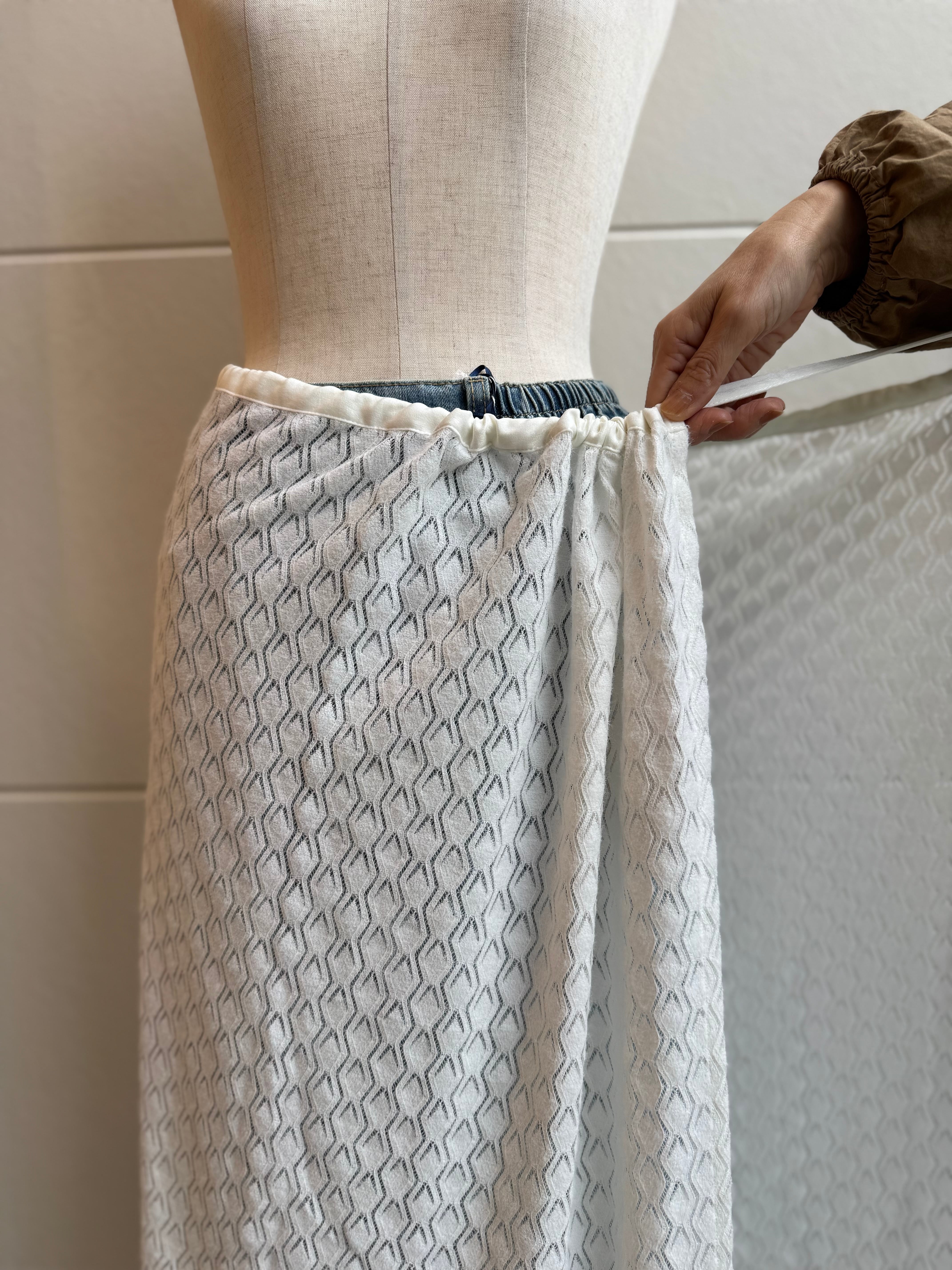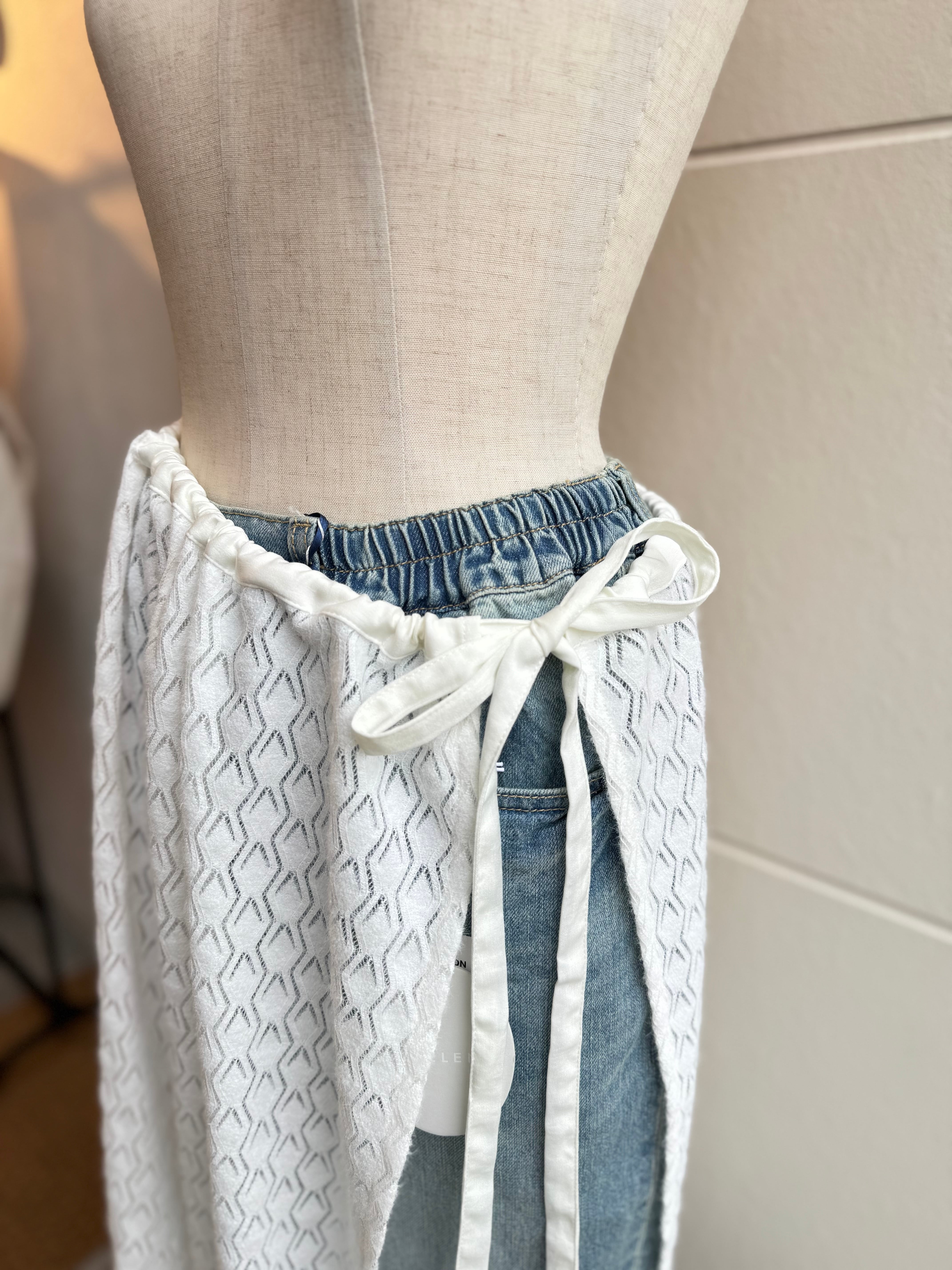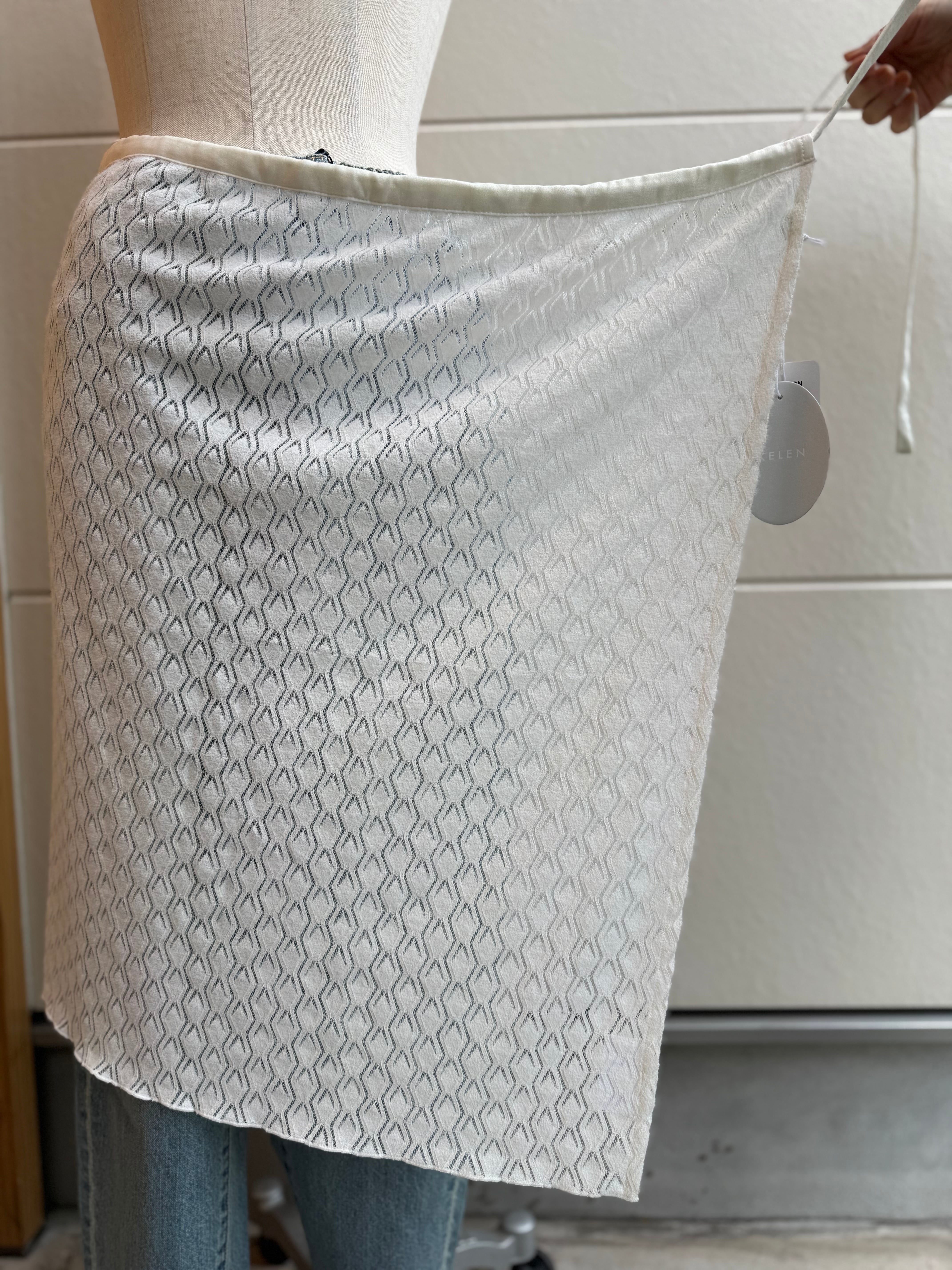 手軽にレイヤードスタイルが楽しめるラップ(巻き)タイプのレーススカートです