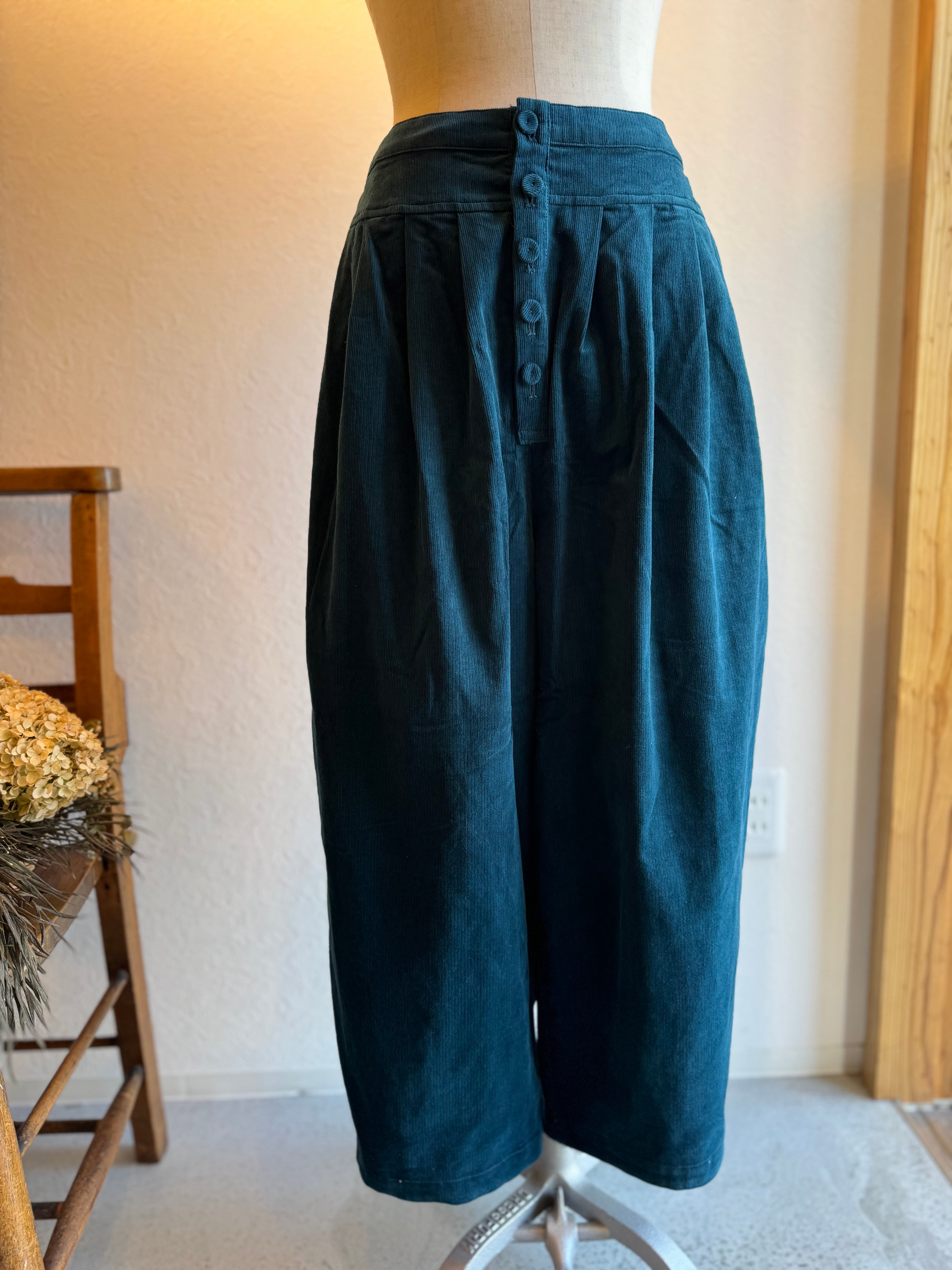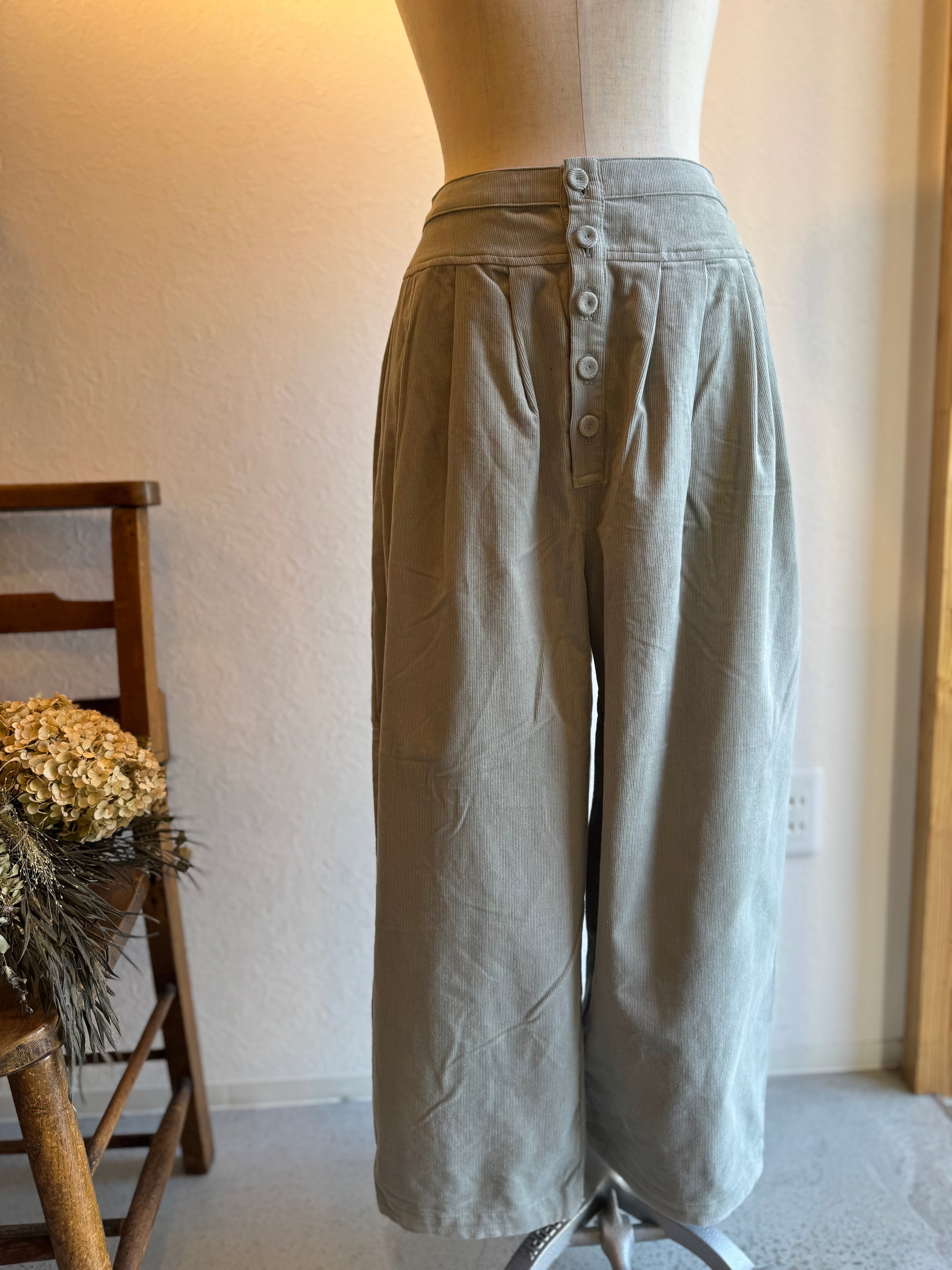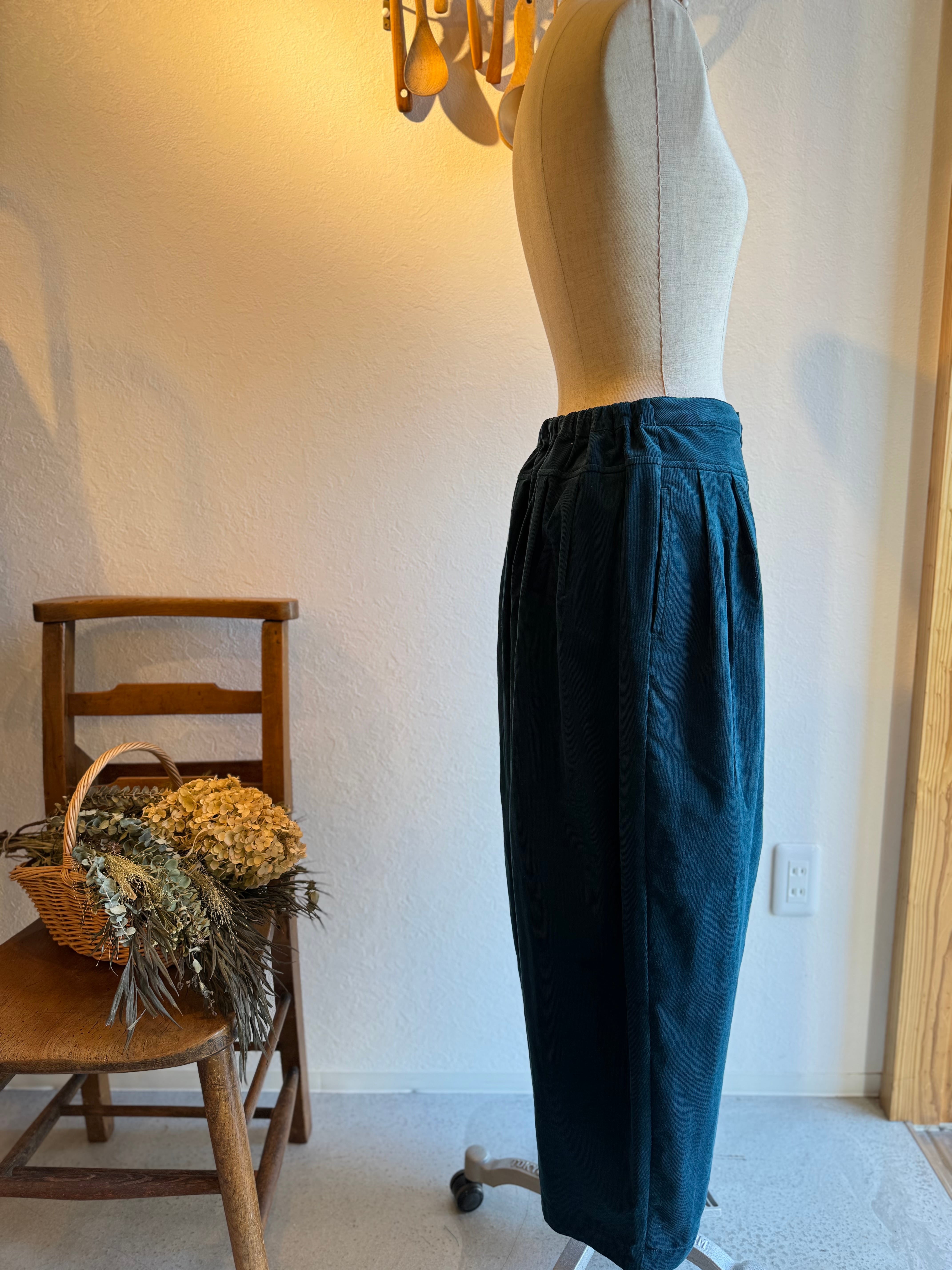 細畝のベビーコーデュロイのタックワイドパンツです