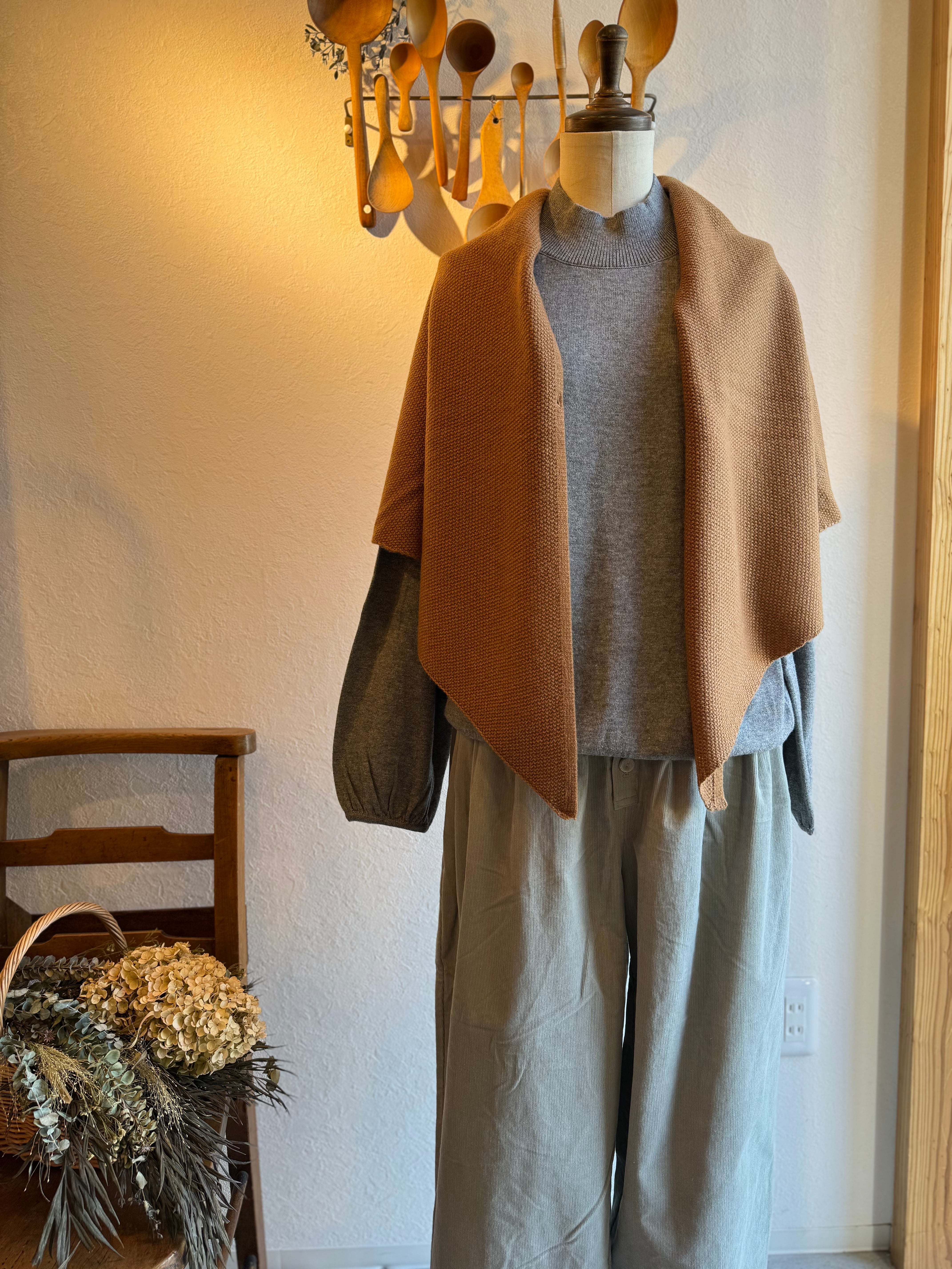 ややウエスト高めに履く設定ですので、タックのふんわり部分から裾に向けてほどよいボリューム感で着られます