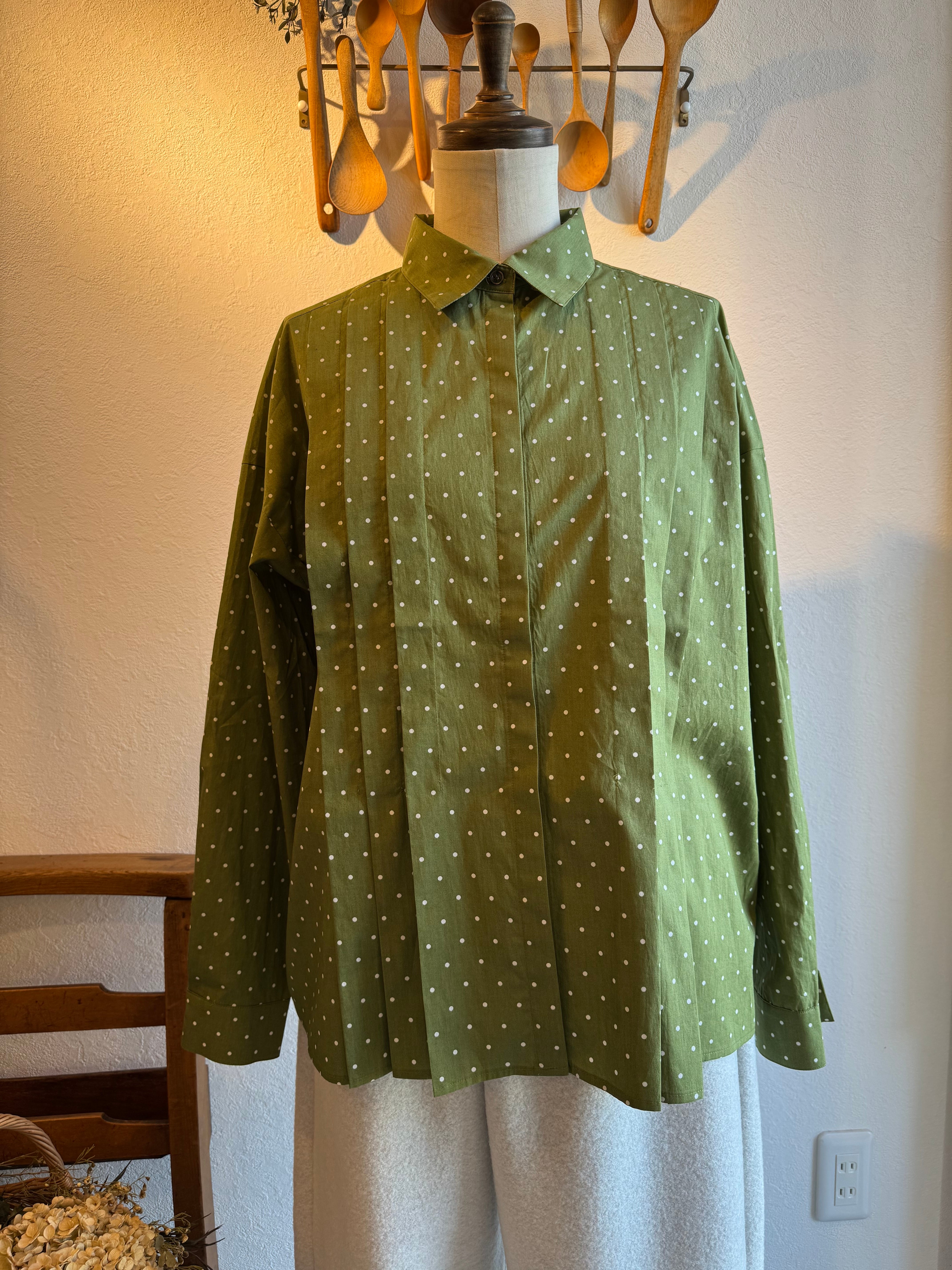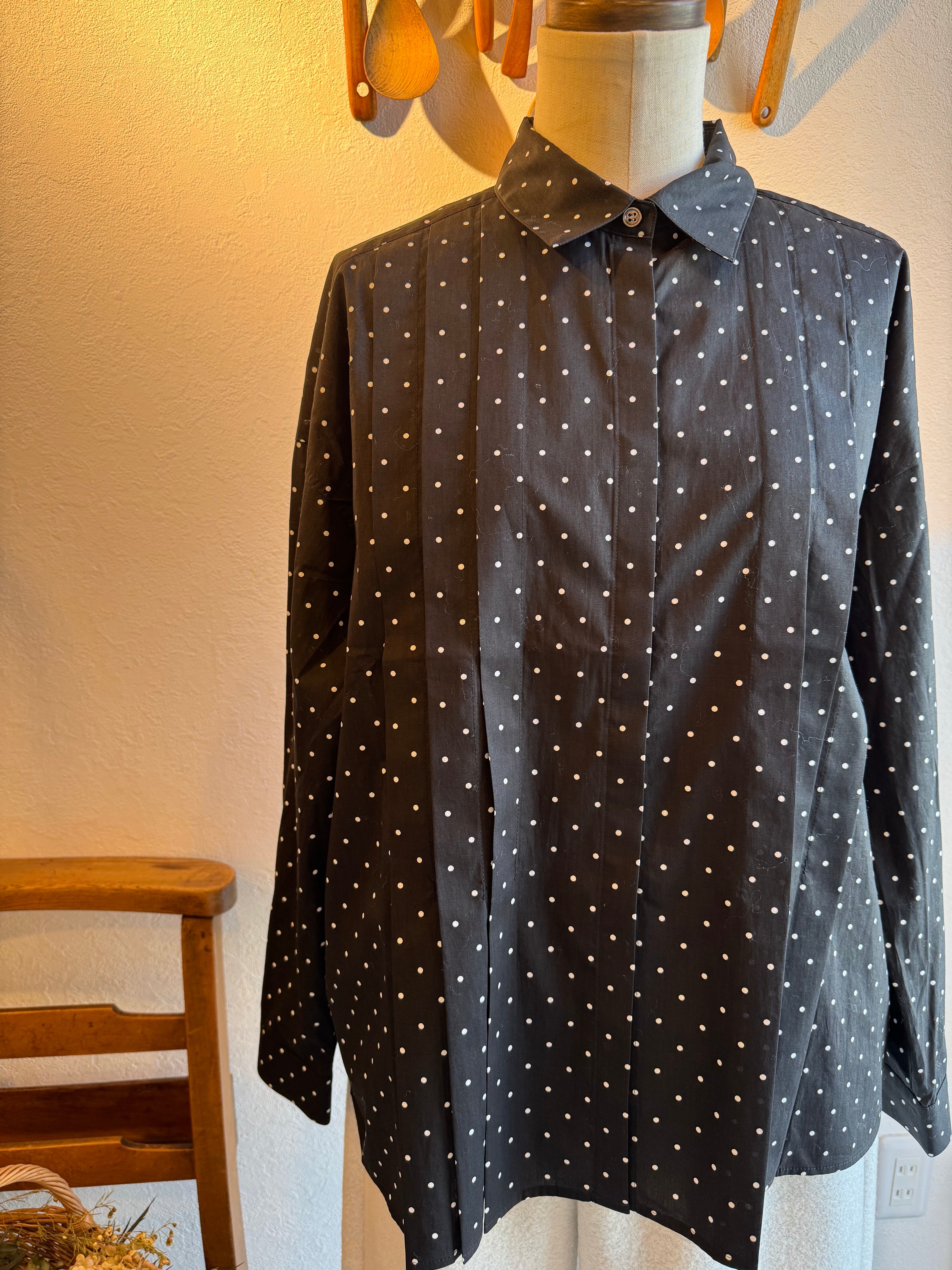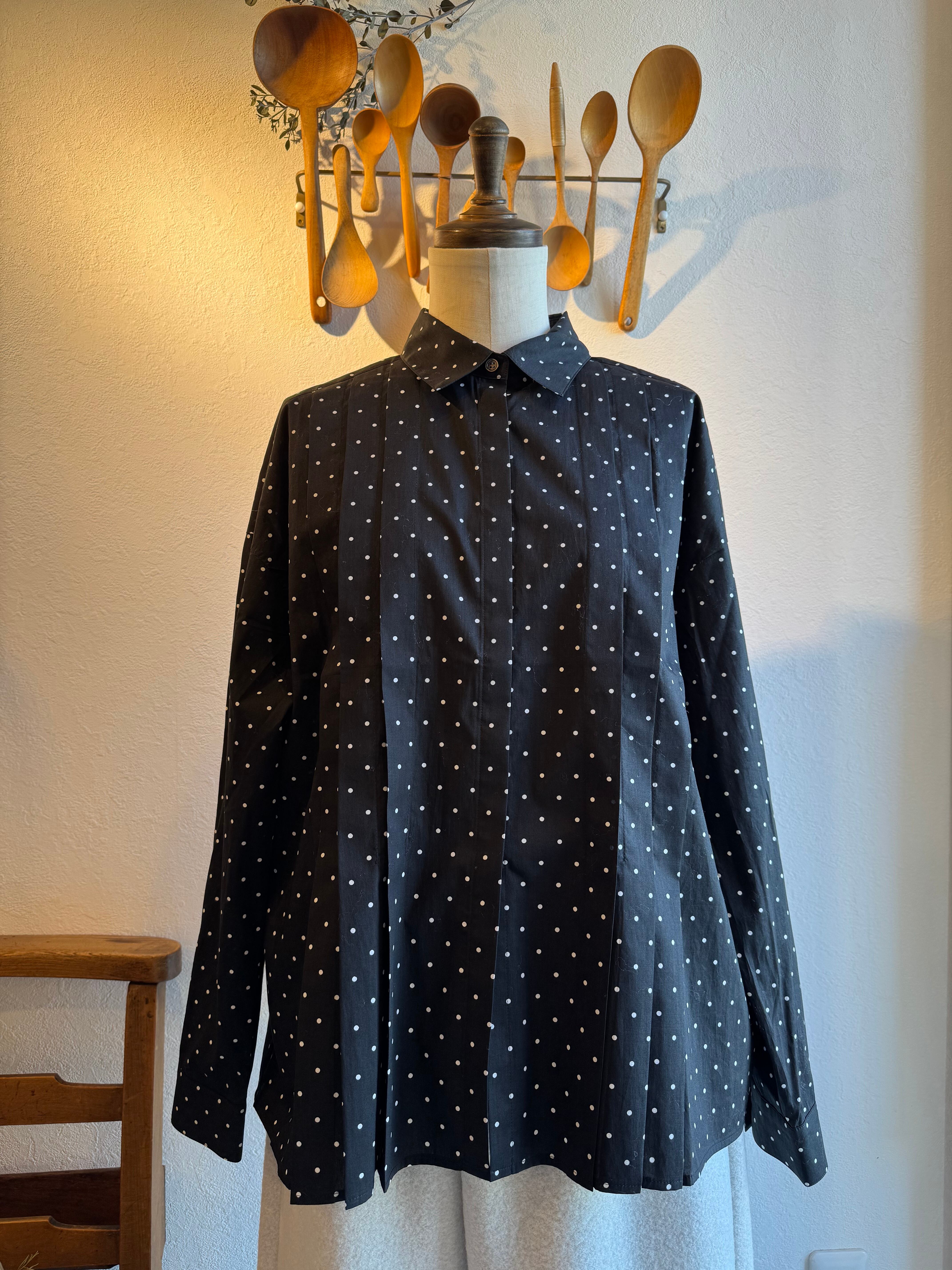 きゅっととがった襟は少しクラシカルな印象にも見えてドットでも大人っぽく◎
