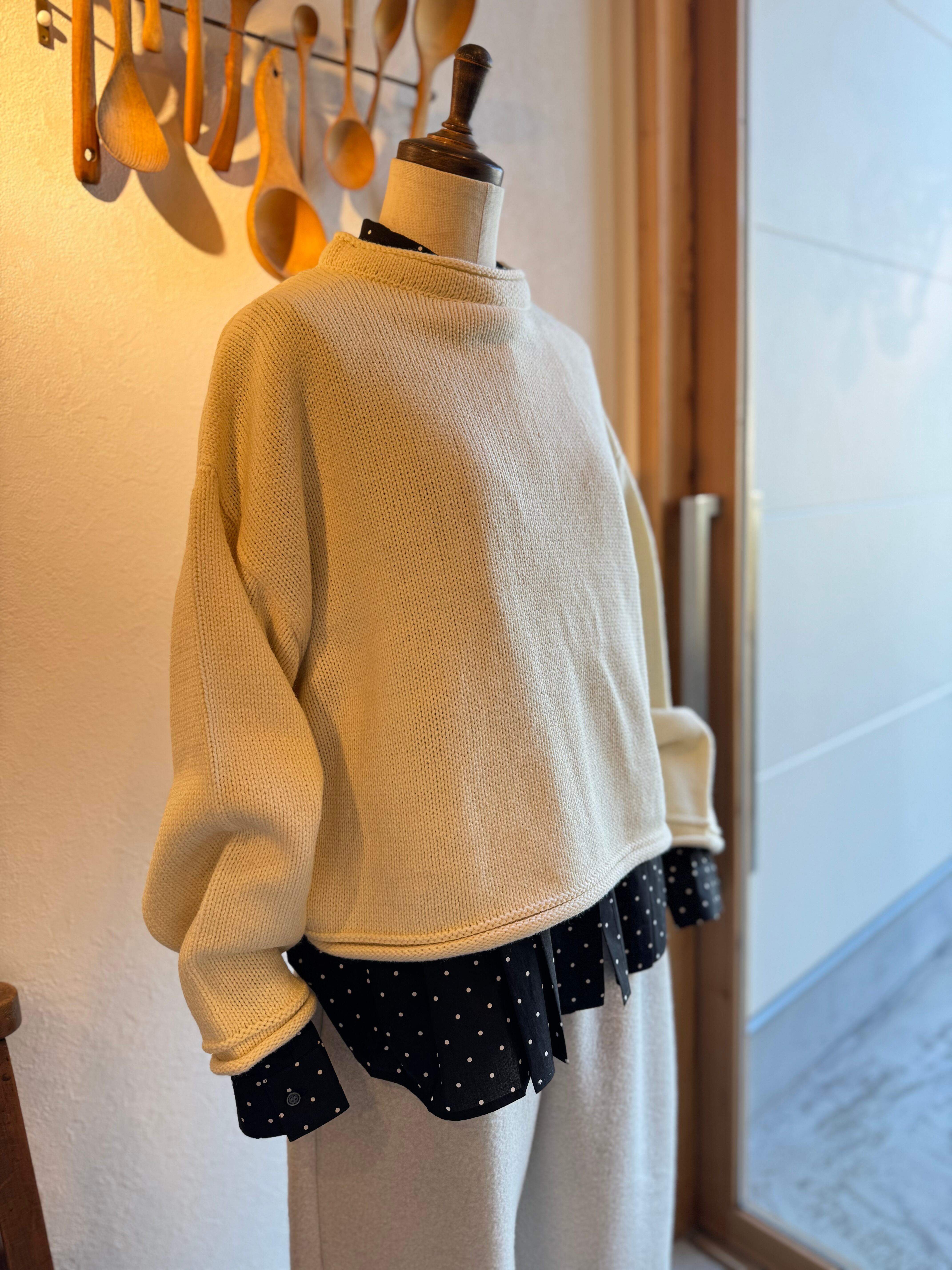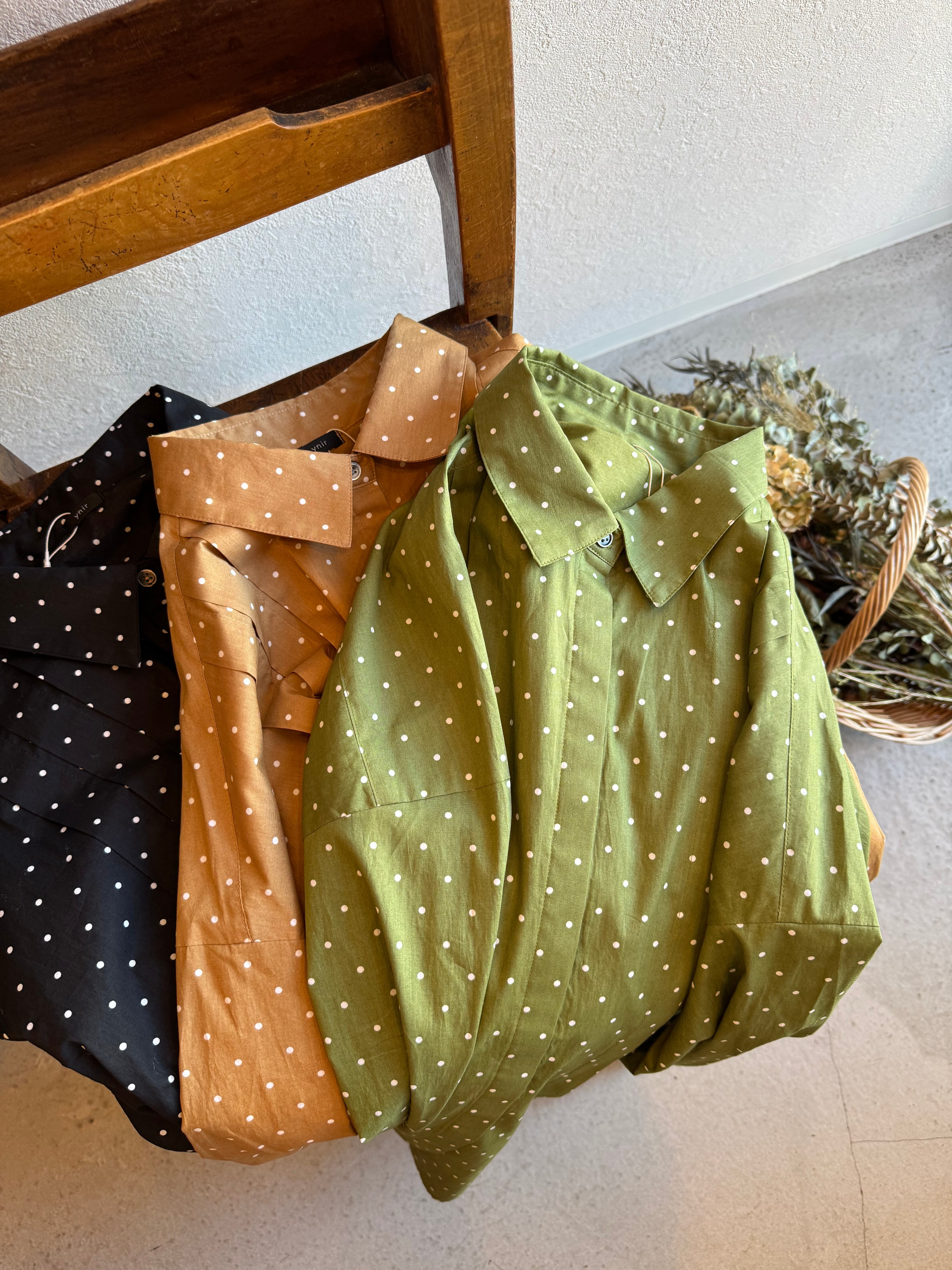 ベースに着るとニットやジャケット、ワンピースなどなどカラーやドット柄がポイントになってくれます!