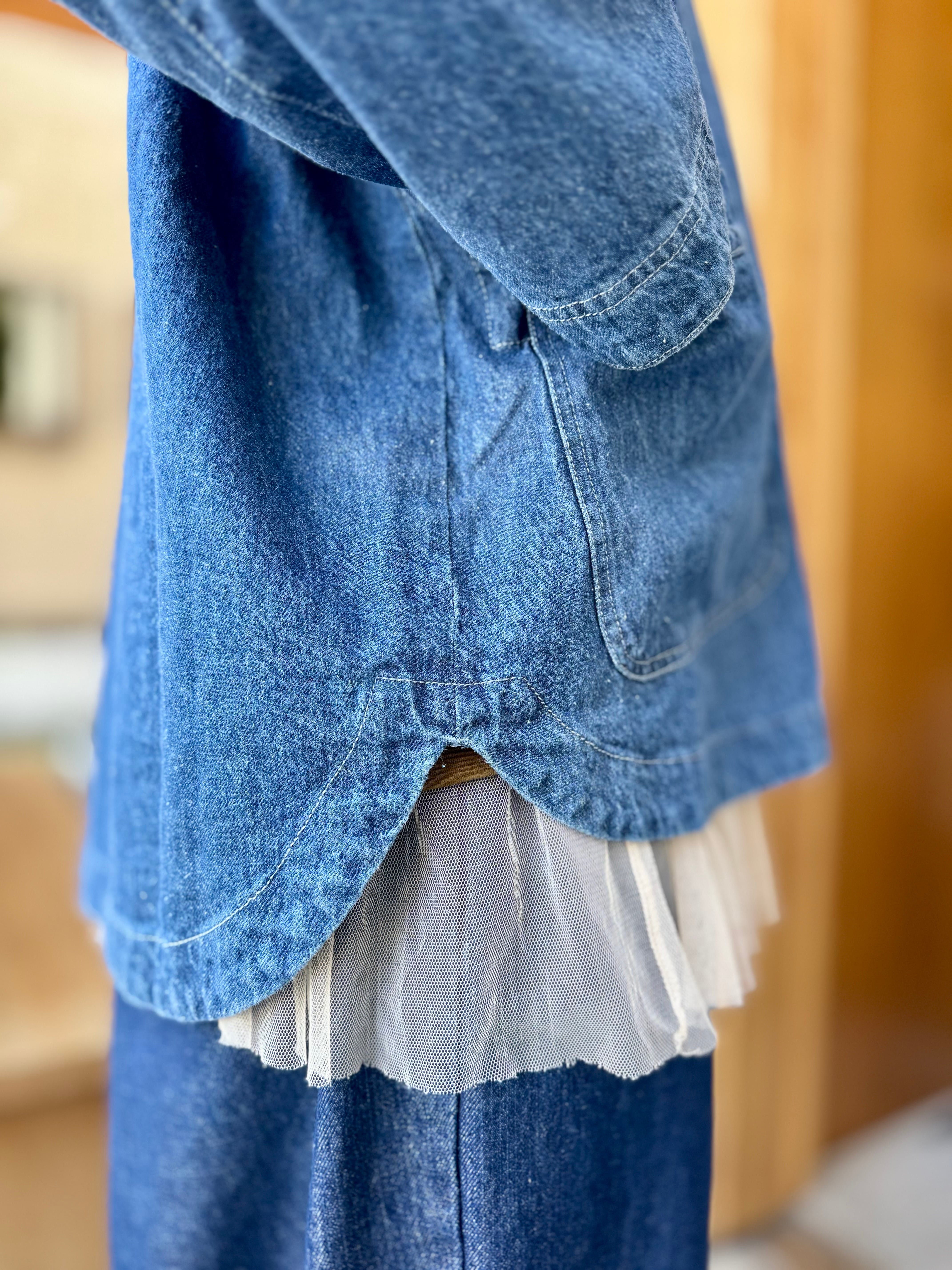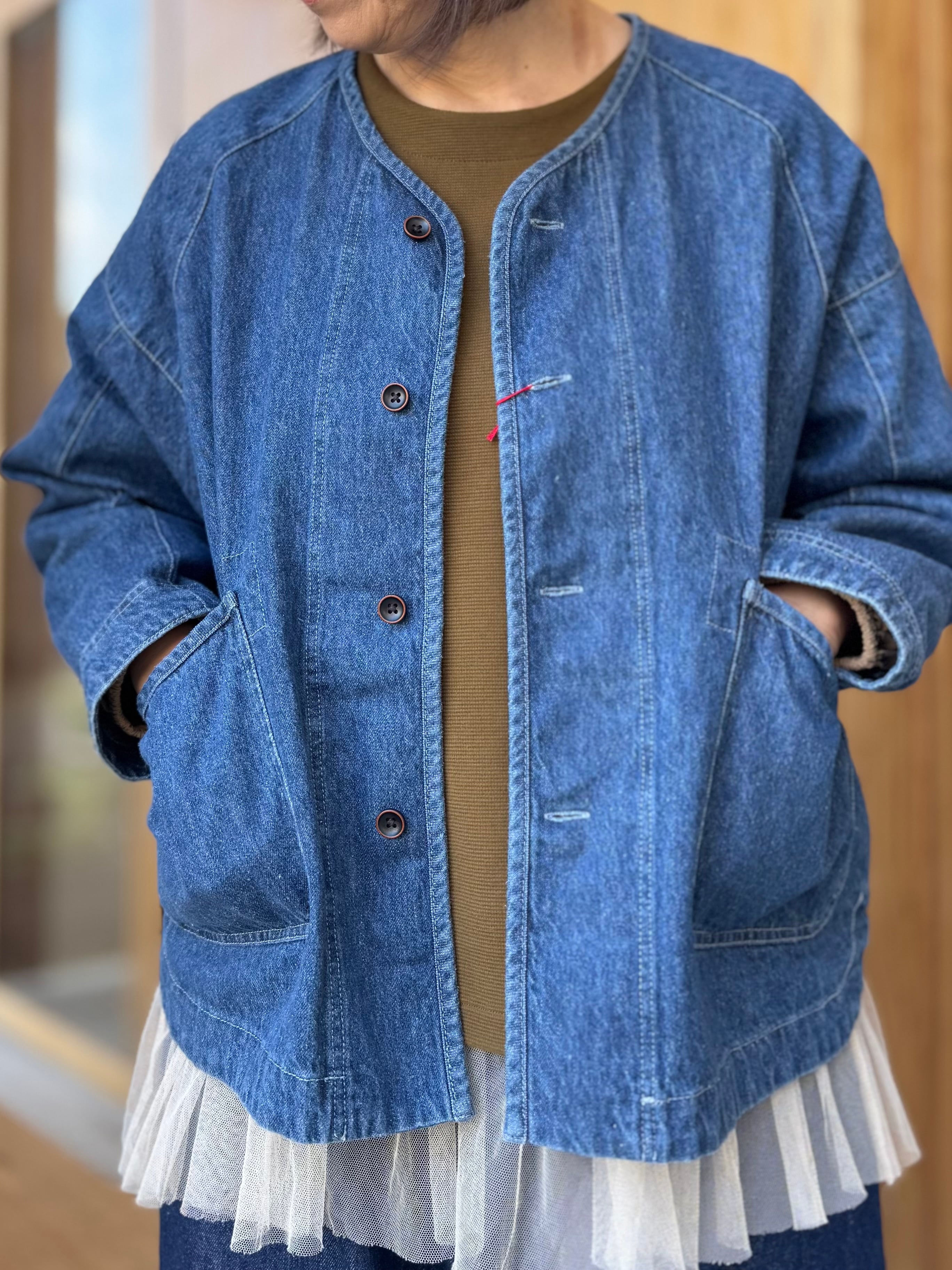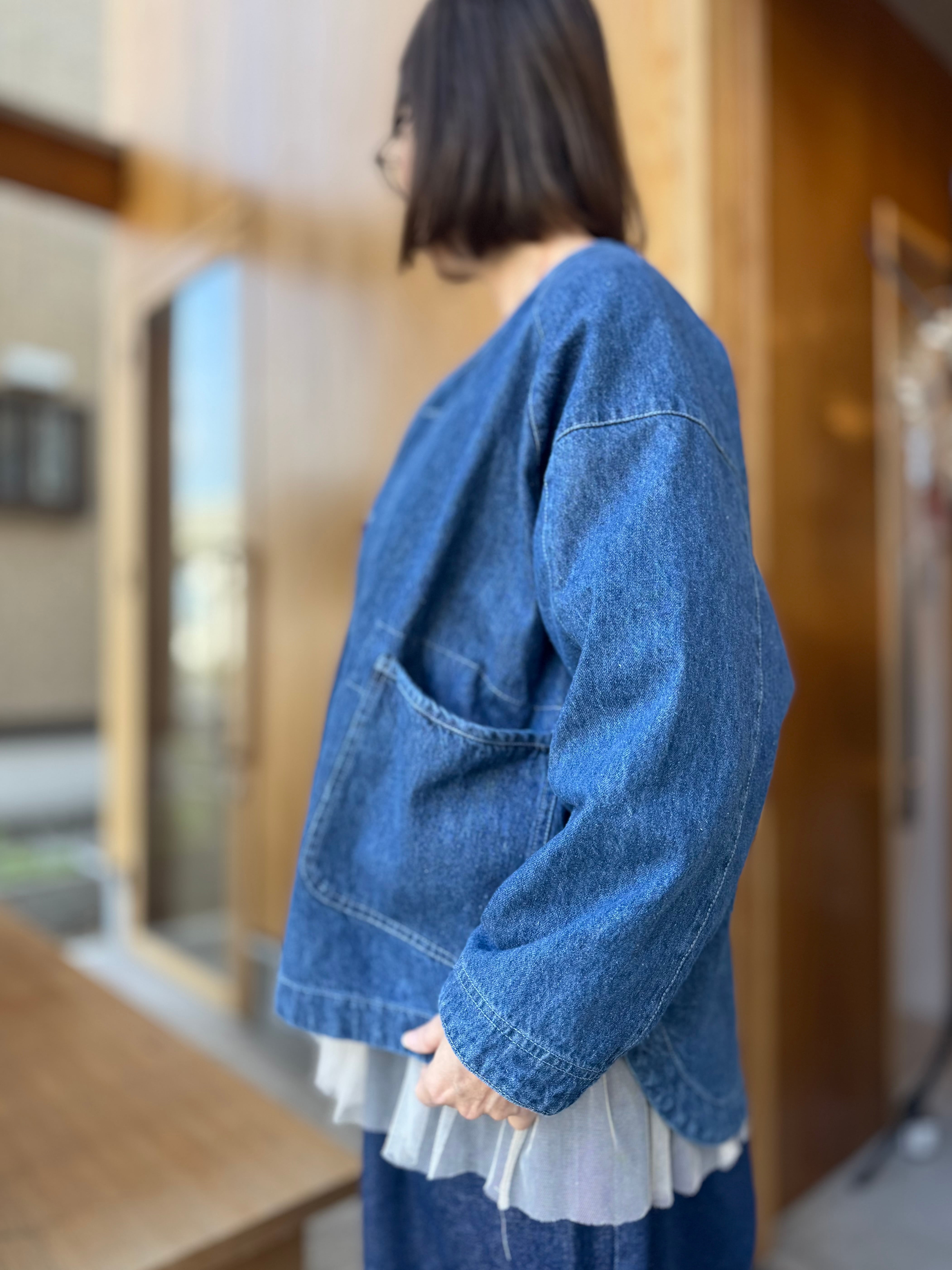 すその丸いカーブやゆるめなシルエットなどやさしい雰囲気のデニム