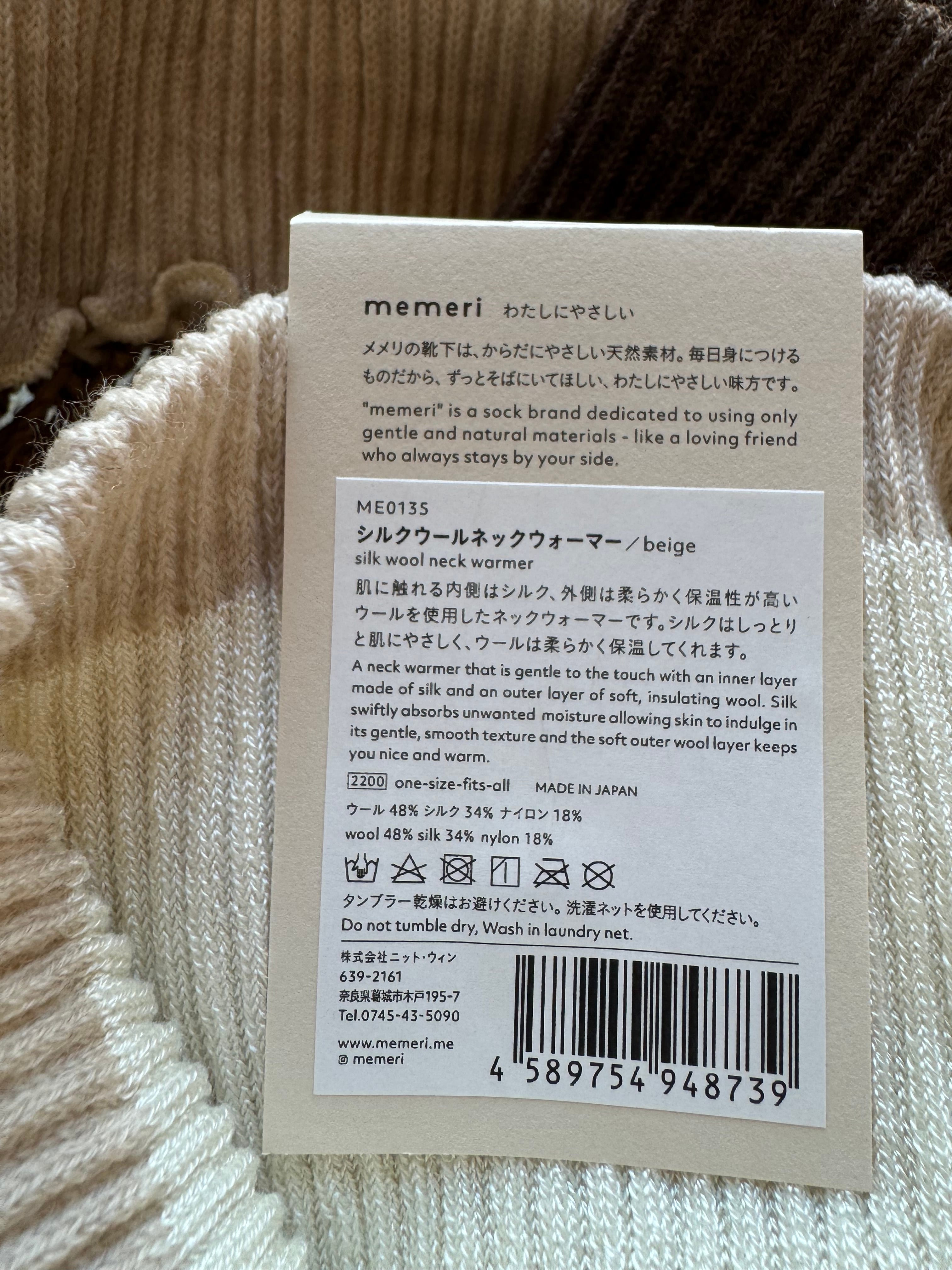肌に触れる内側はシルク、外側は柔らかく保温性が高いウールを使用したネックウォーマーです