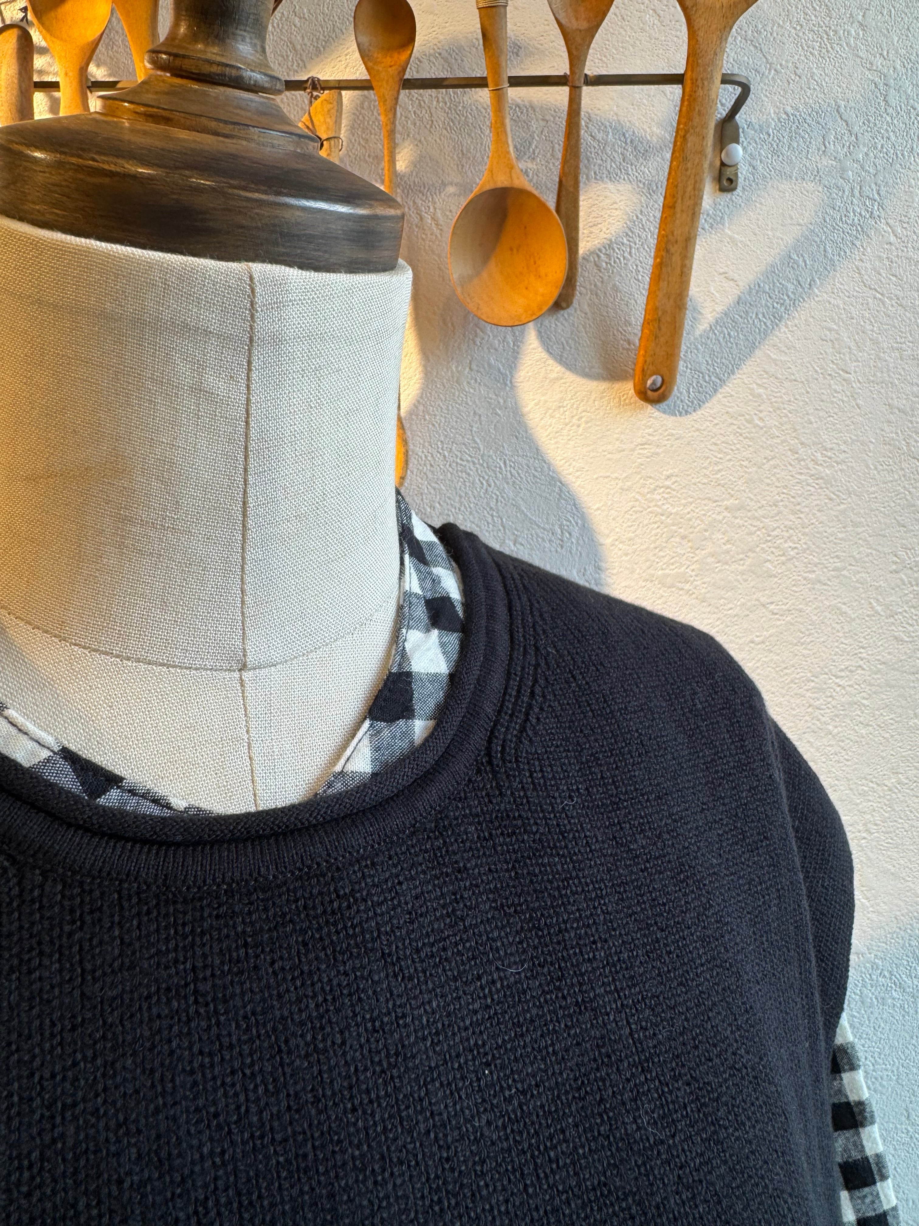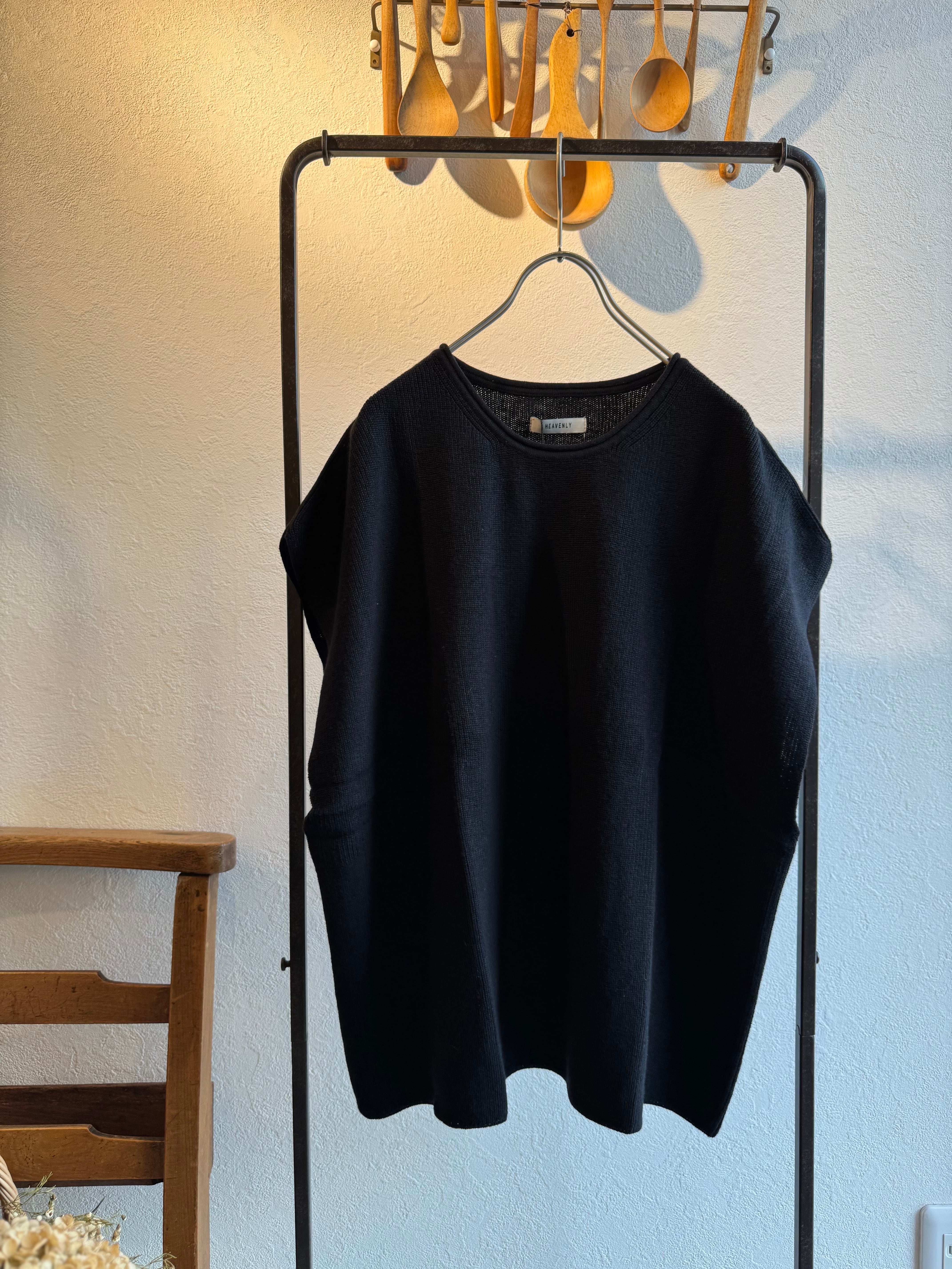 肌ざわりの良い柔らかなコットンにカシミアをブレンドしたシンプルなニットベストです