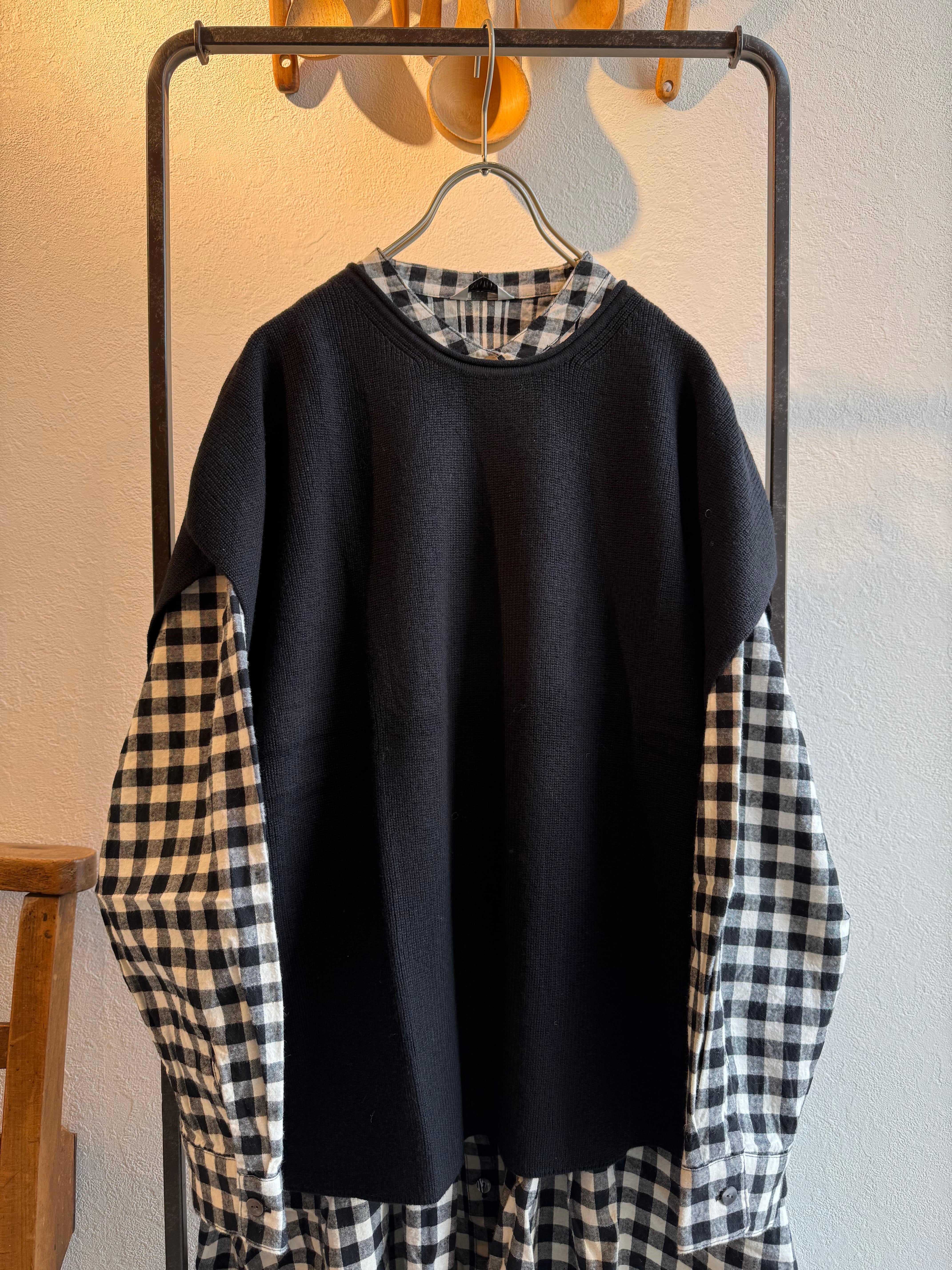 ワンピースはもちろんシャツやボーダーカットソー、タートルなど何に合わせてもしっくりと馴染んでくれそうです◎