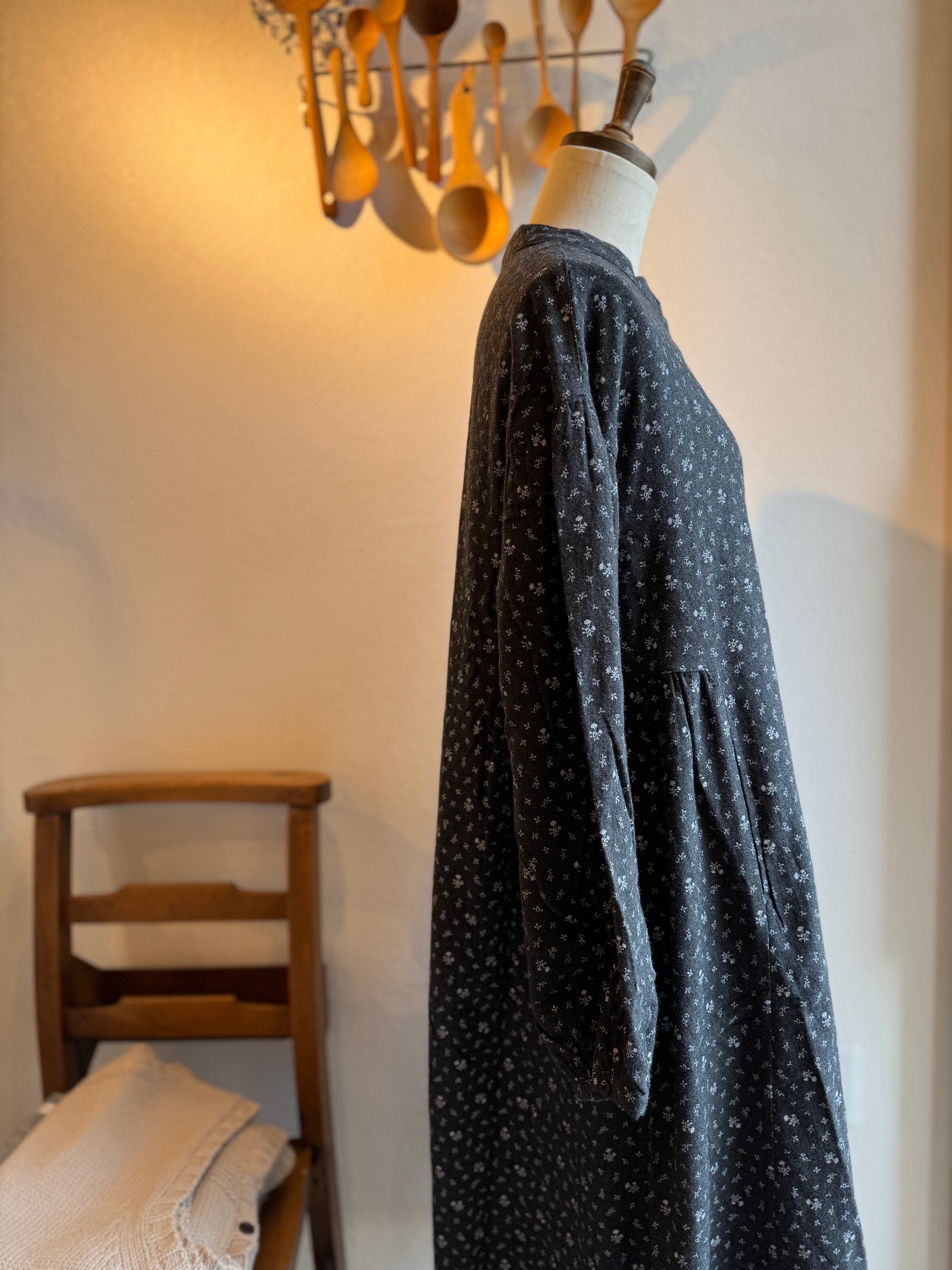 一見可愛らしい小花柄ですが着ると落ち着いた綺麗なシルエットのワンピースです◎