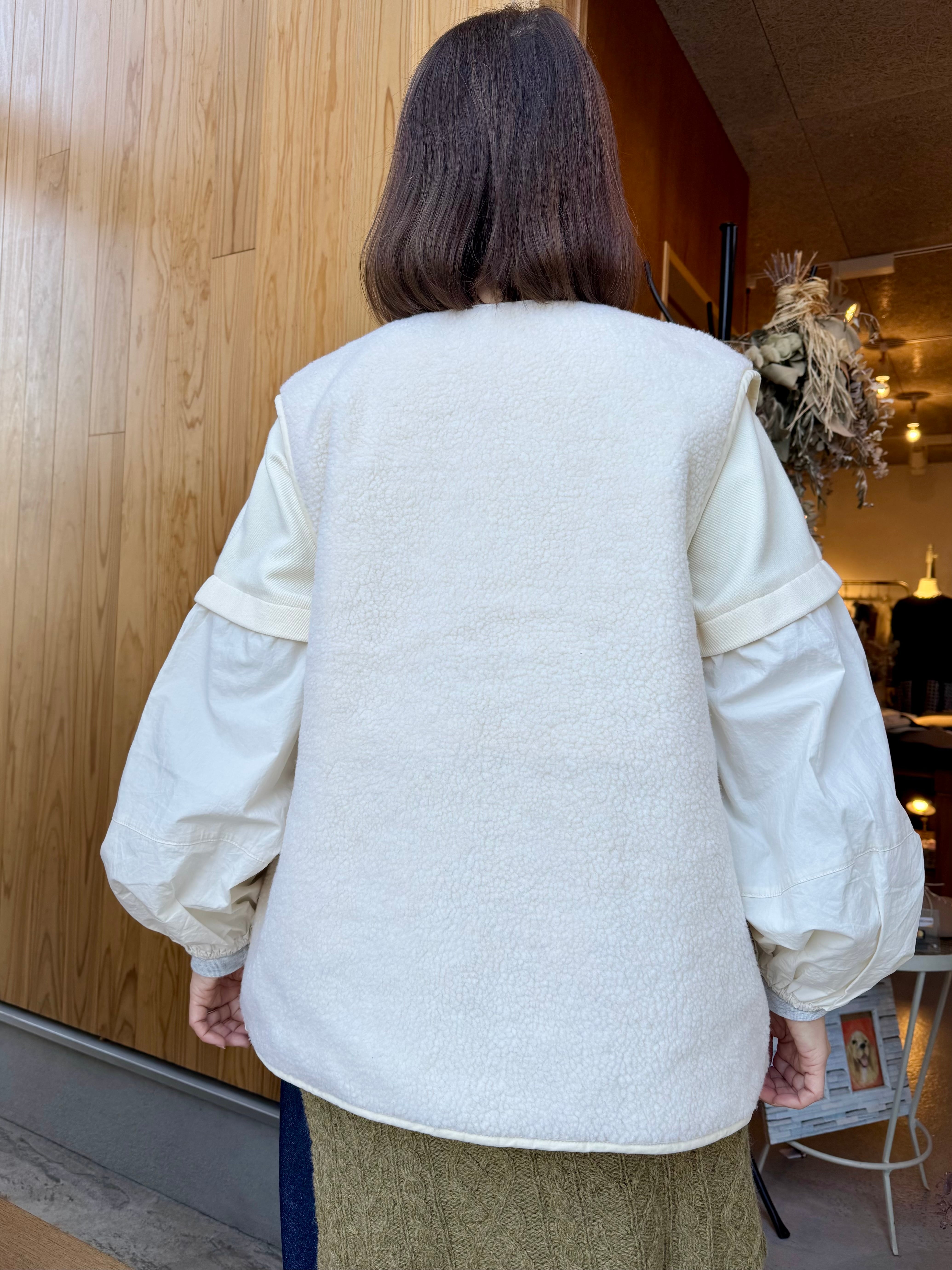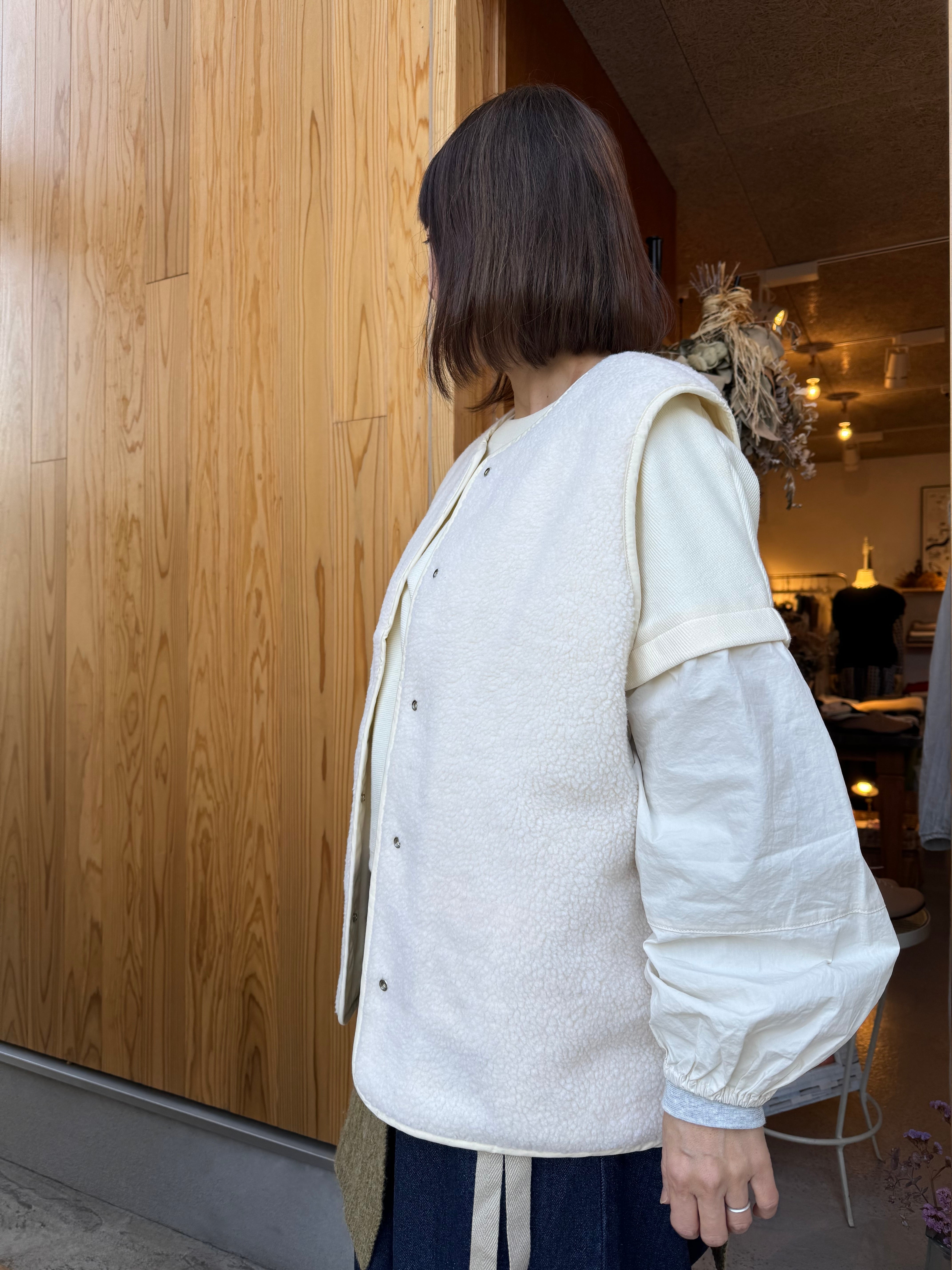 アームホールも広いので中にざっくりニットで合わせても大丈夫です!