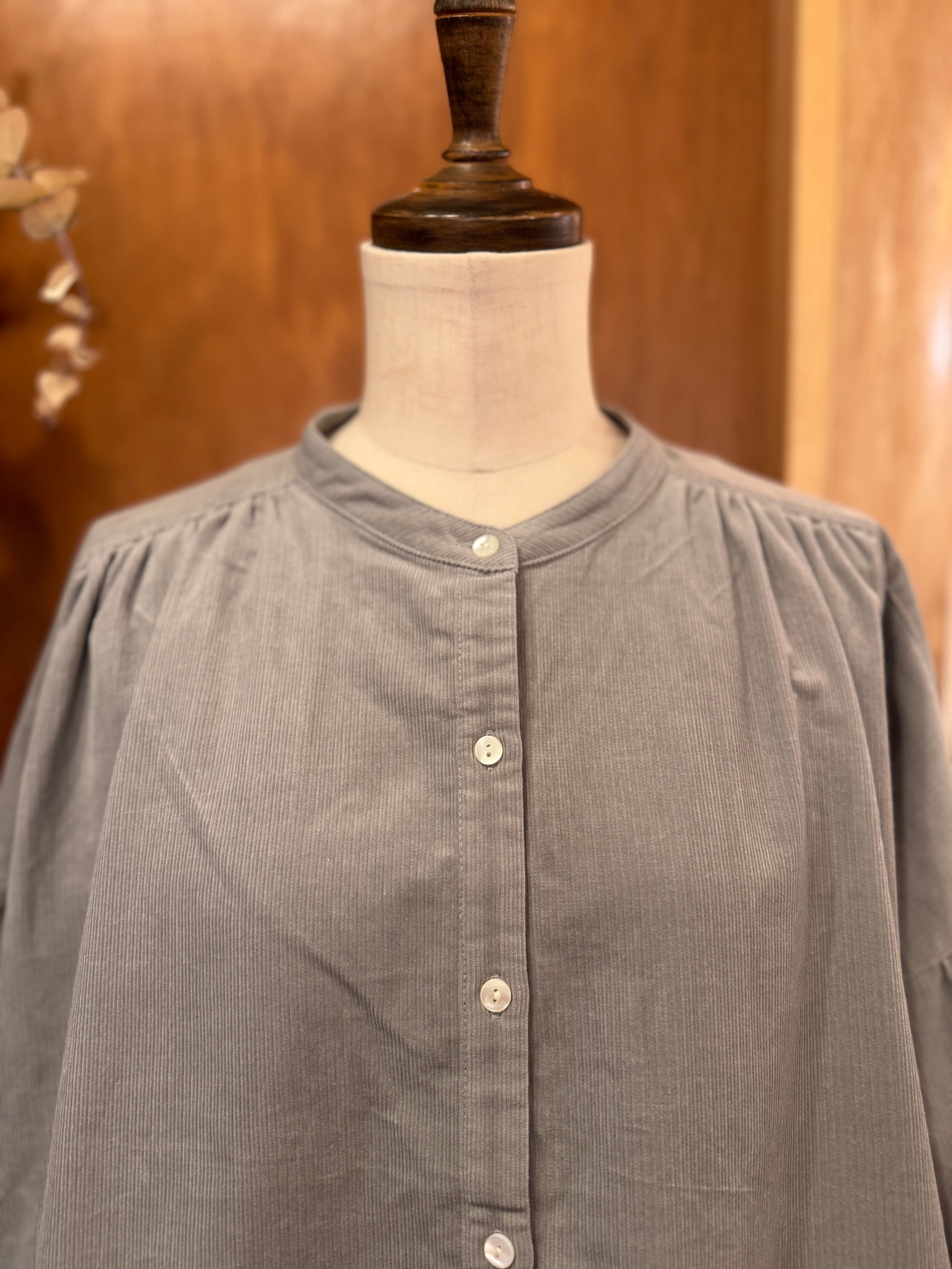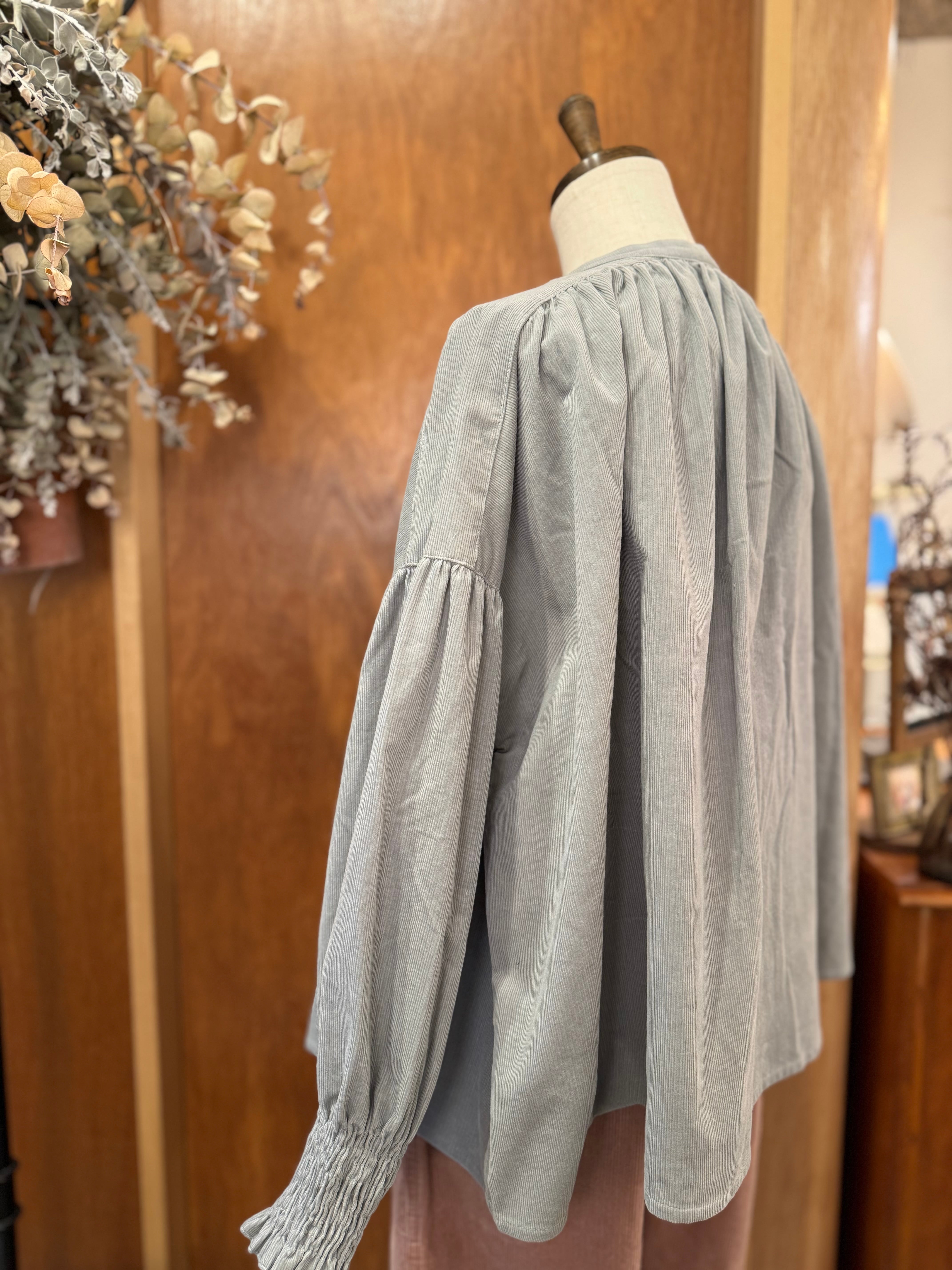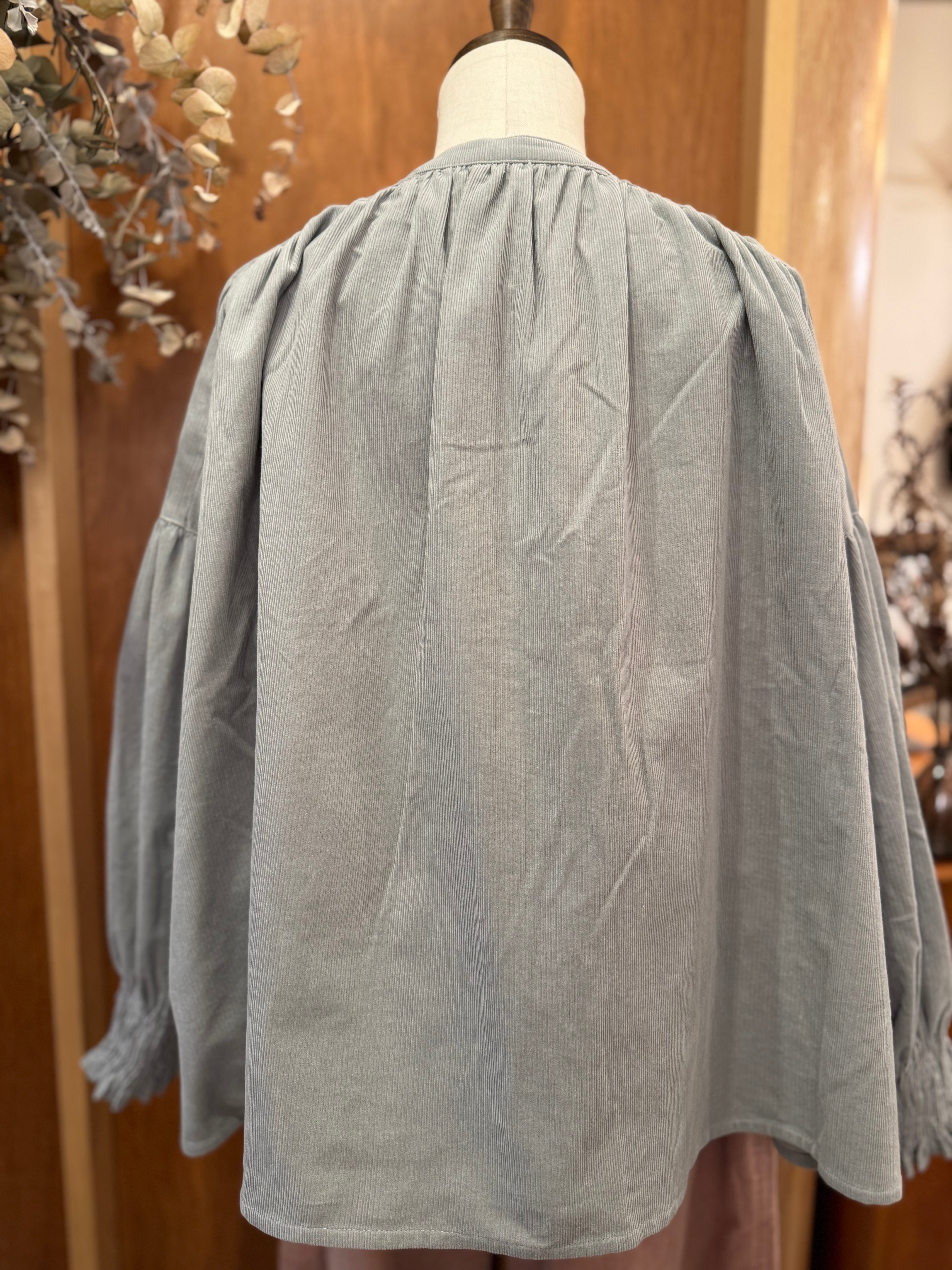 ごく細い畝の柔らかなコーデュロイをたっぷりと使ったギャザーブラウスです。