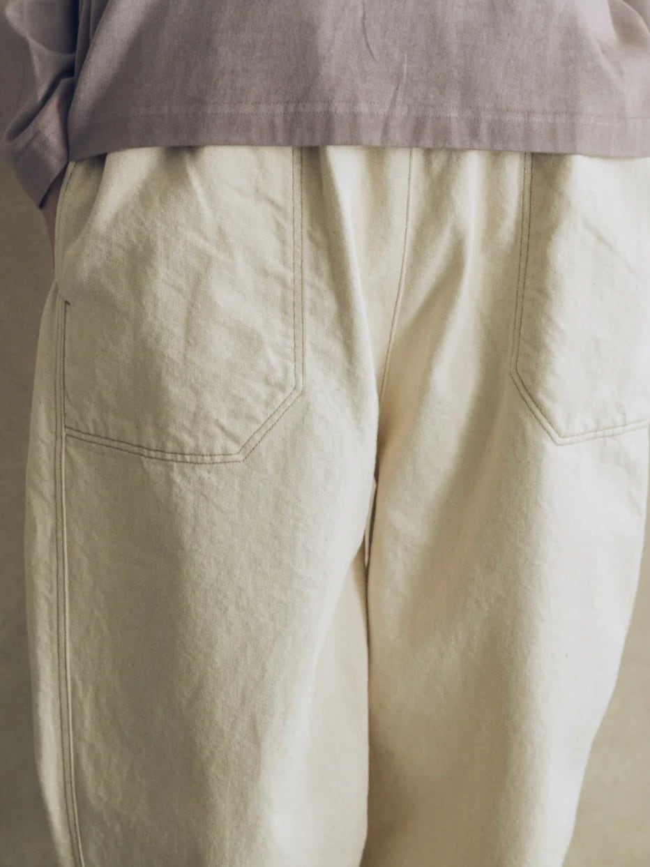ついつい履きたくなるリラックスしたシルエットで1年通して使えるイージーパンツ。ウエストはフリーで深めに履けるざっくり感がうれしいデザイン。