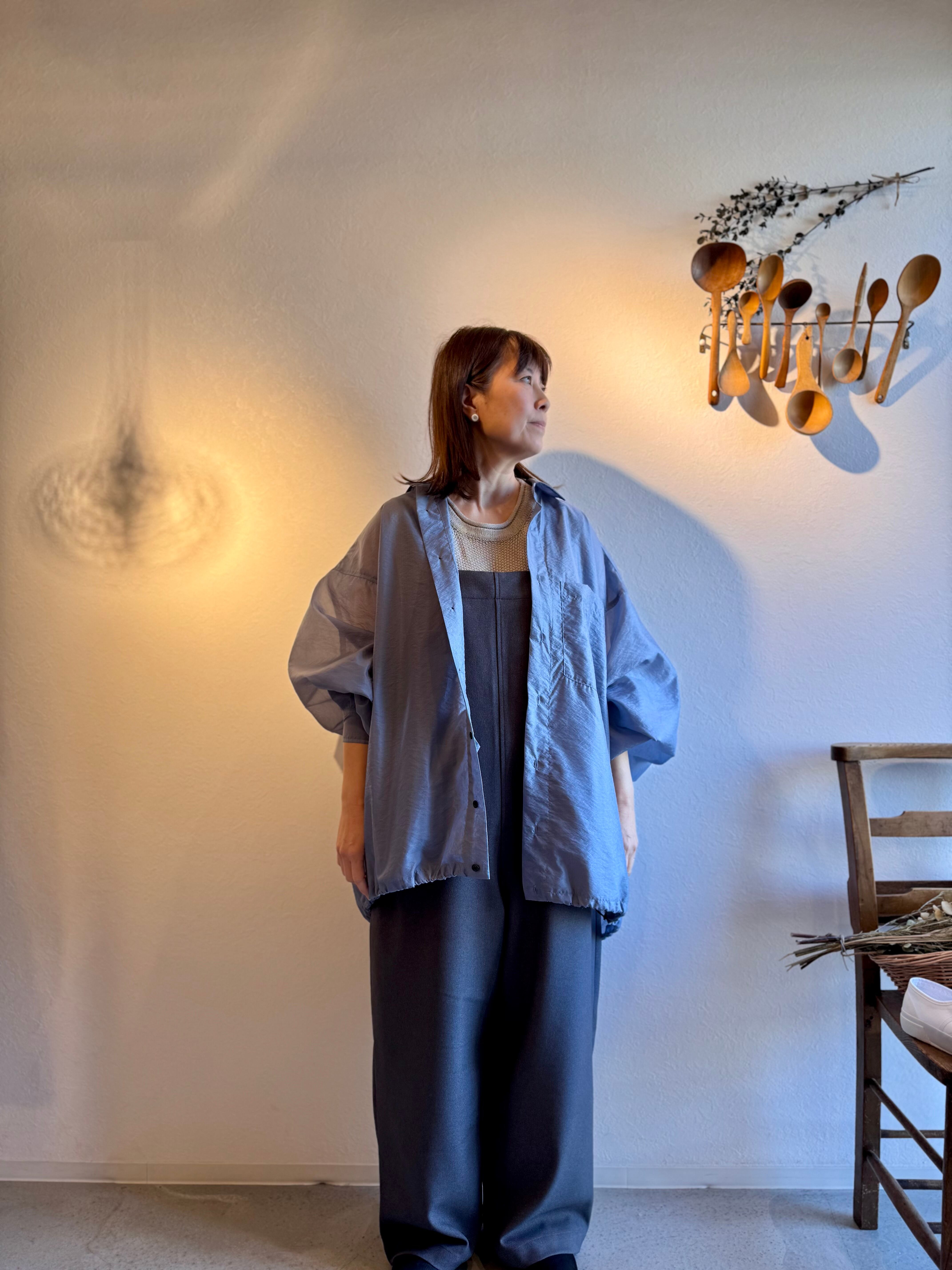 シワになりにくくイージーケアに優れた素材を使用しており、落ち感のあるなめらかな素材感です。
