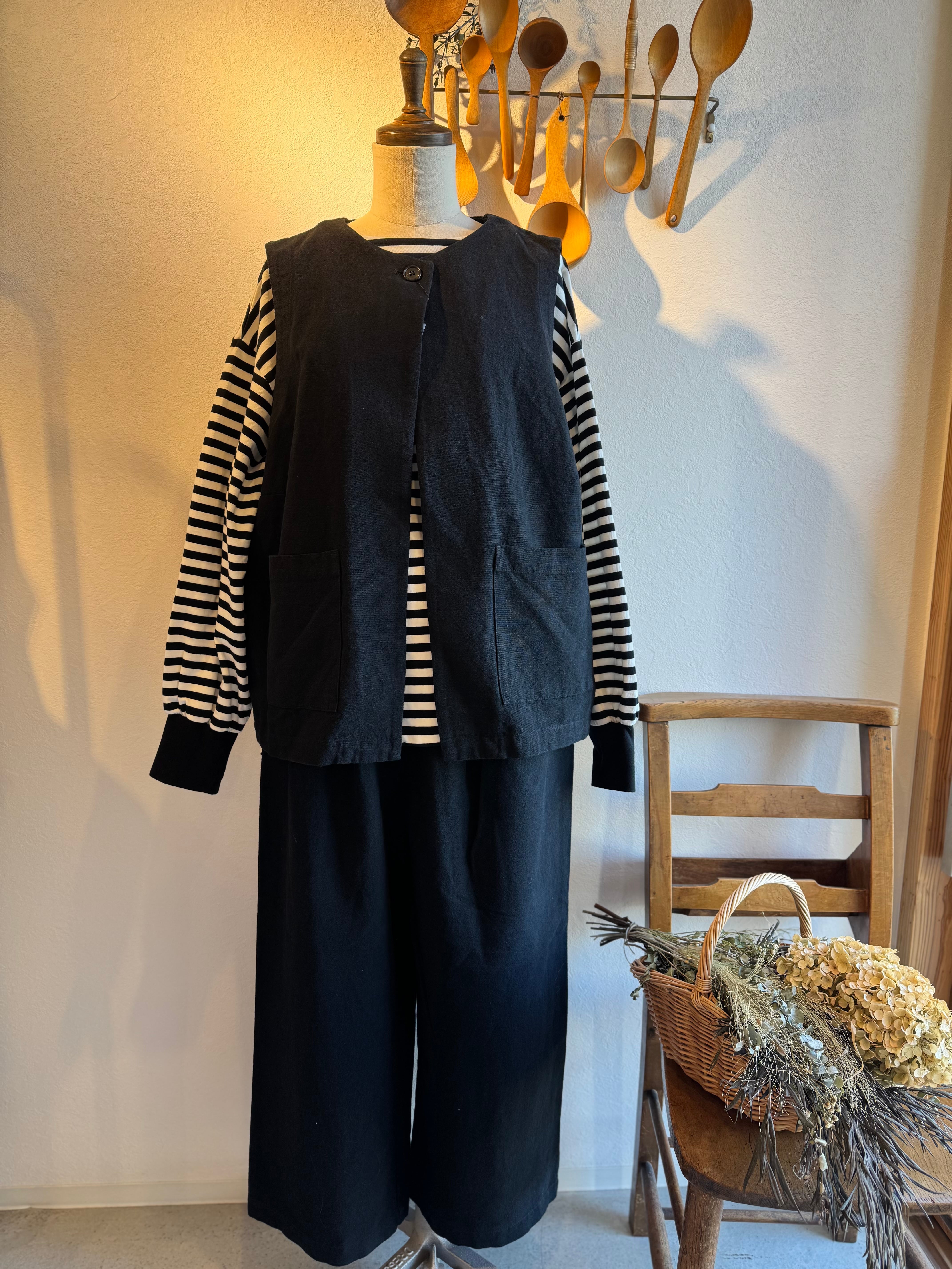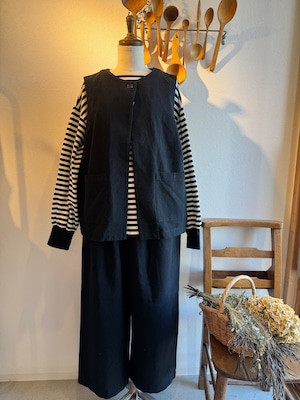 同素材のひとつボタンベストと合わせると気取らないナチュラルなお洒落感が楽しめるセットアップに◎