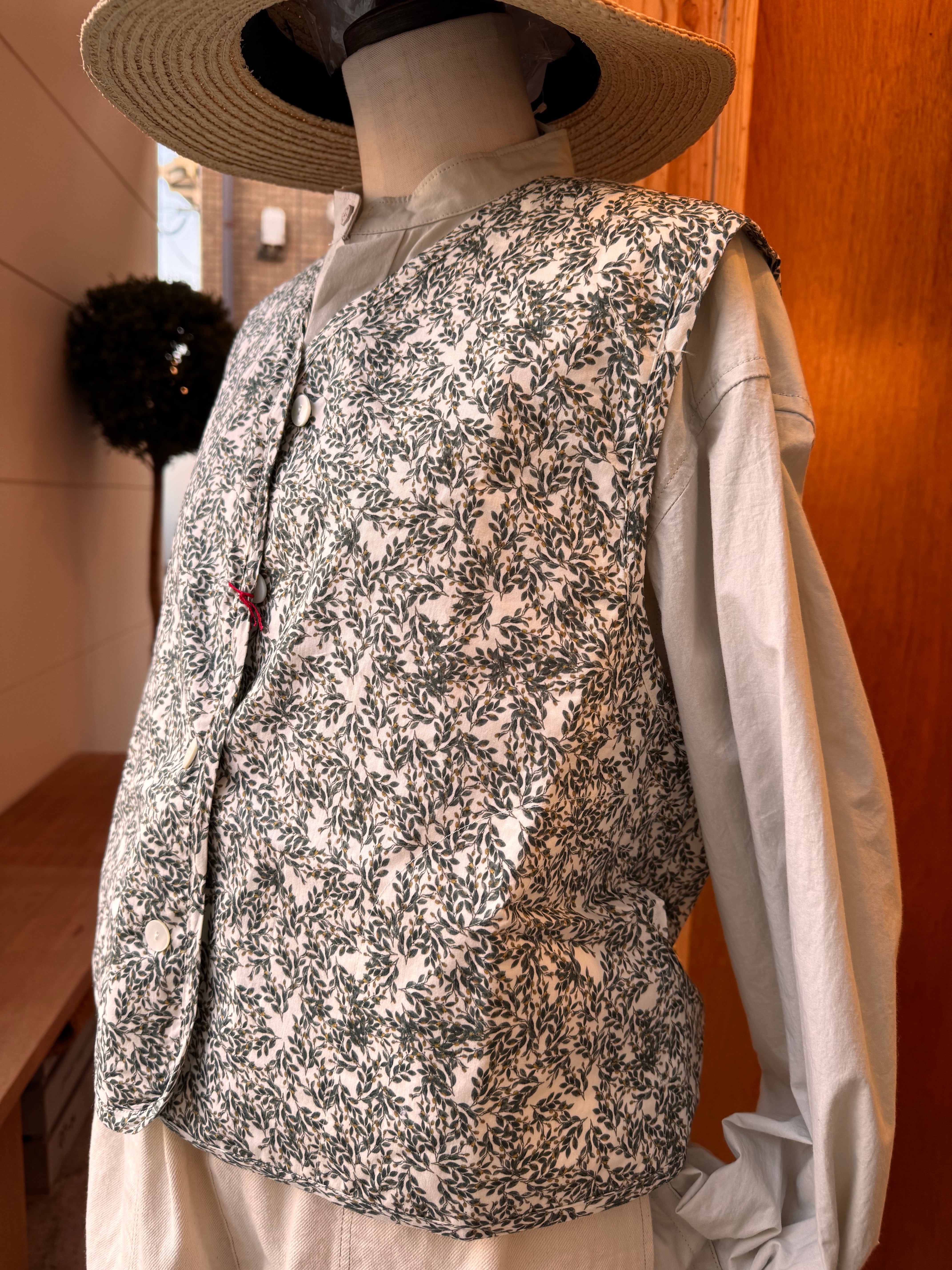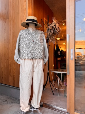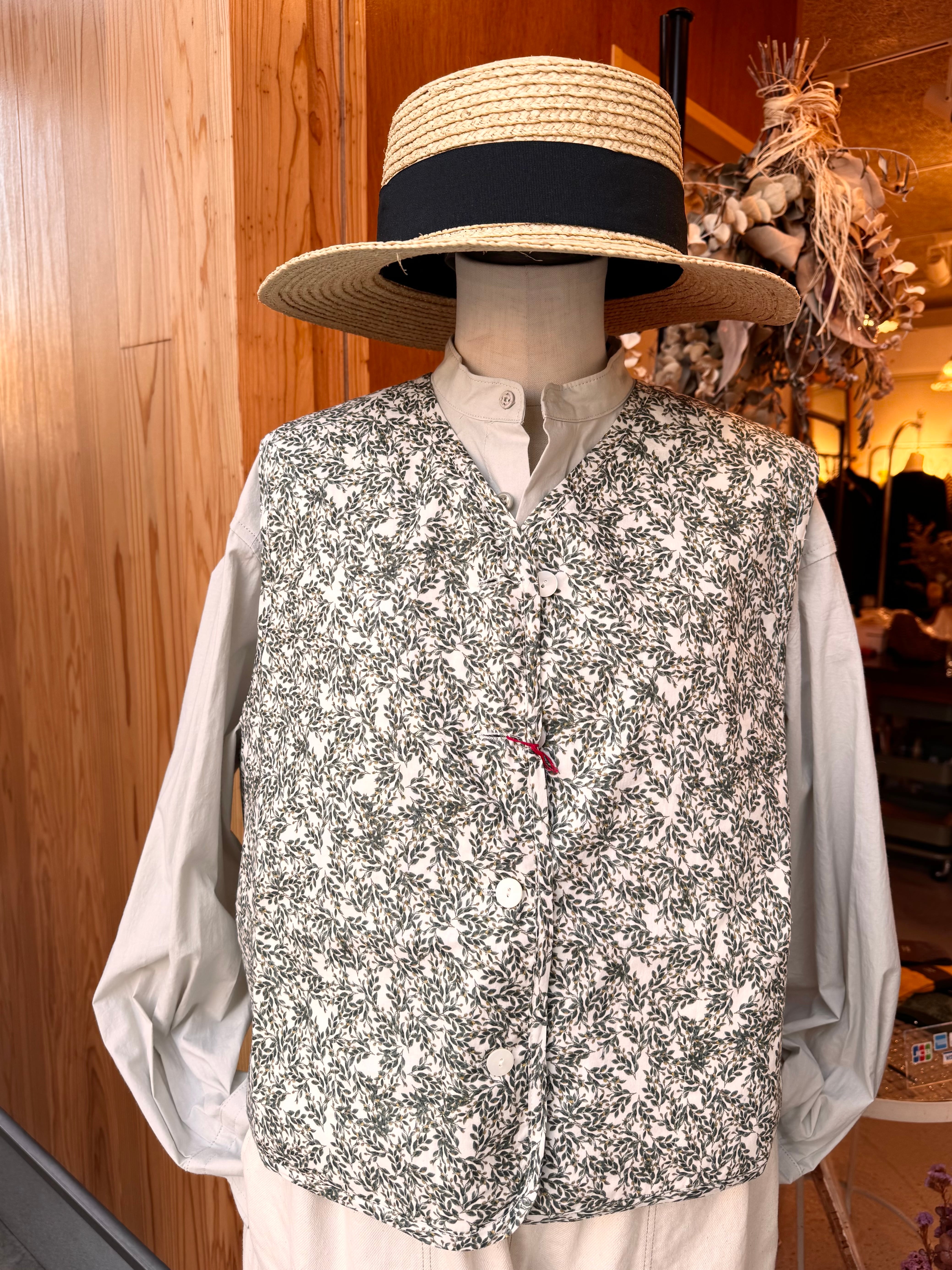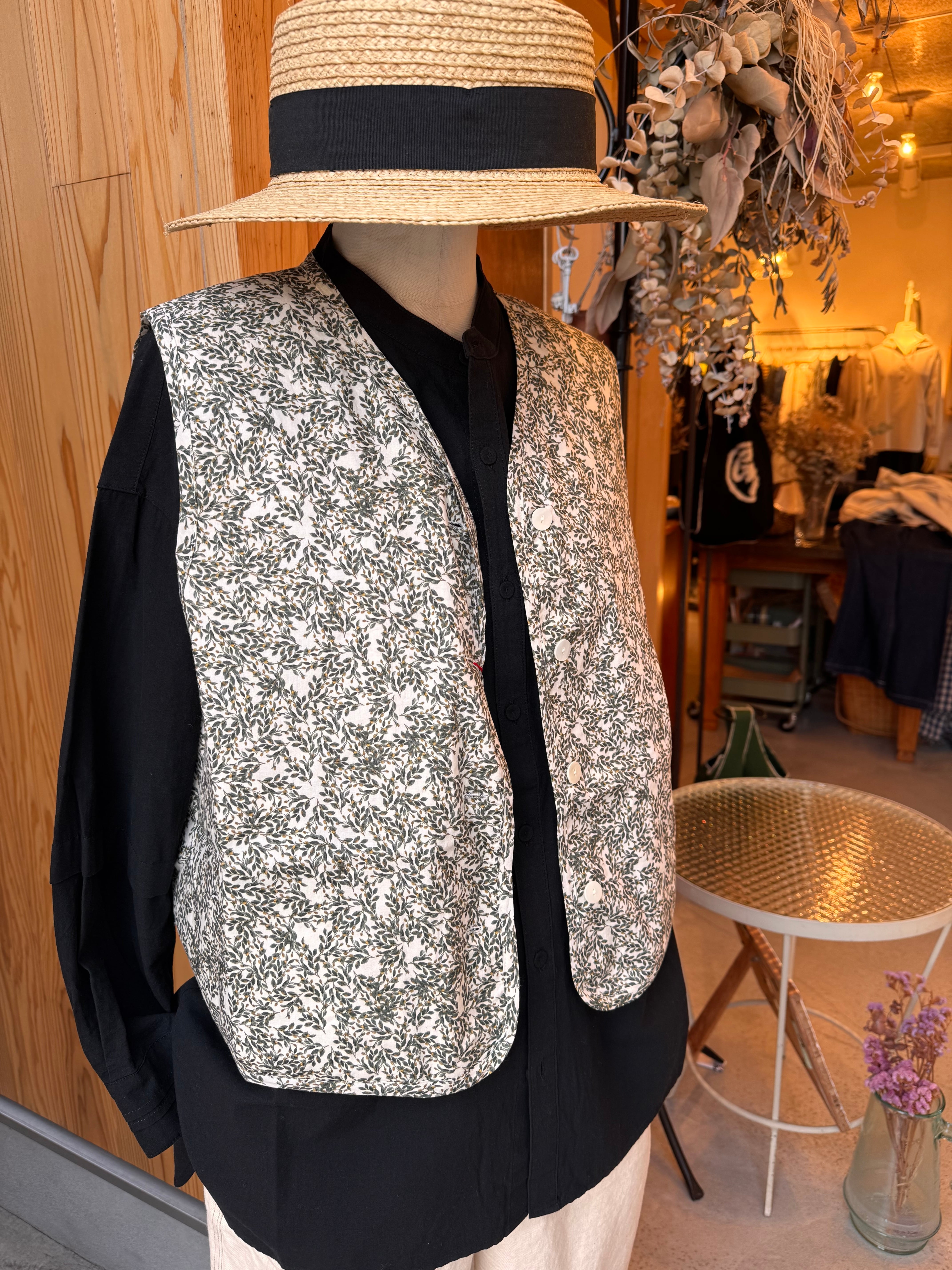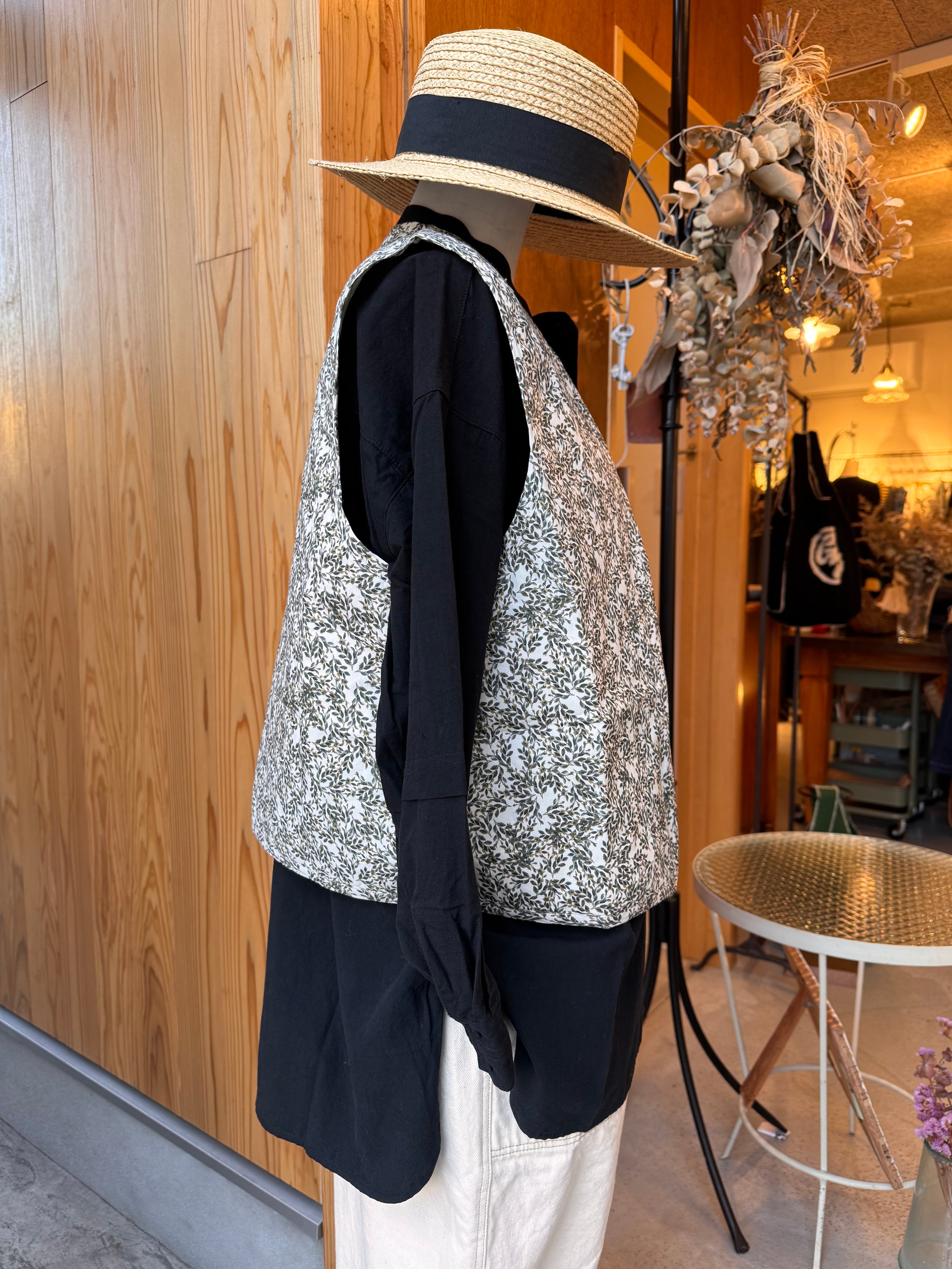 華やかなフラワープリントを纏った軽やかな雰囲気のキルトベストです。