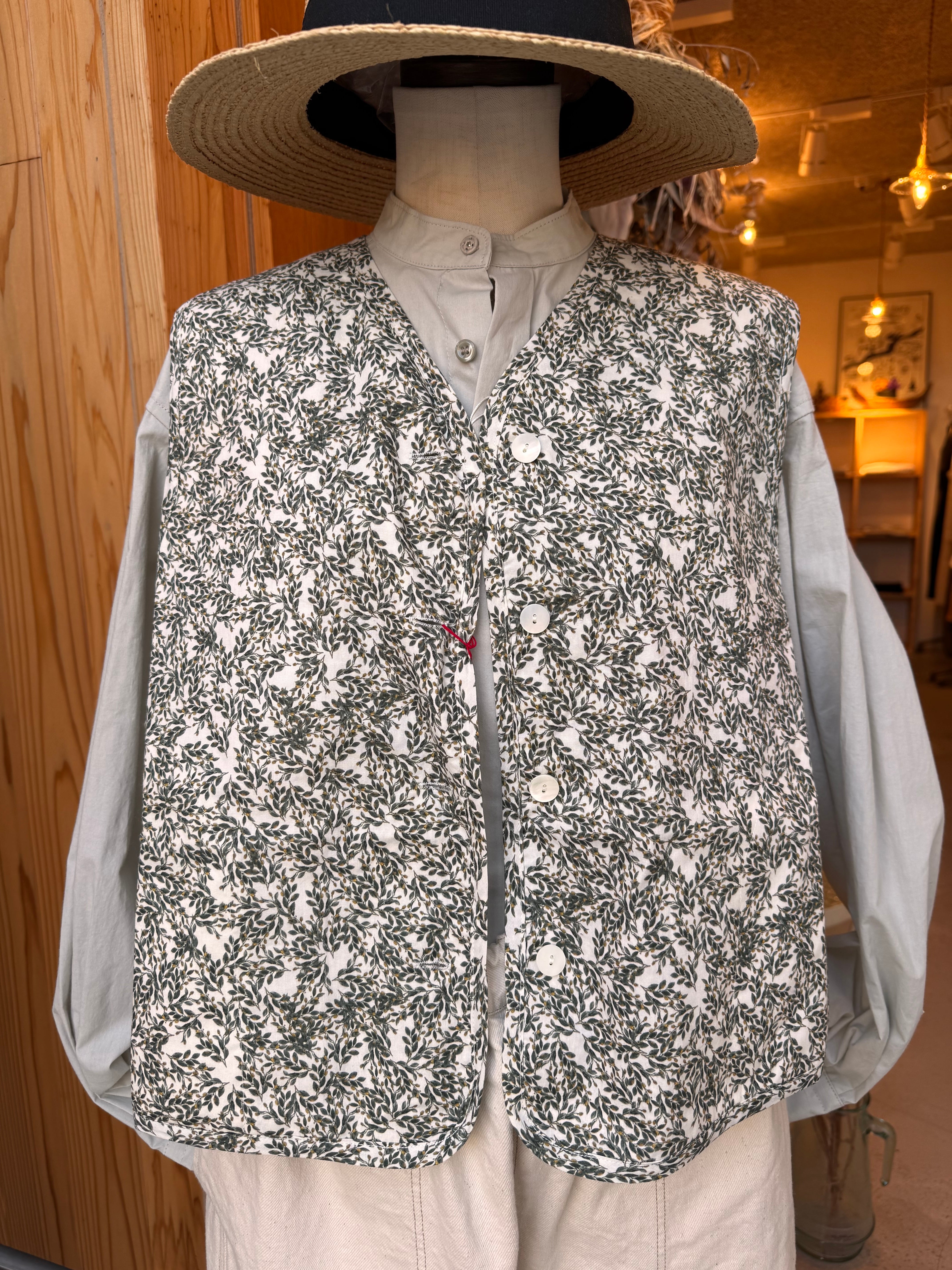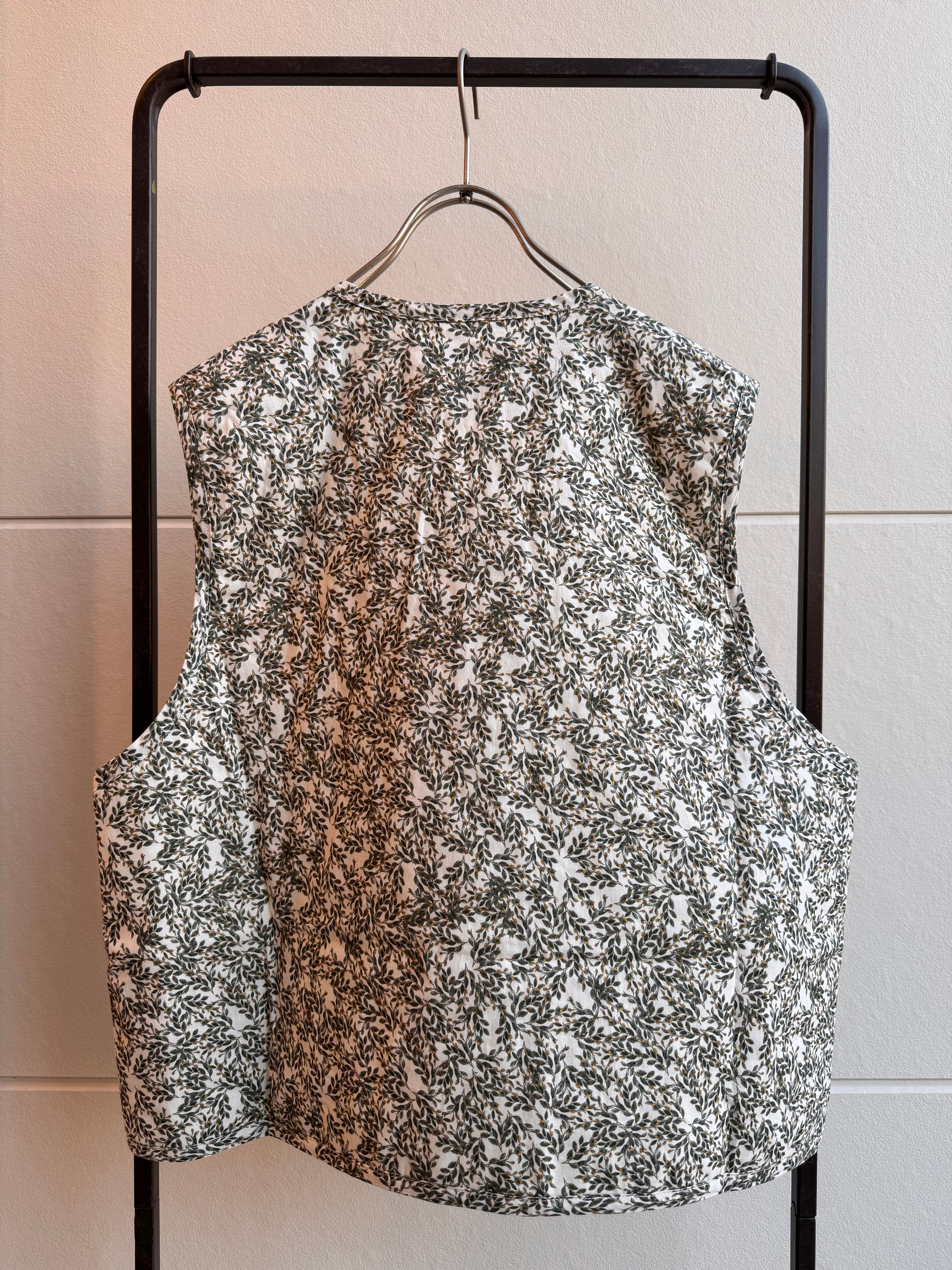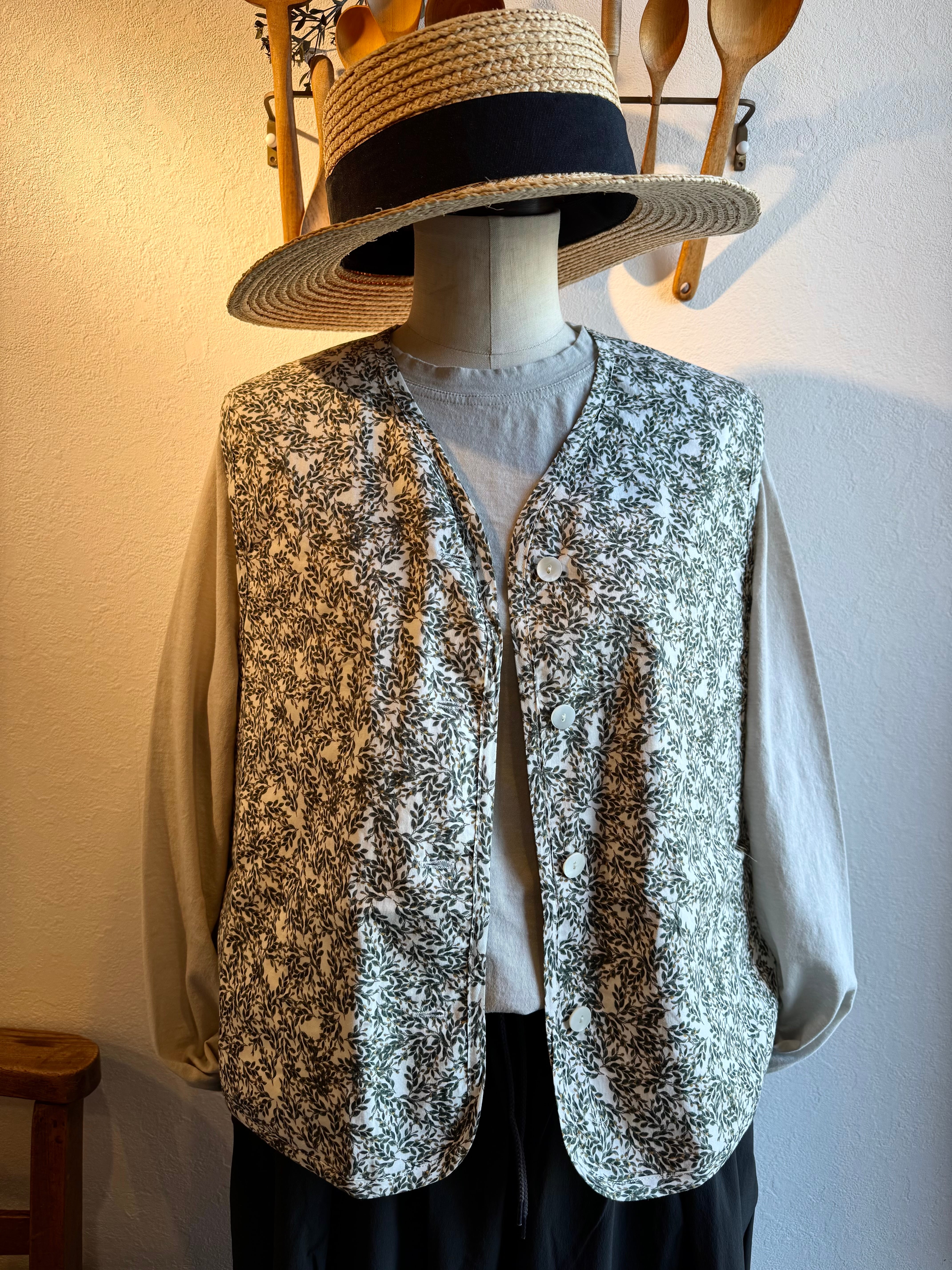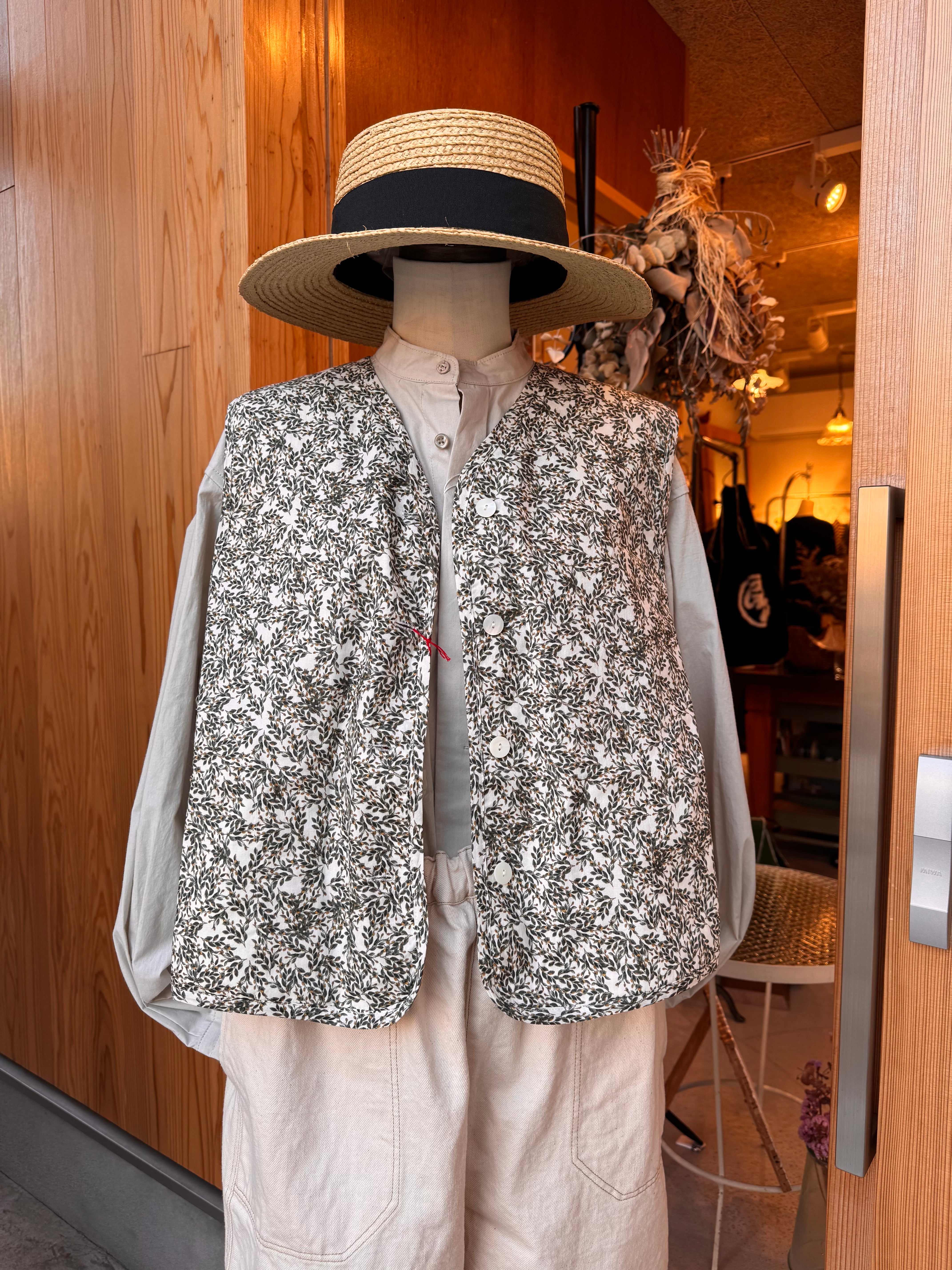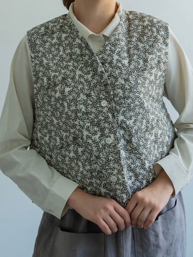 華やかなフラワープリントを纏った軽やかな雰囲気のキルトベストです。