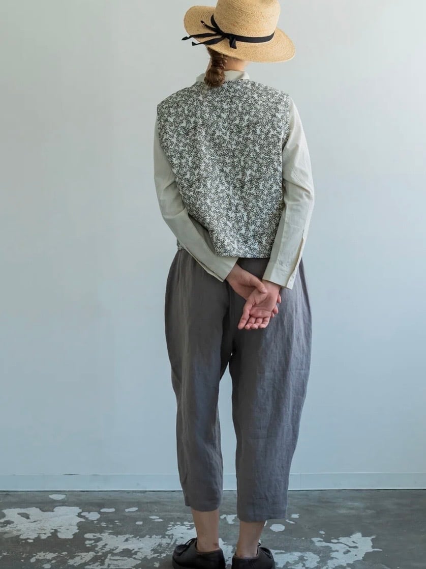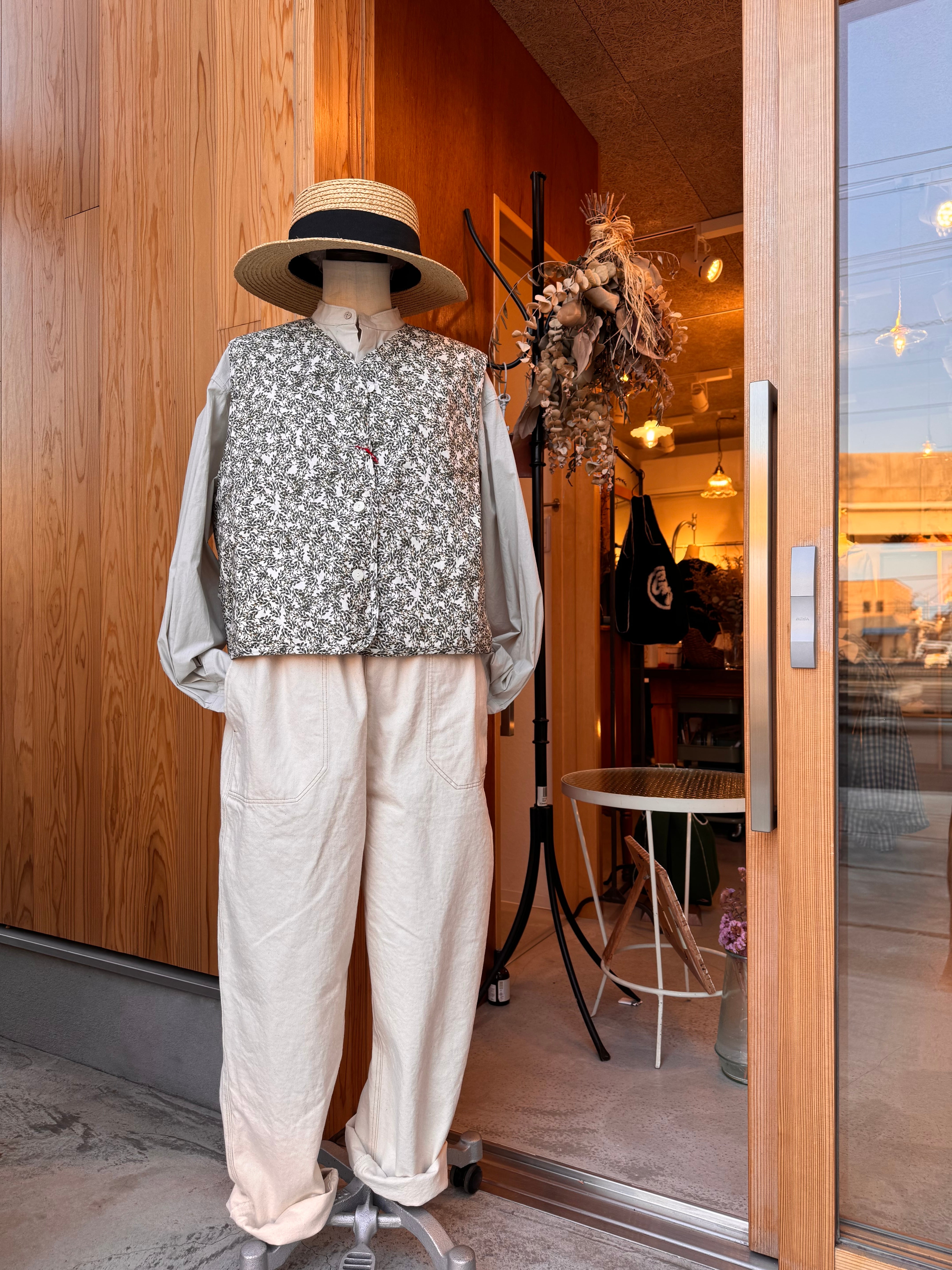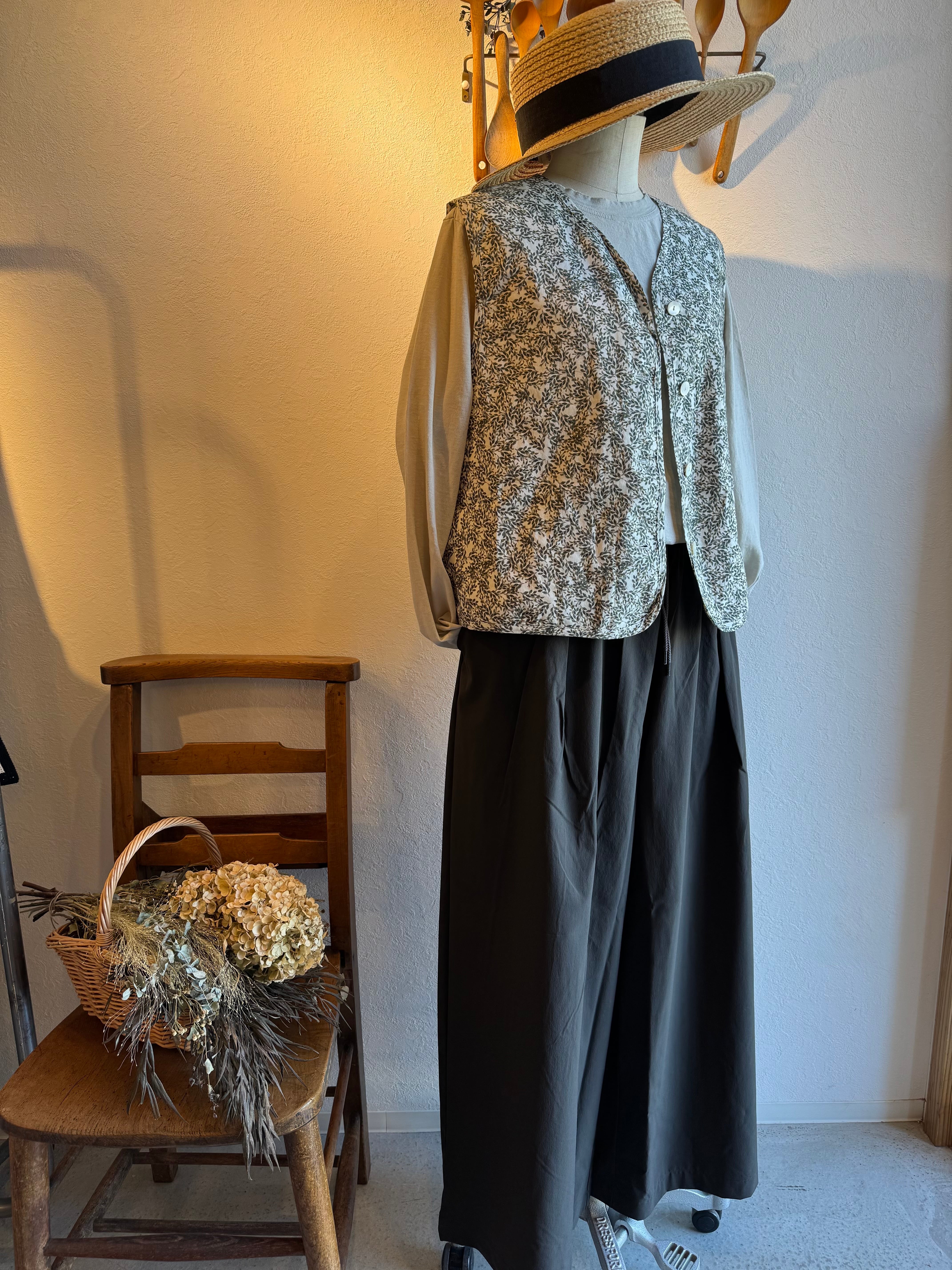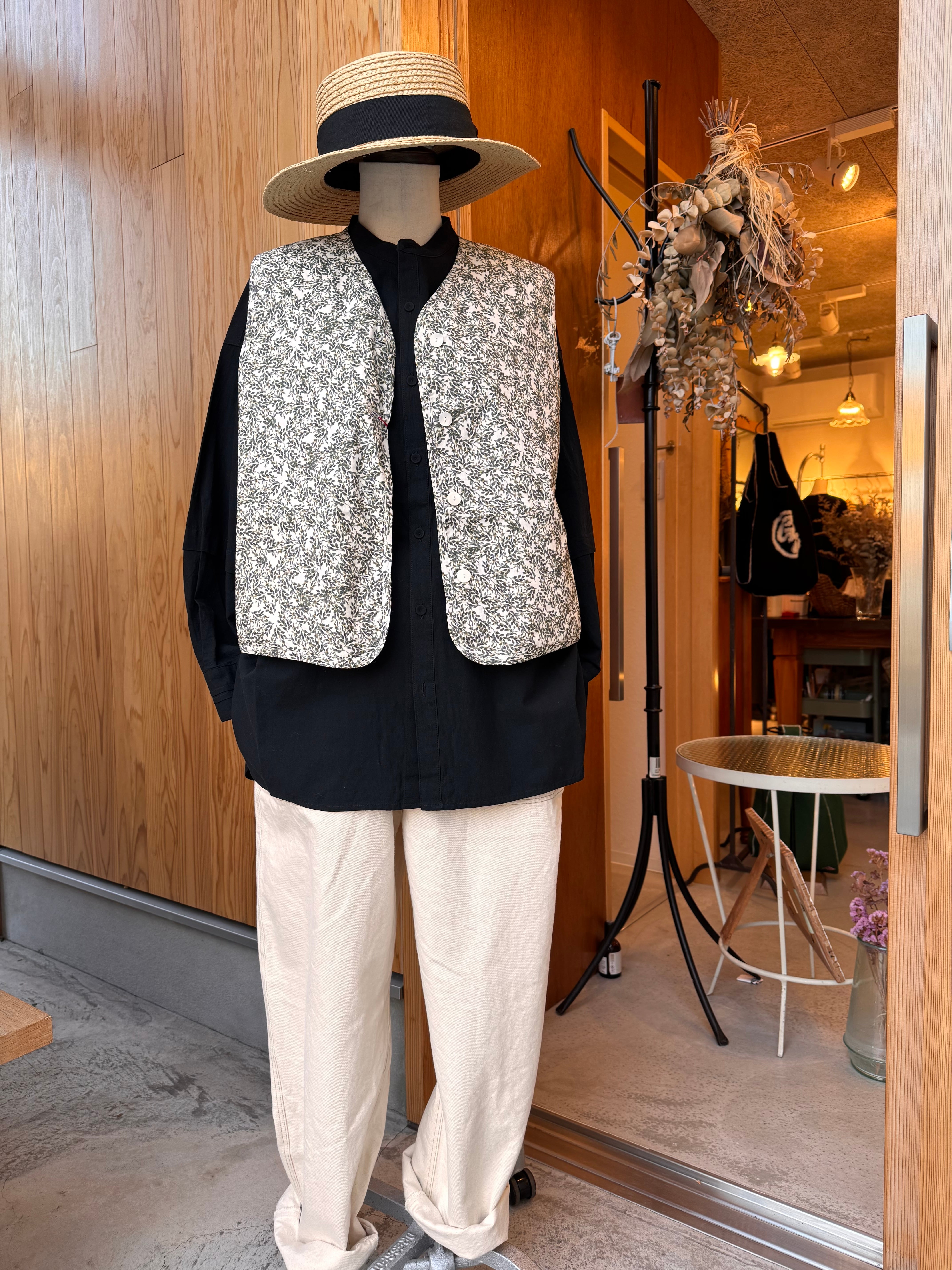 華やかなフラワープリントを纏った軽やかな雰囲気のキルトベストです。