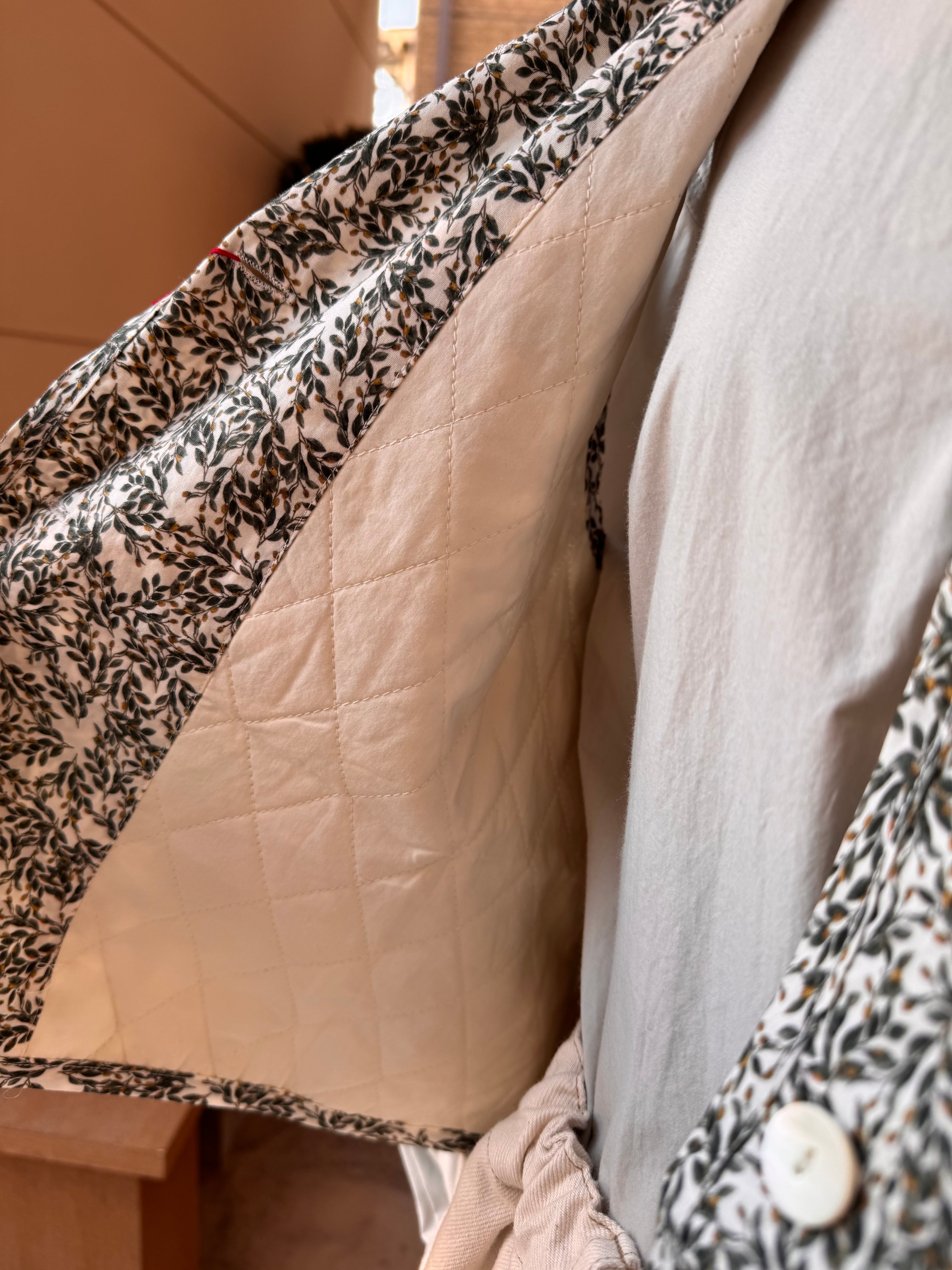内側のみにごく薄くキルト加工をほどこし、軽さがありつつ春先の肌寒さにも対応してくれるデザイン。ふんわりと空気を包む安心できる着用感です。