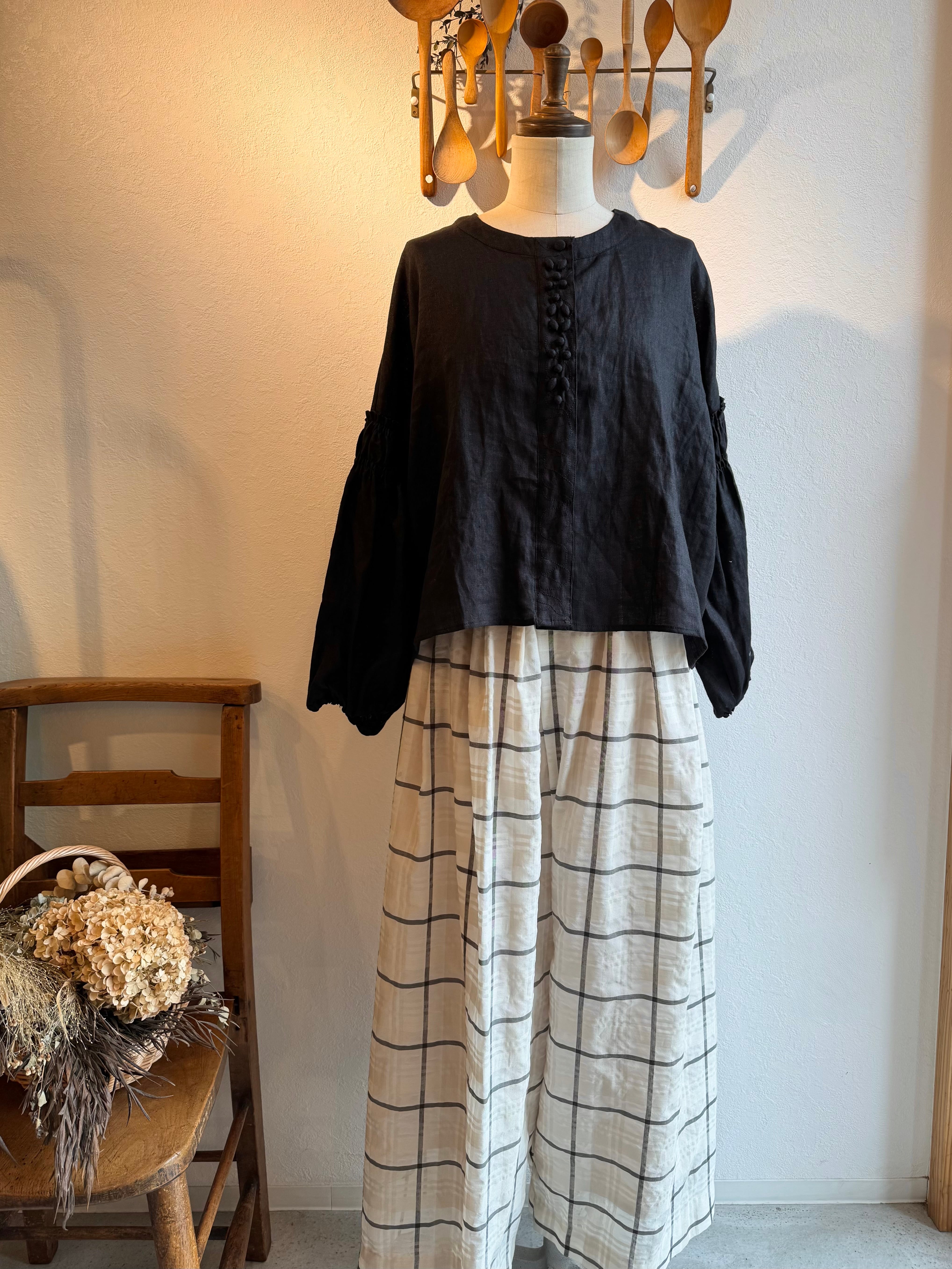 短めの着丈とボリュームのある袖とのバランスが絶妙に素敵な1着◎優しい雰囲気と華やかさもある特別なブラウスです。