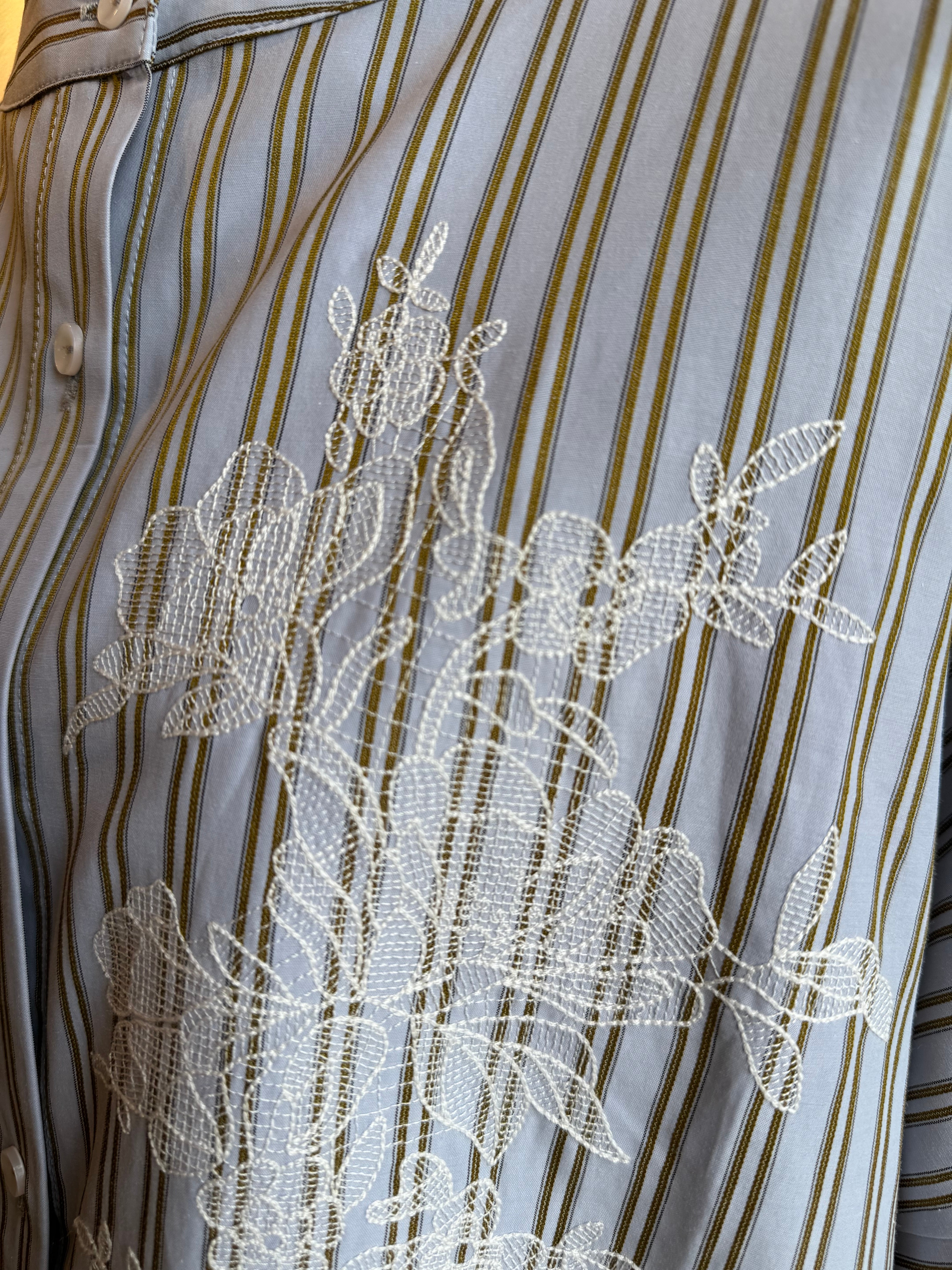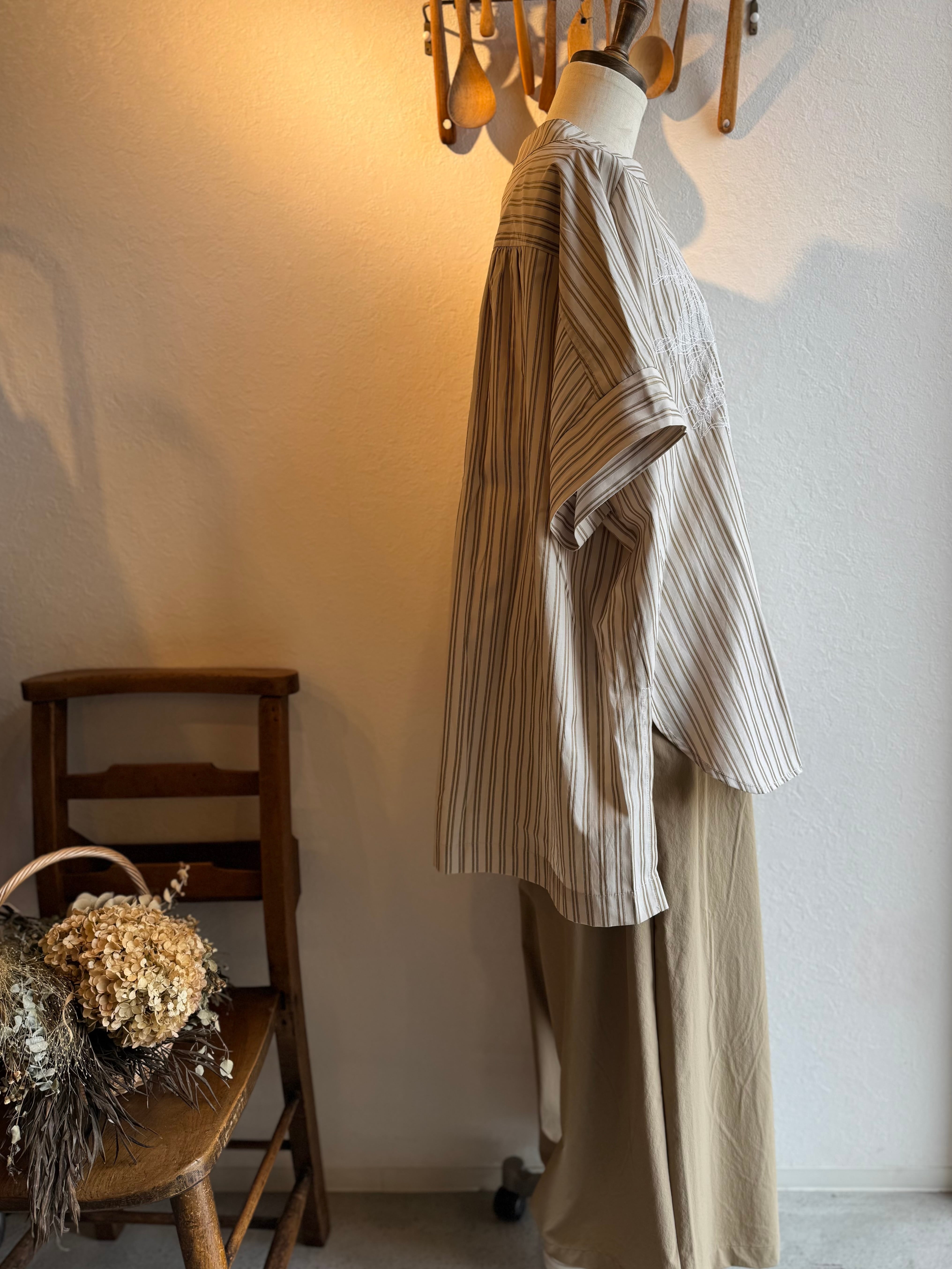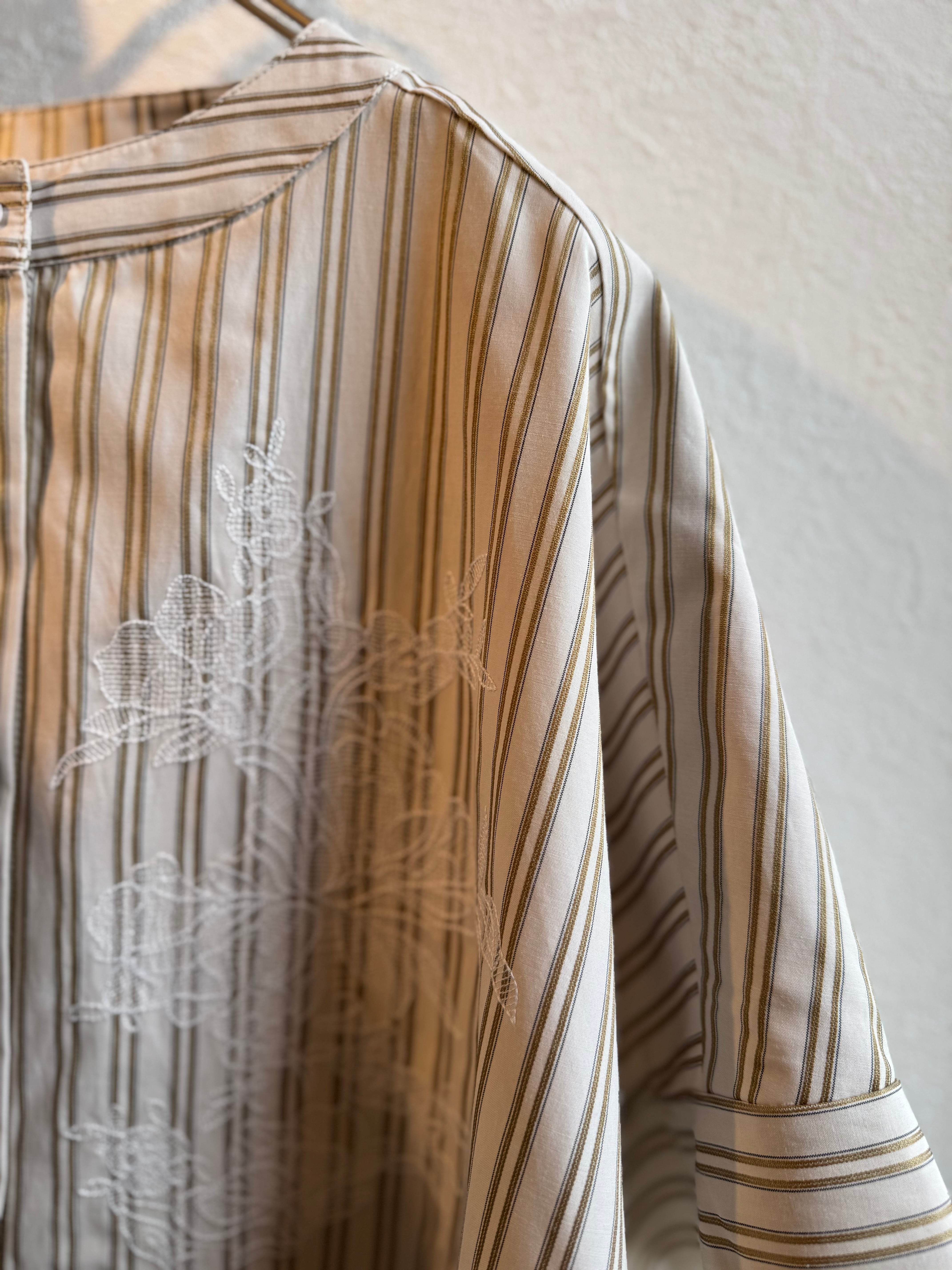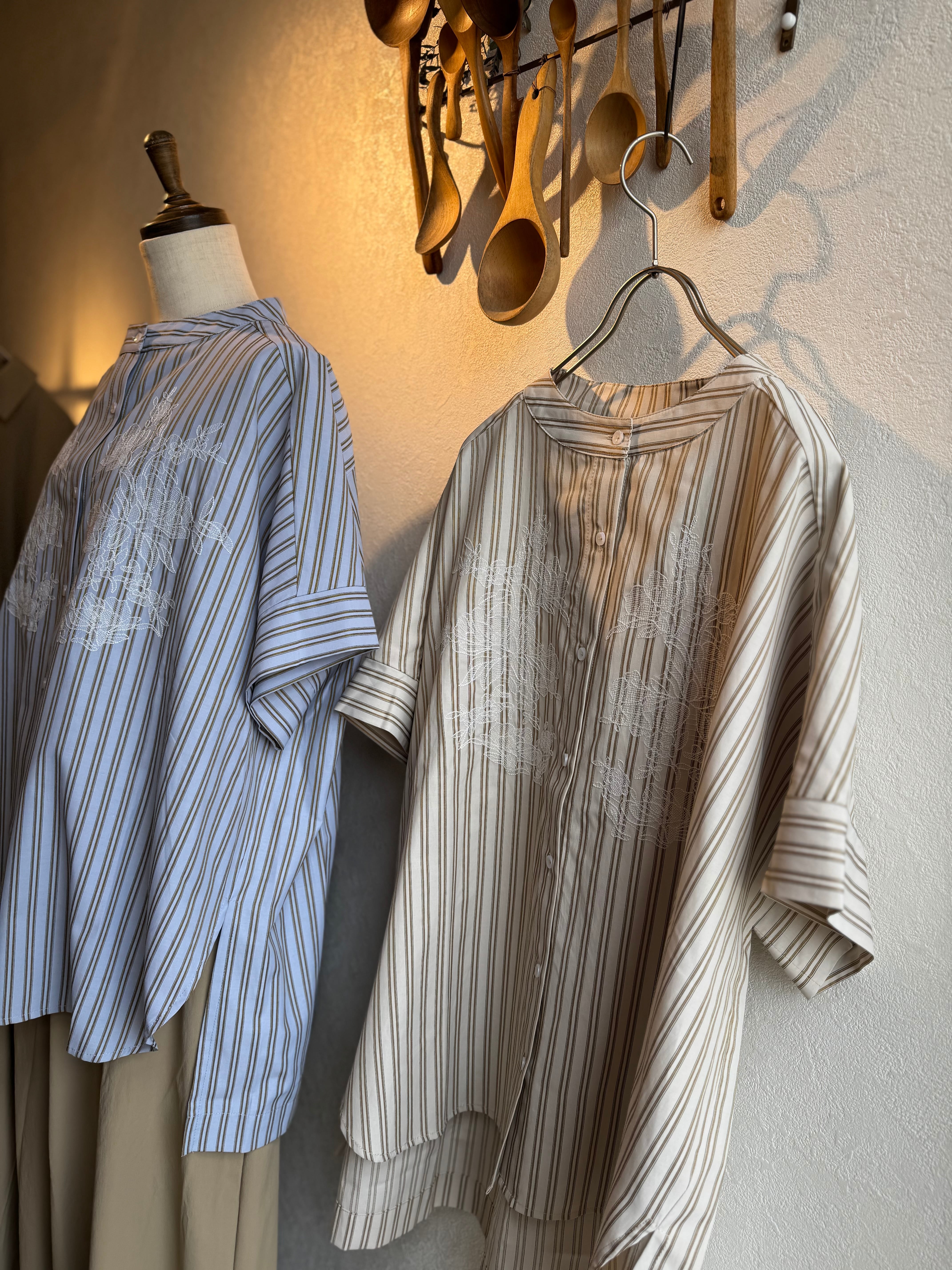 KELEN ストライプ×レース刺繍チュニックシャツ