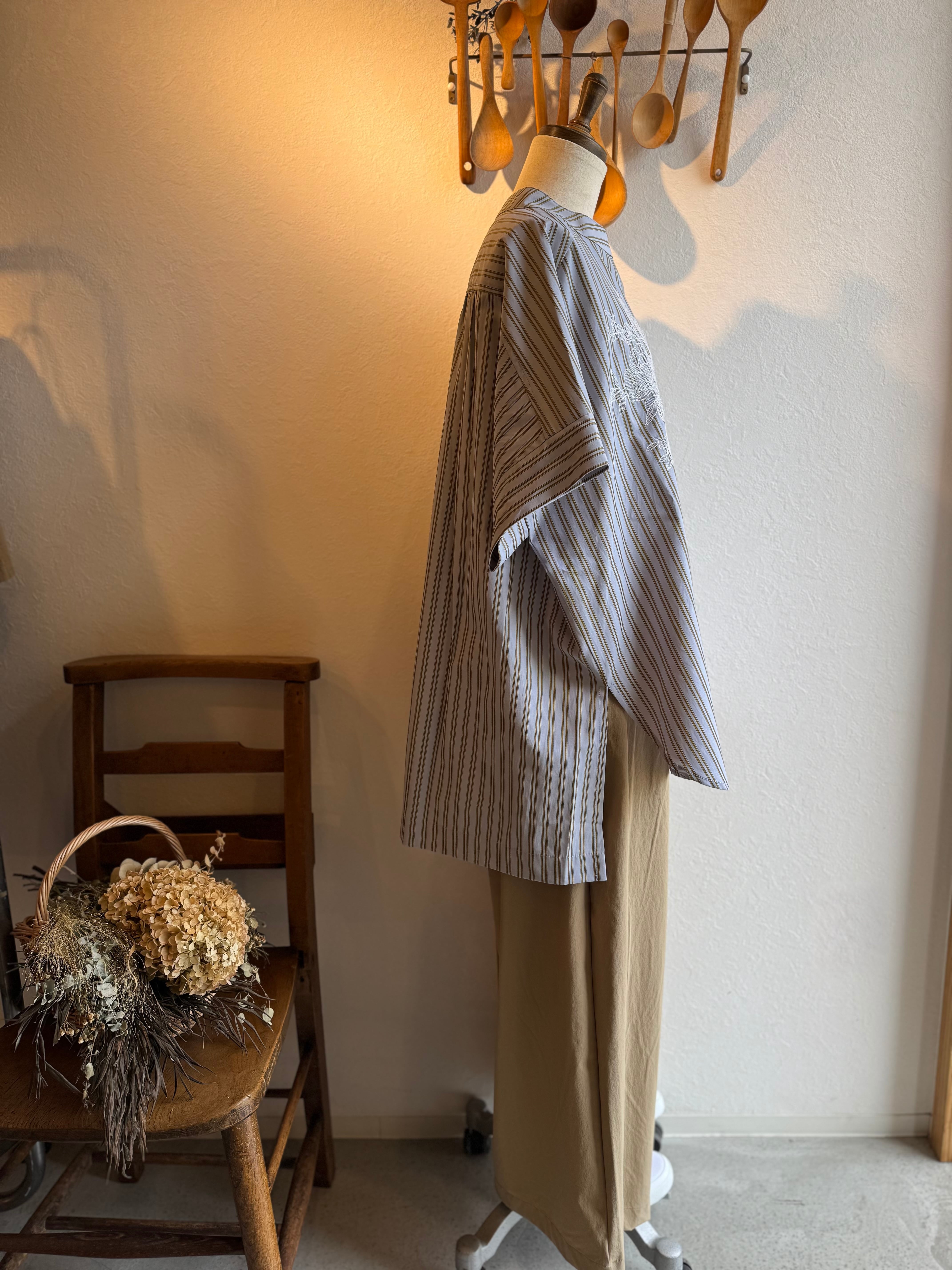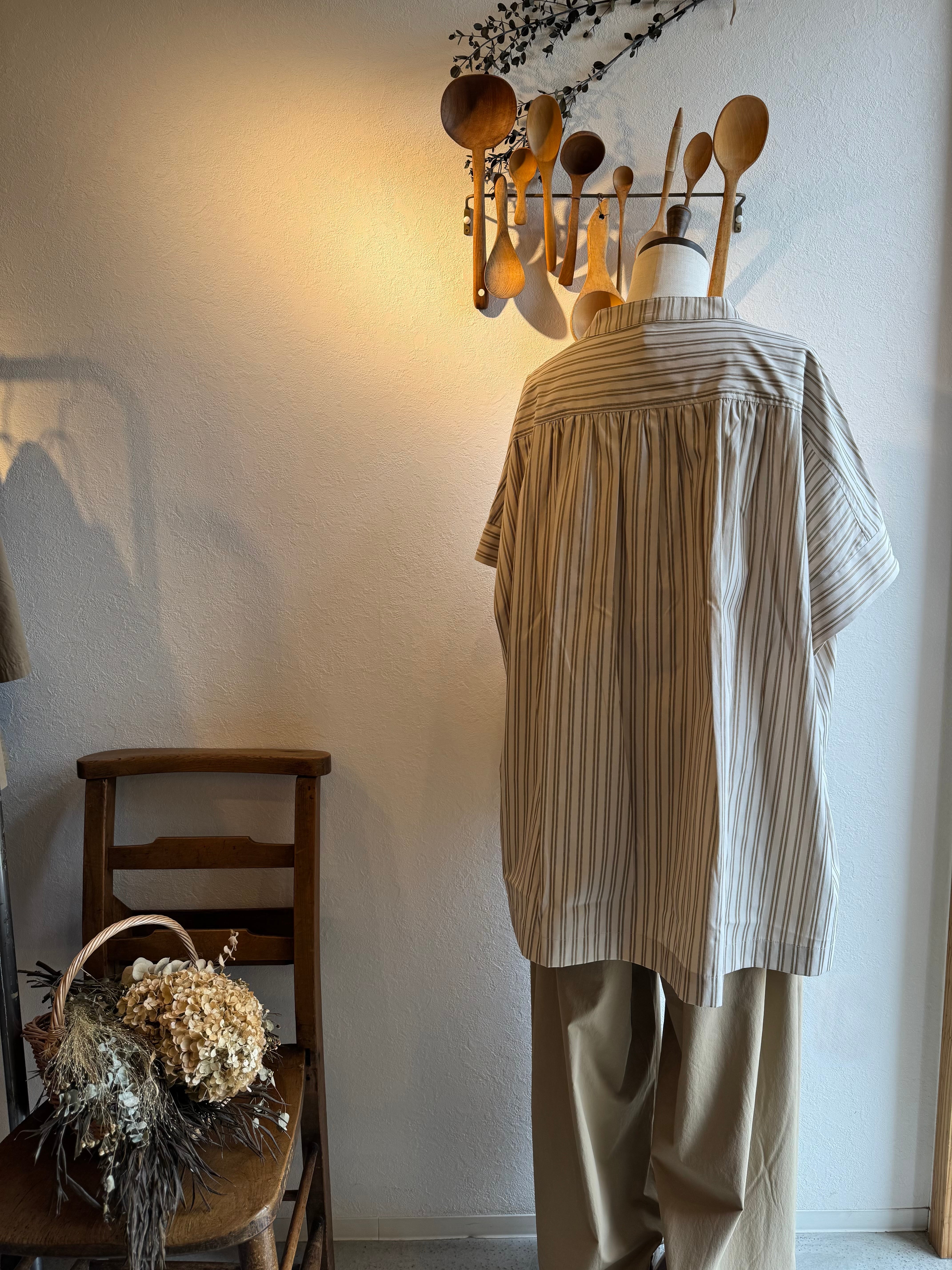 春夏通して着ていただけるミックステイストのストライプシャツです。