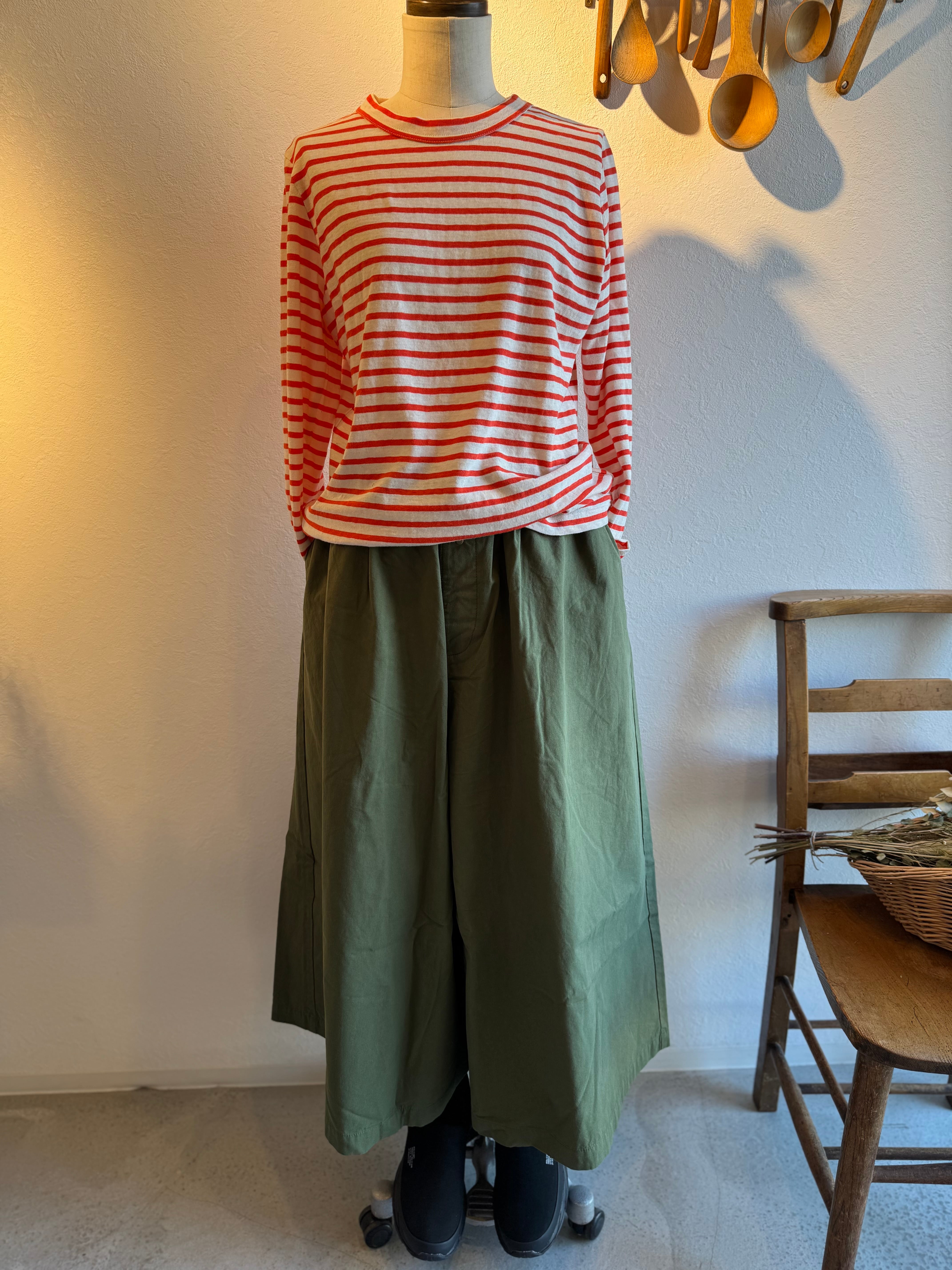 年間通して着ていただけますが、特に春夏はラフなトップスとの合わせはでリラックス感たっぷりで、とてもおすすめ◎