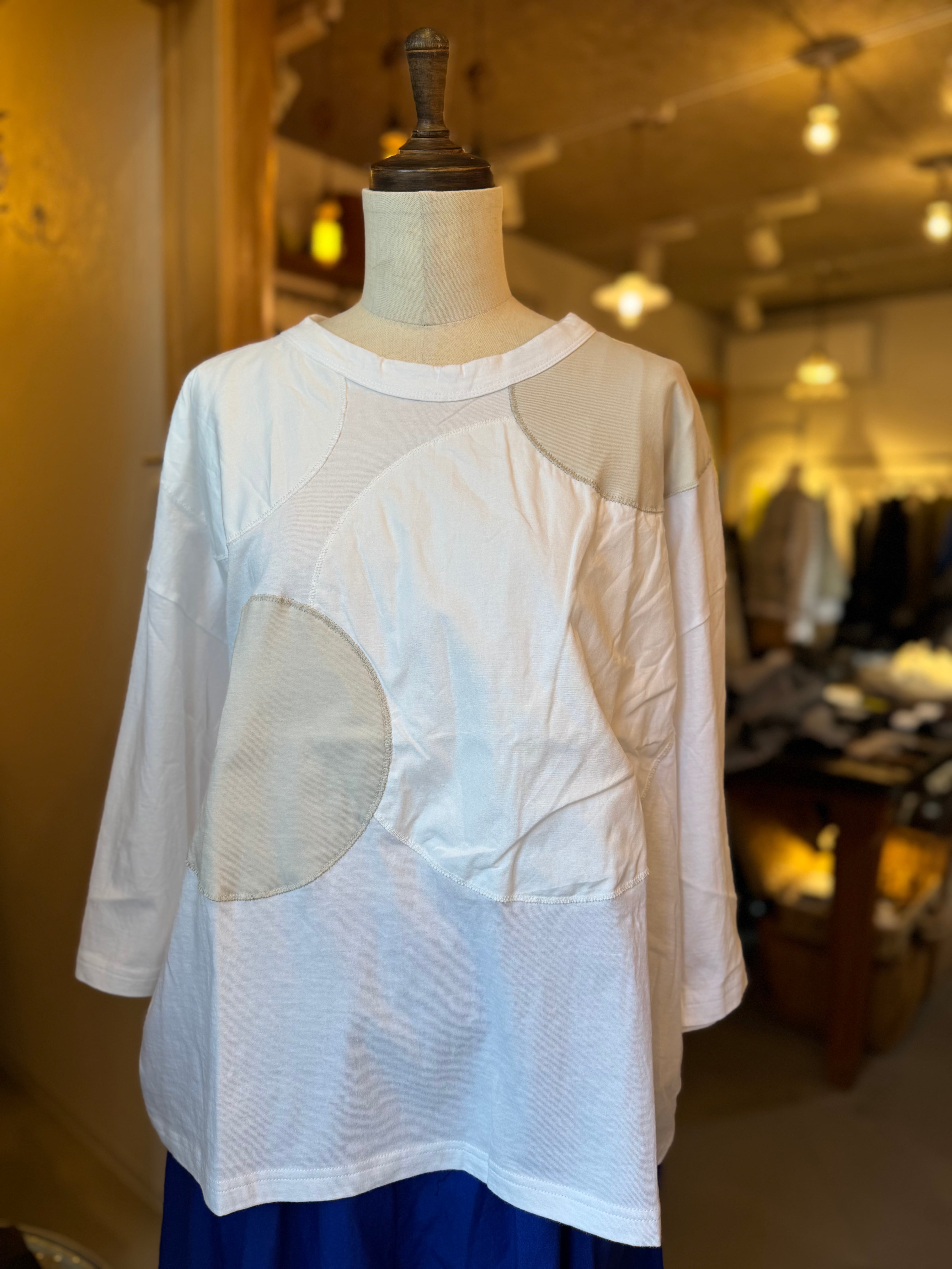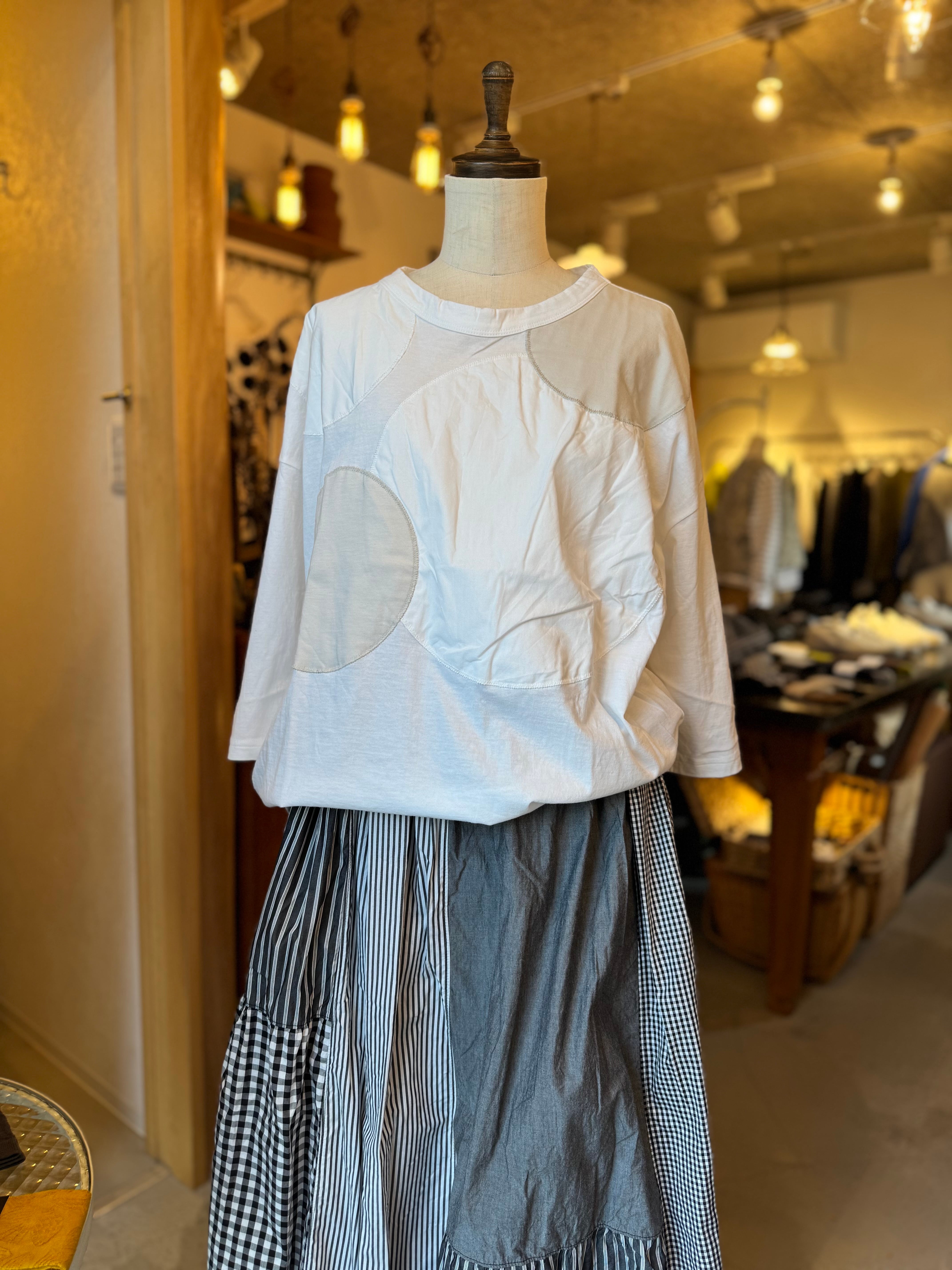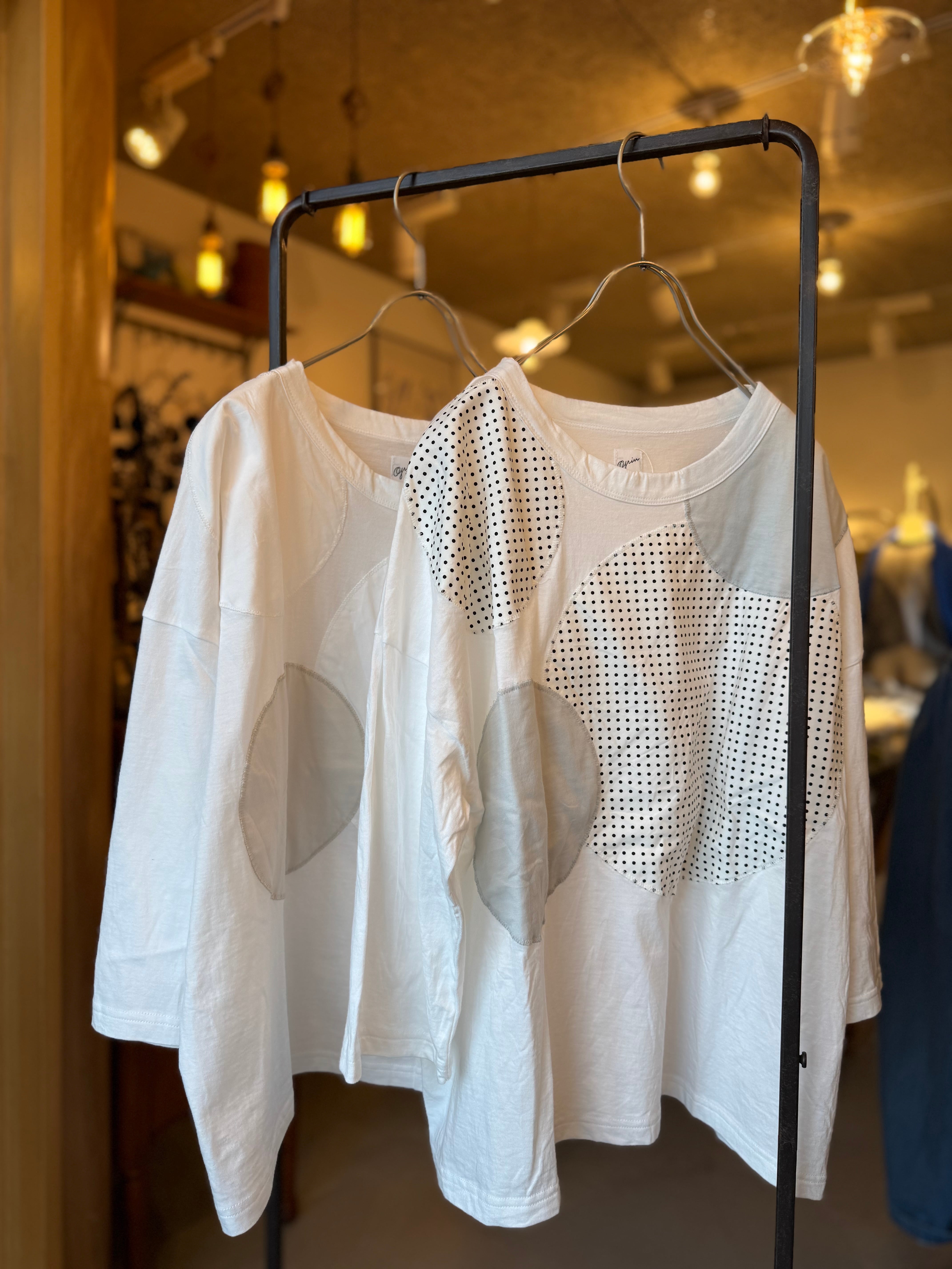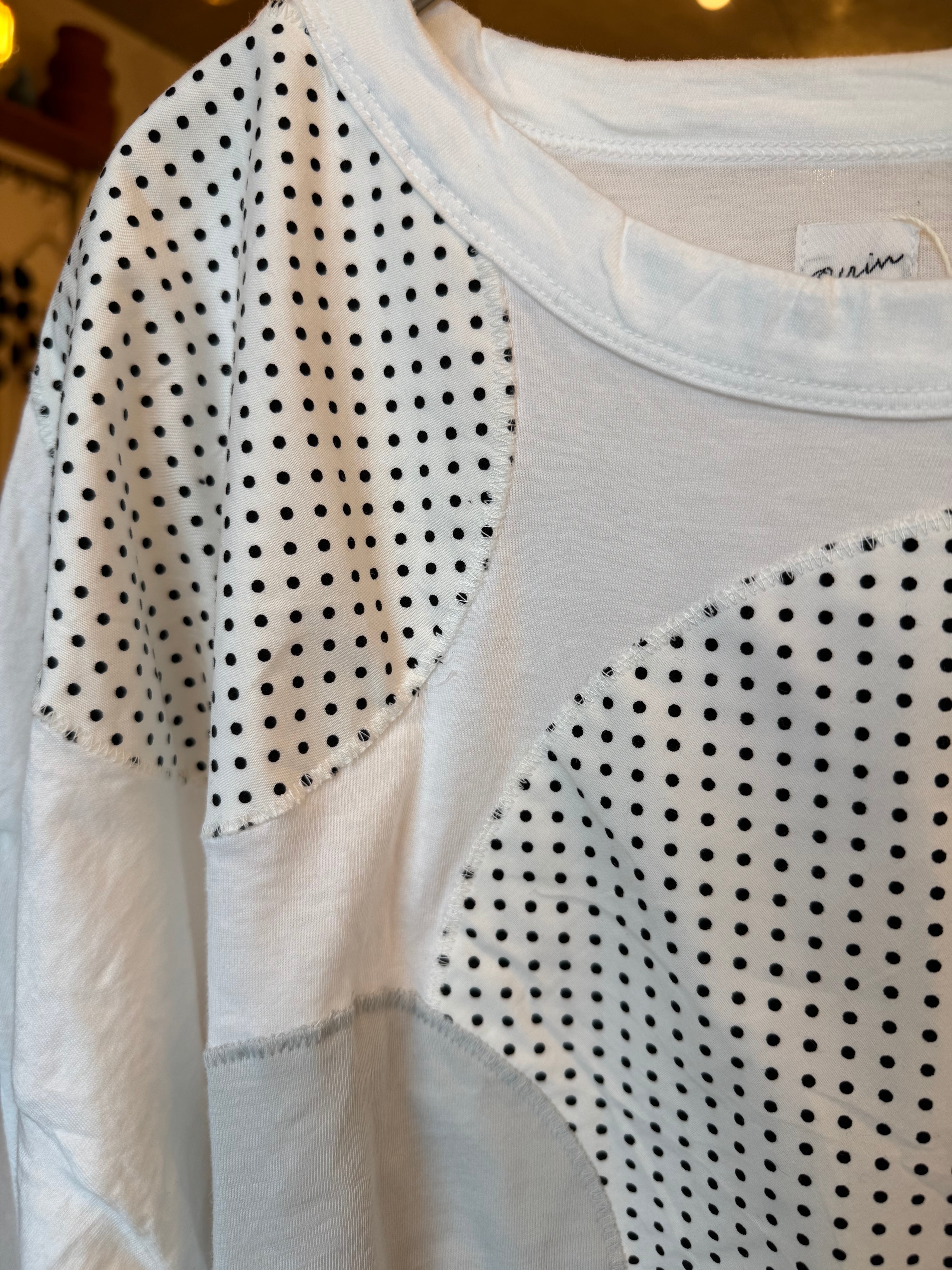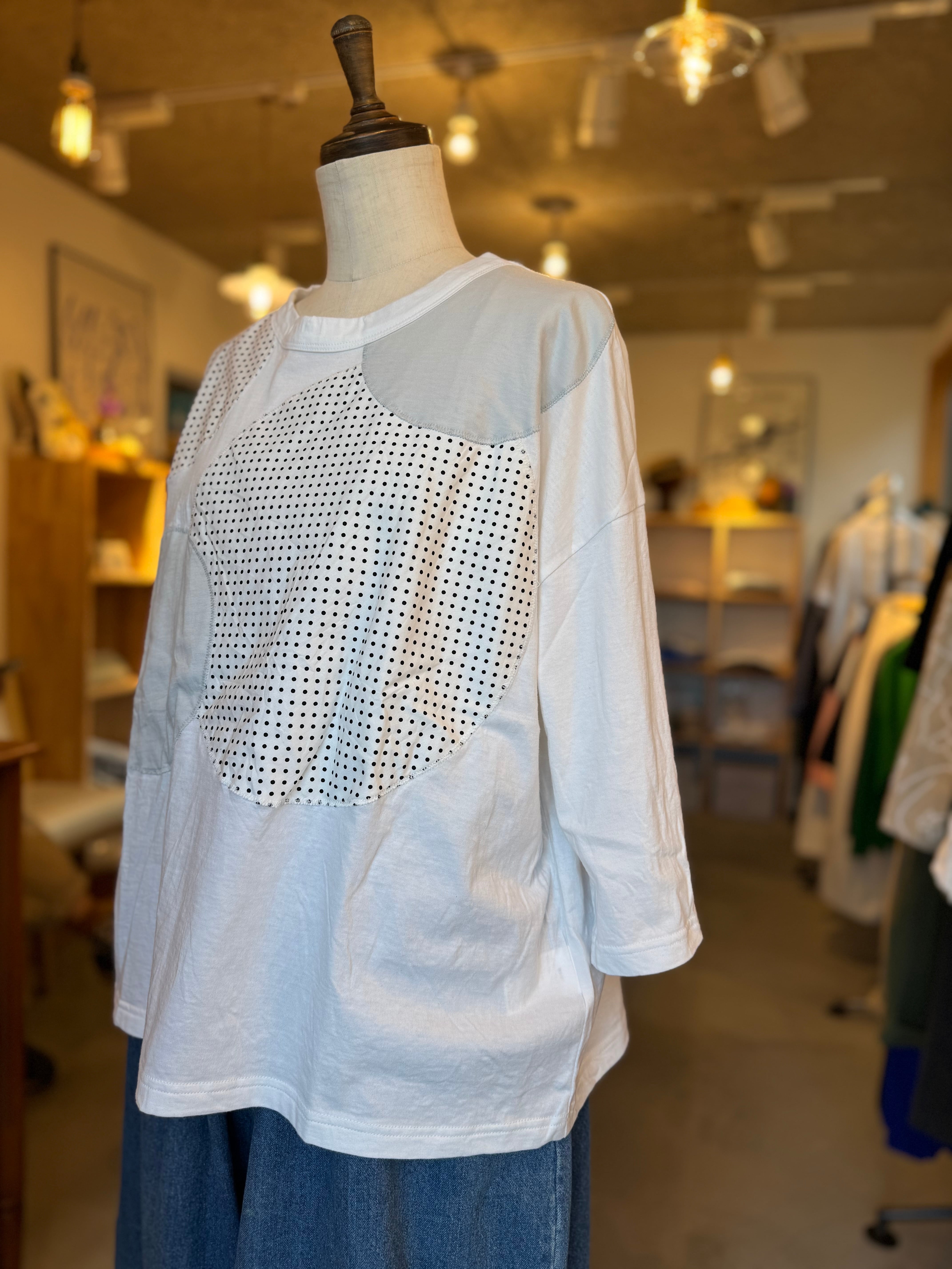 異素材の大きなドット型生地をパッチワークした楽しいプルオーバーです!
