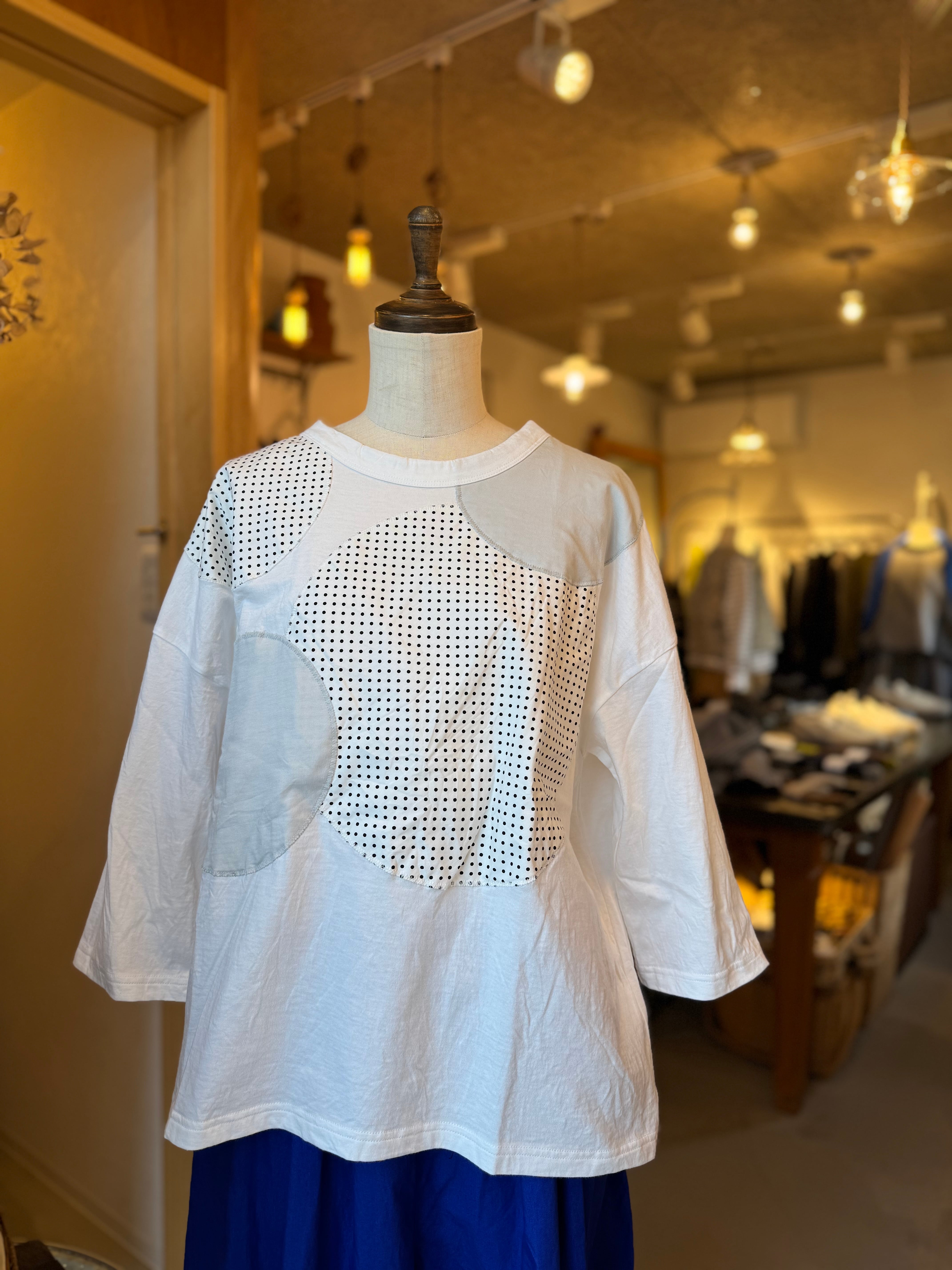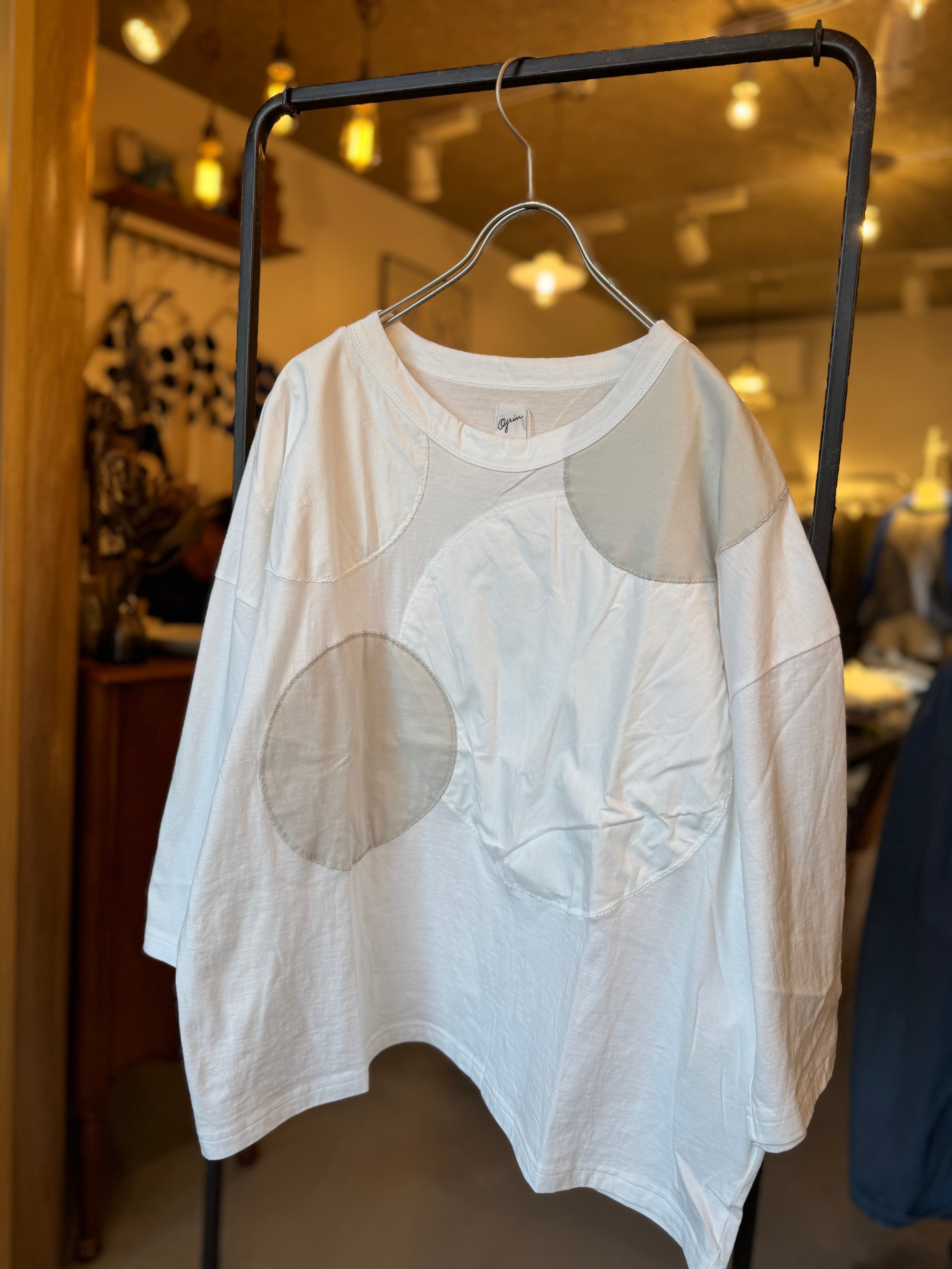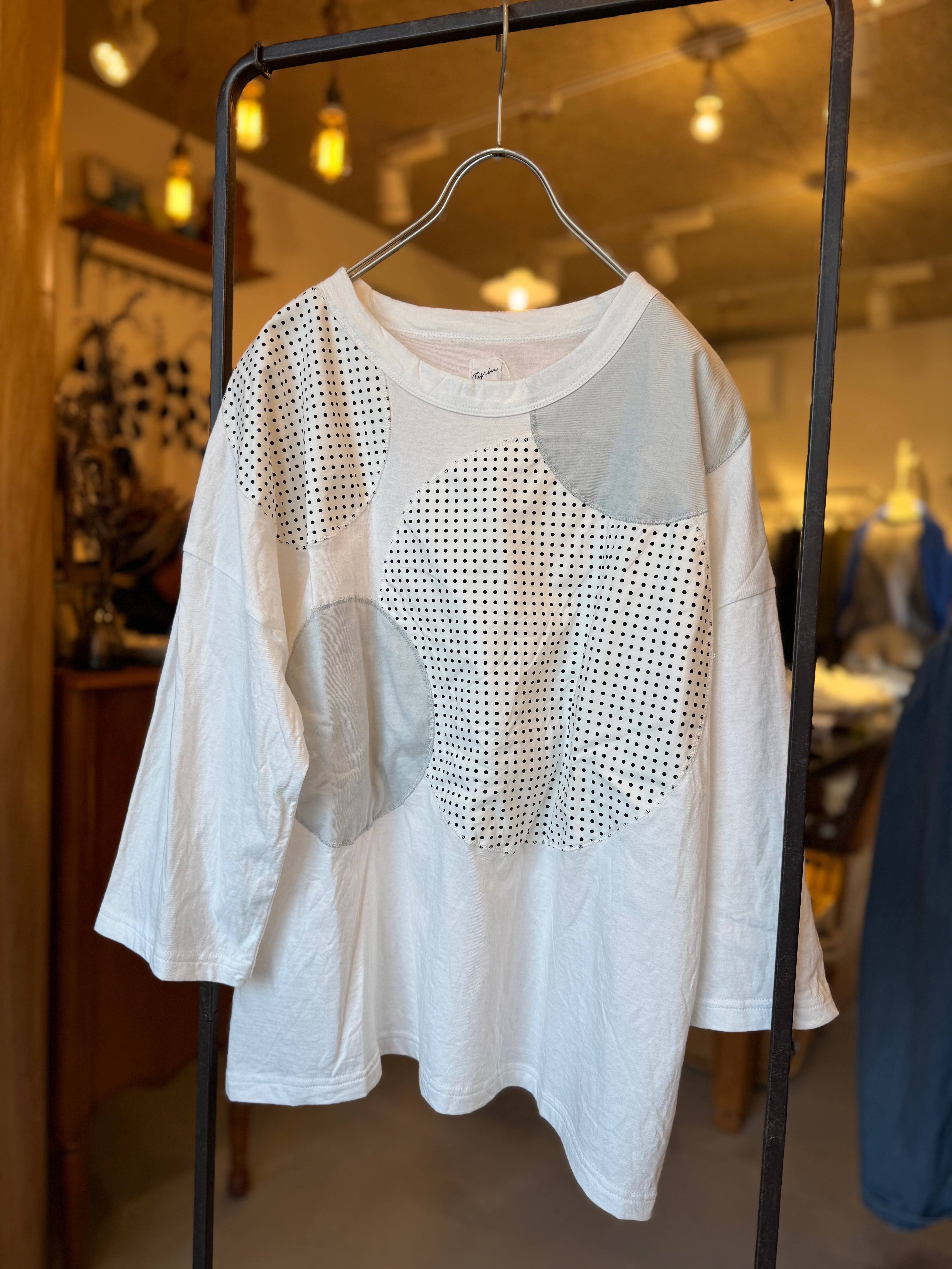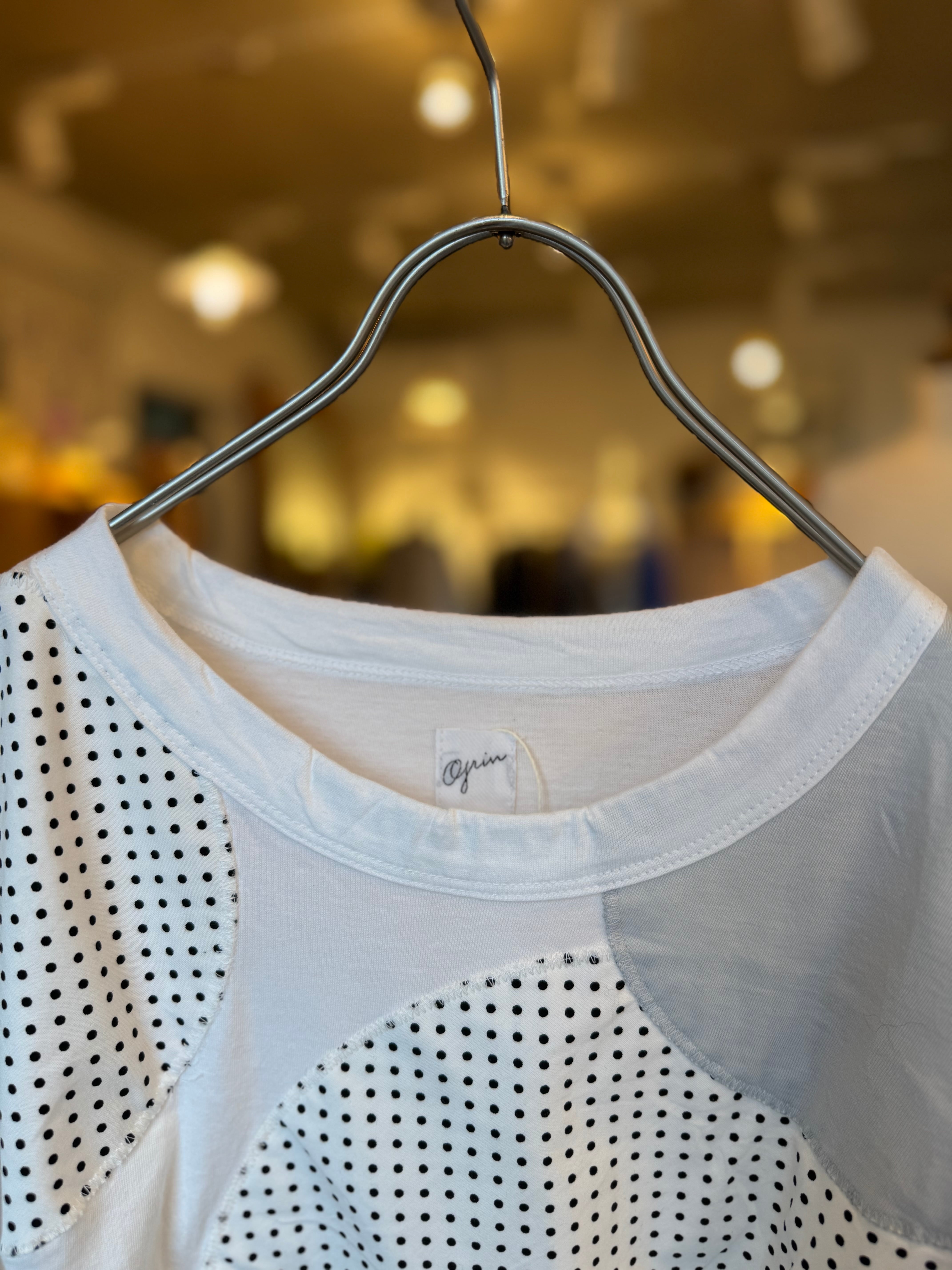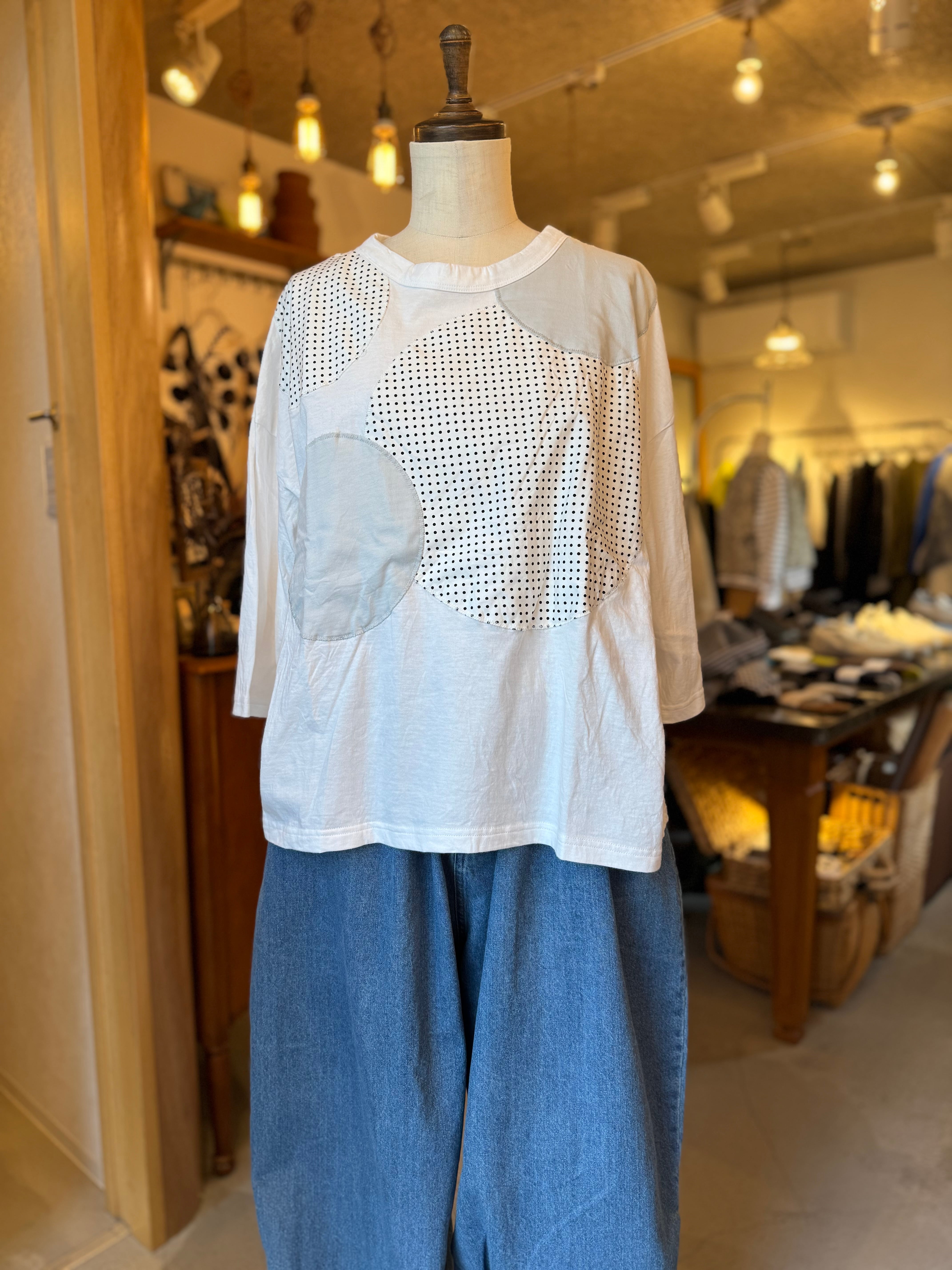 異素材の大きなドット型生地をパッチワークした楽しいプルオーバーです!