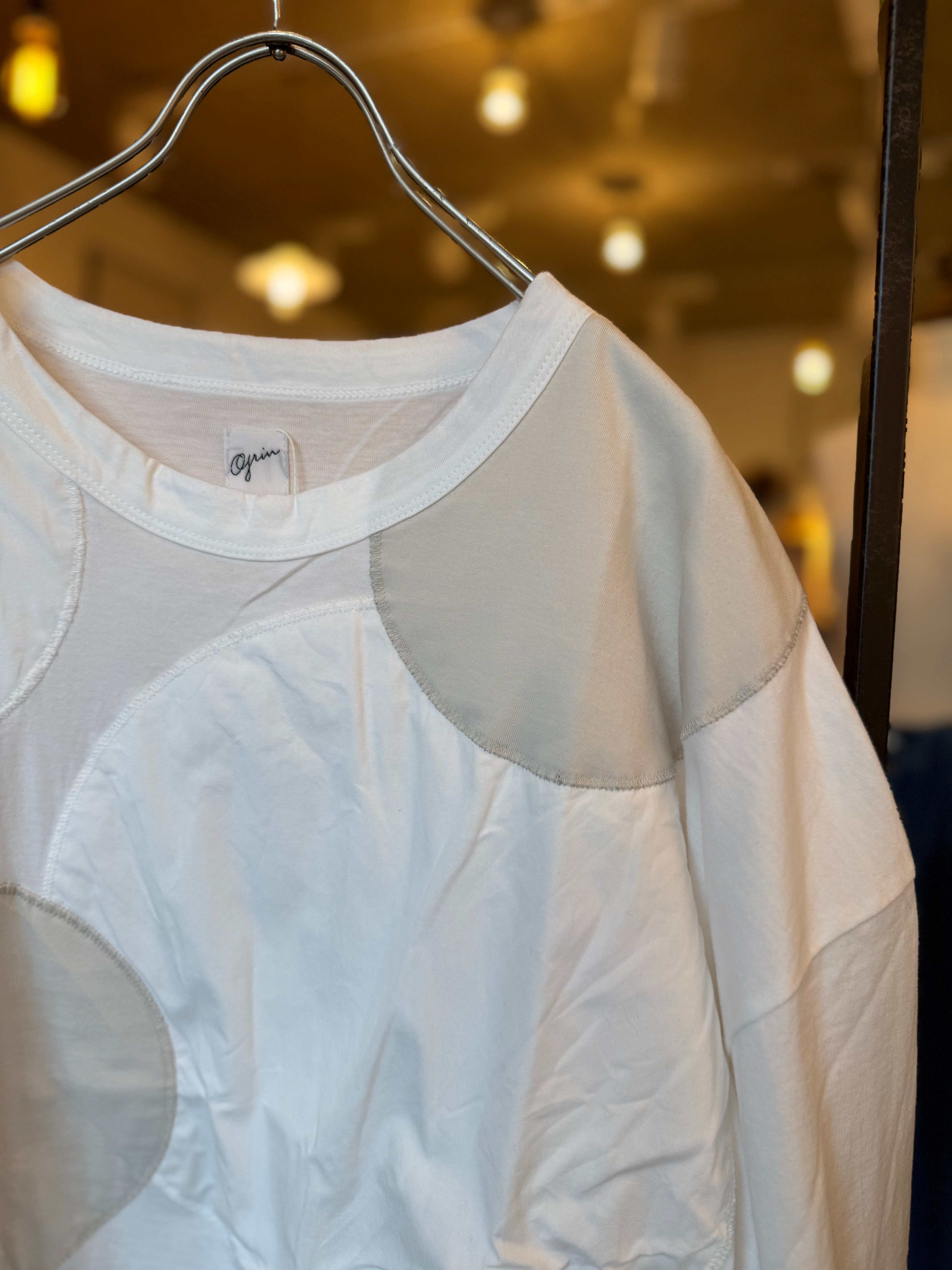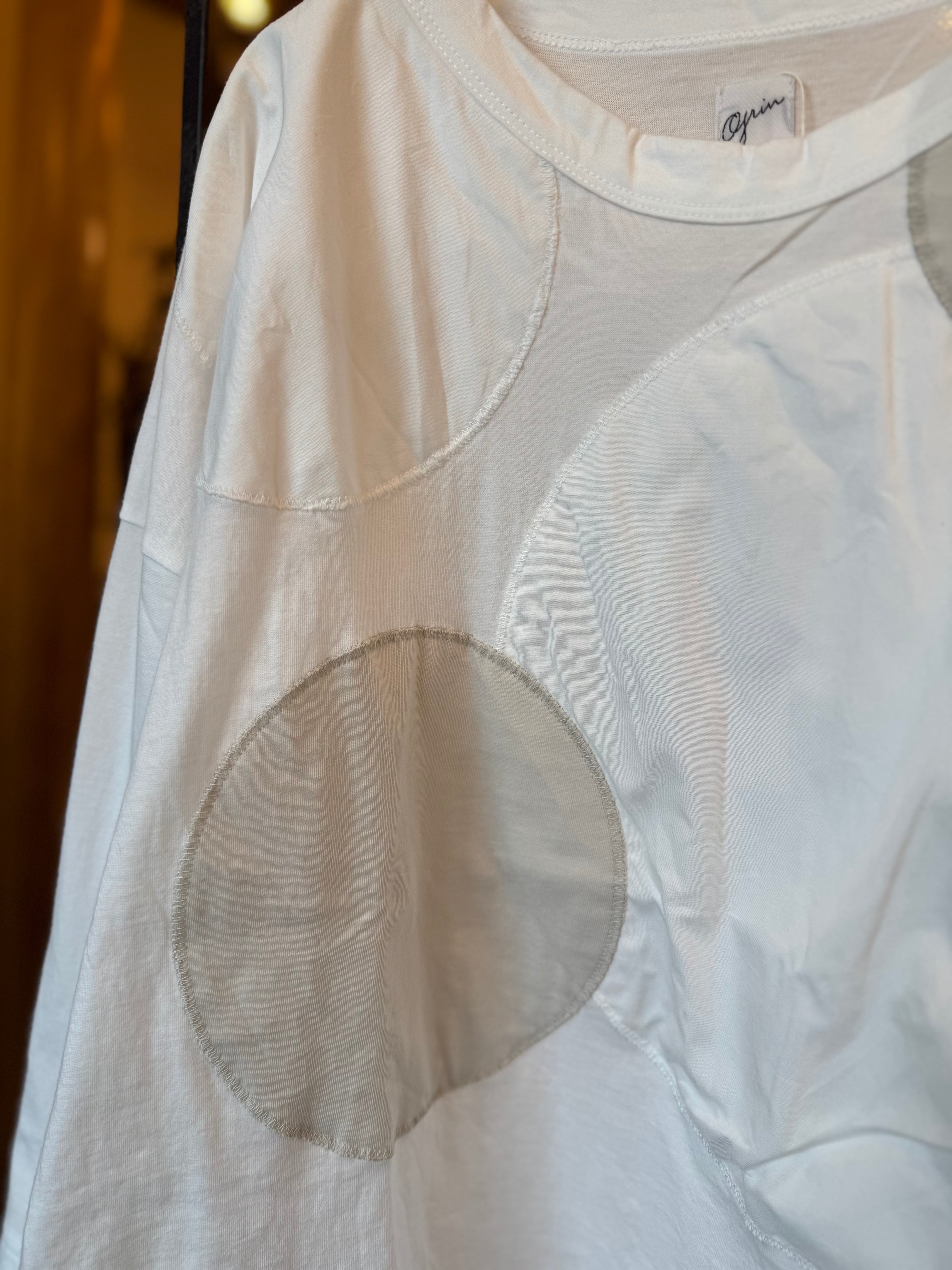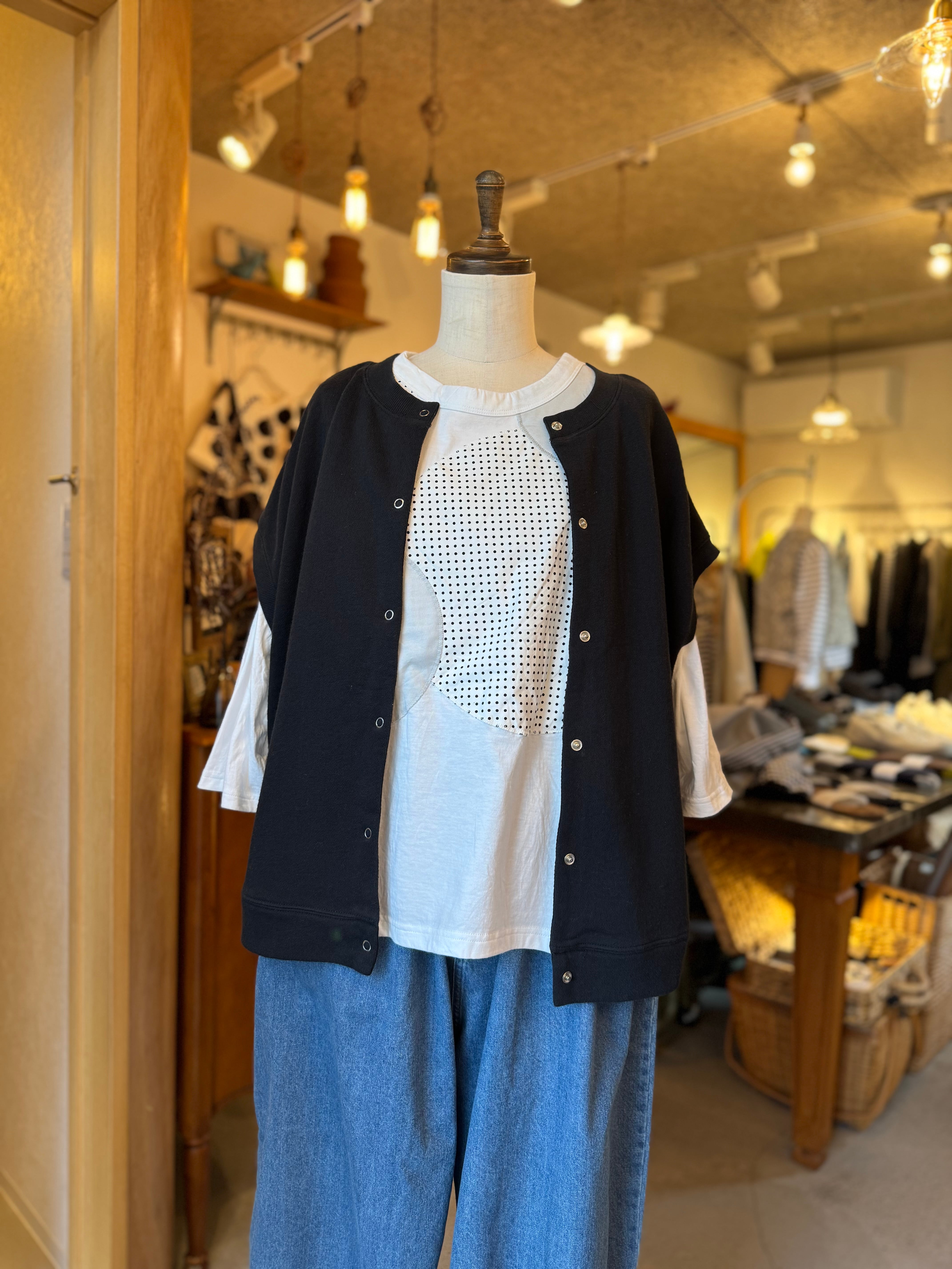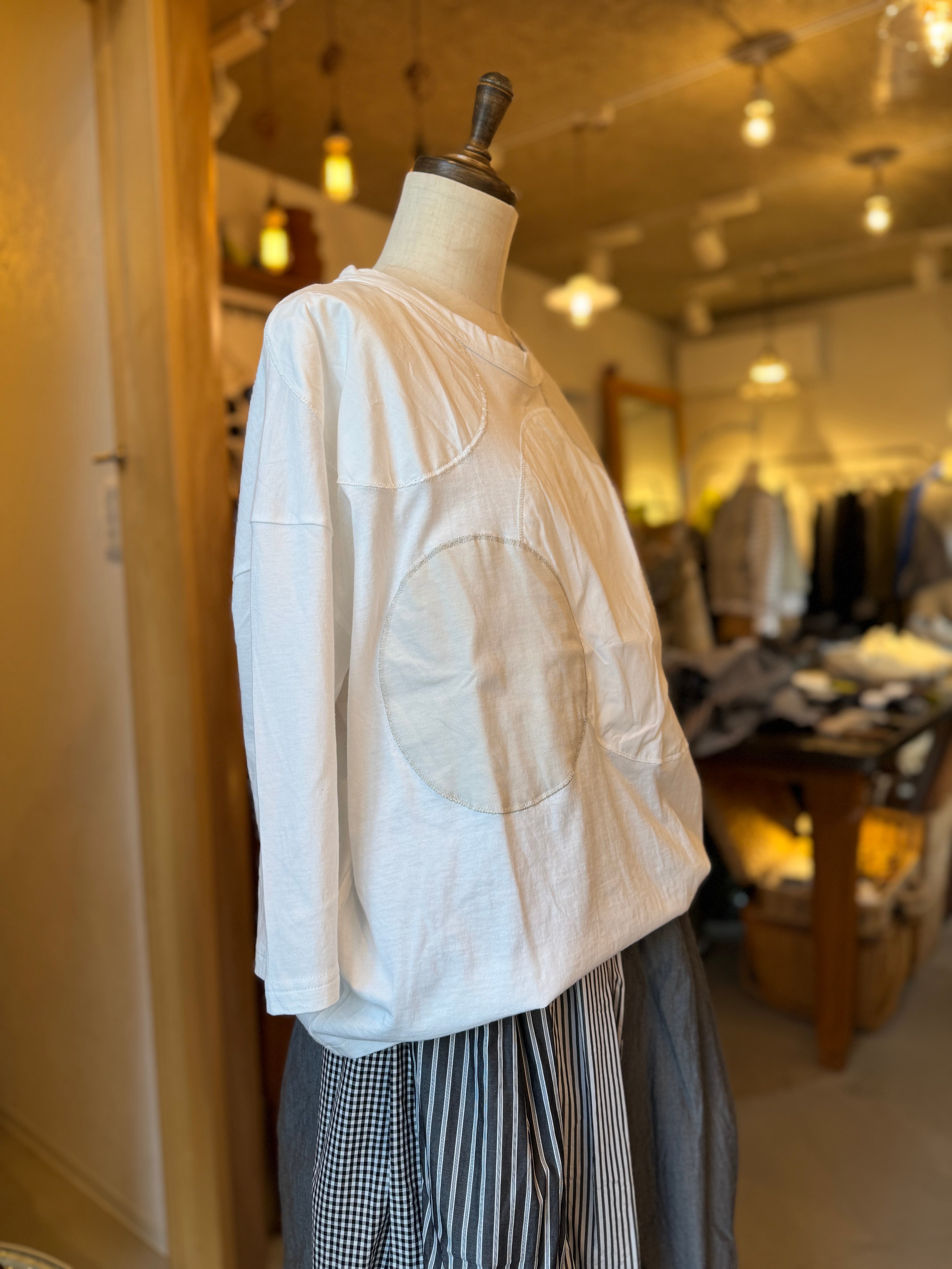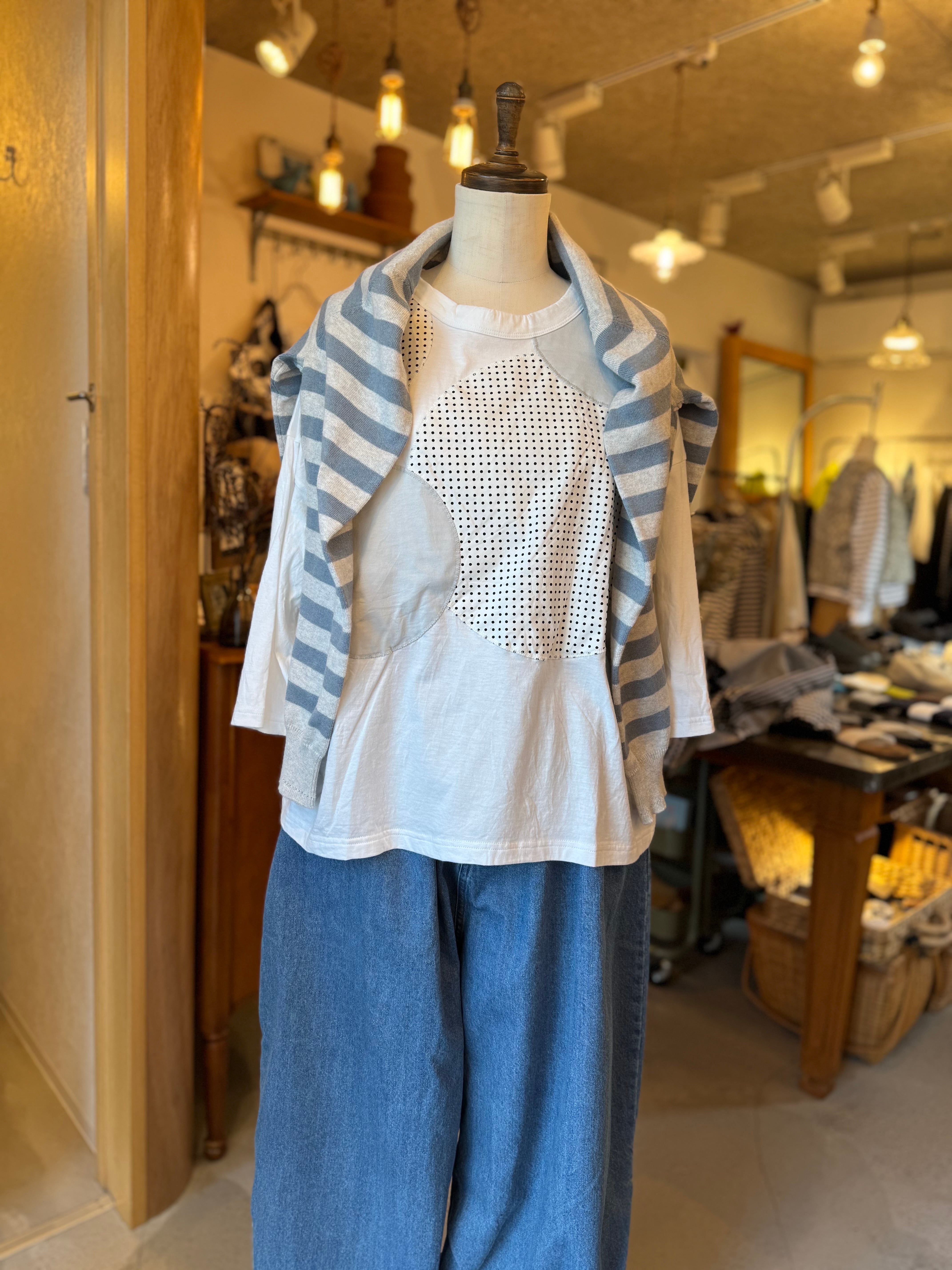異素材の大きなドット型生地をパッチワークした楽しいプルオーバーです!