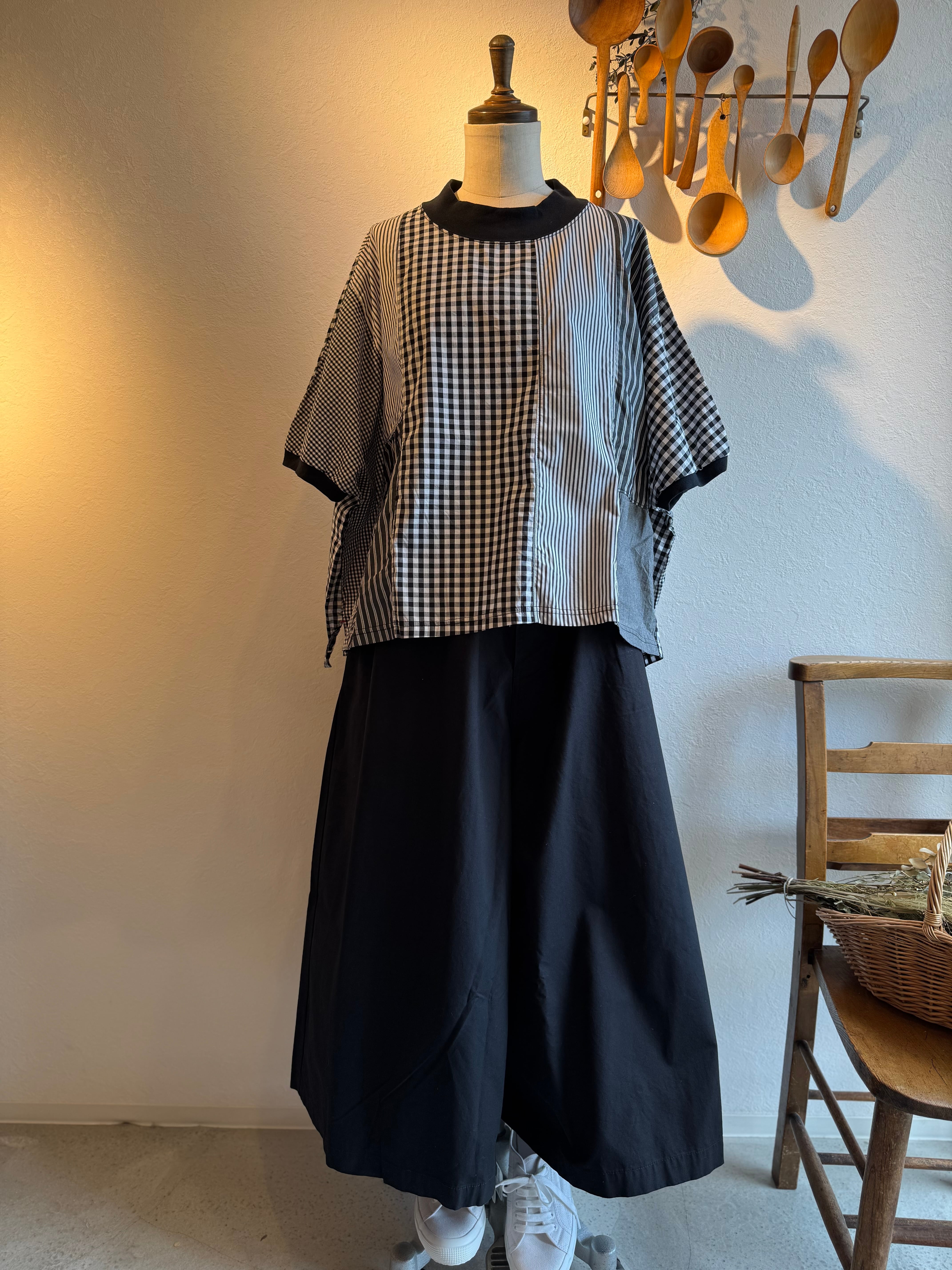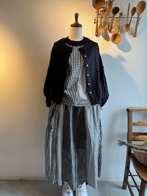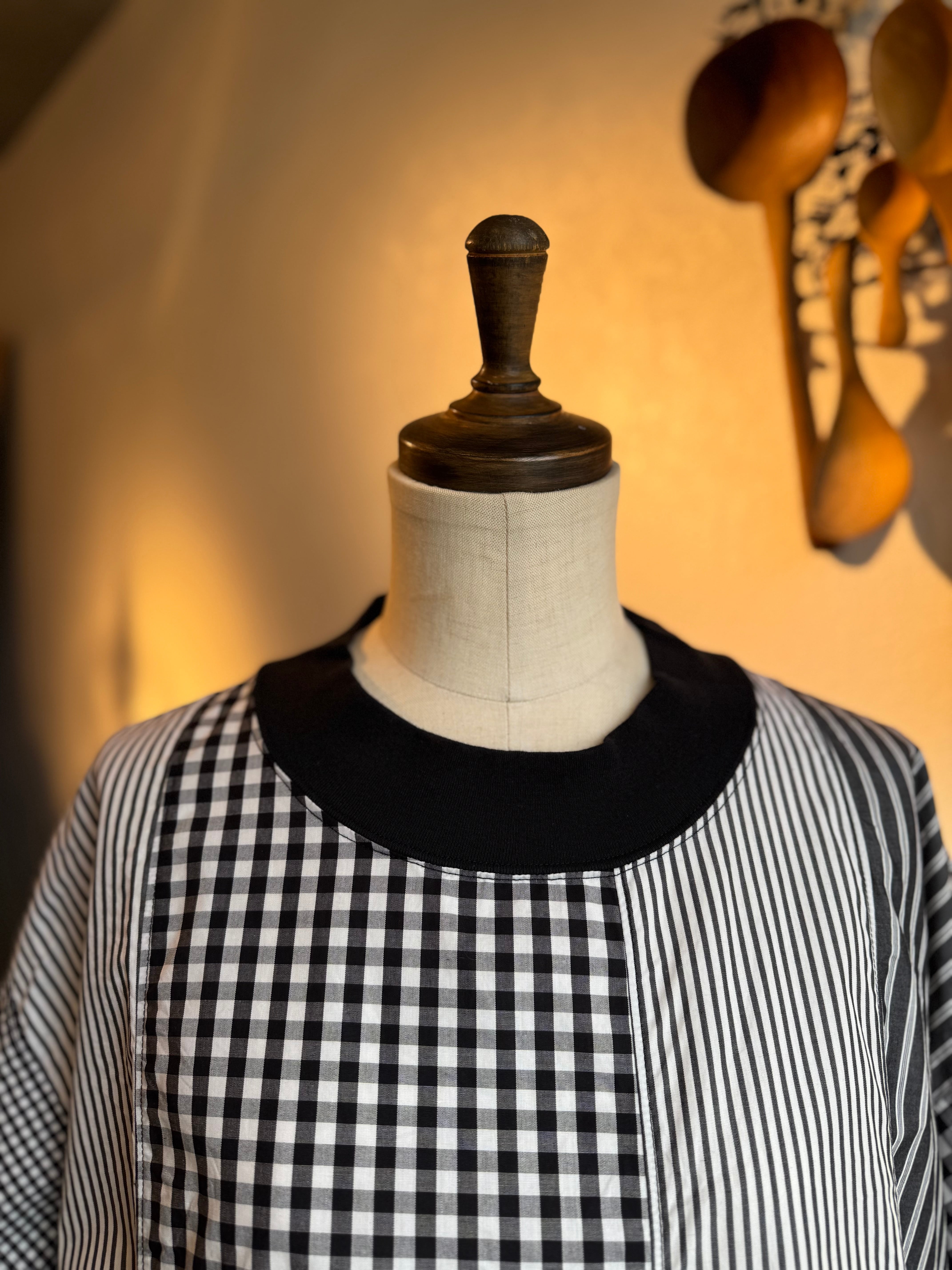 NATURAL LAUNDRY クラフトパネル チェック&ストライプ ブラウス