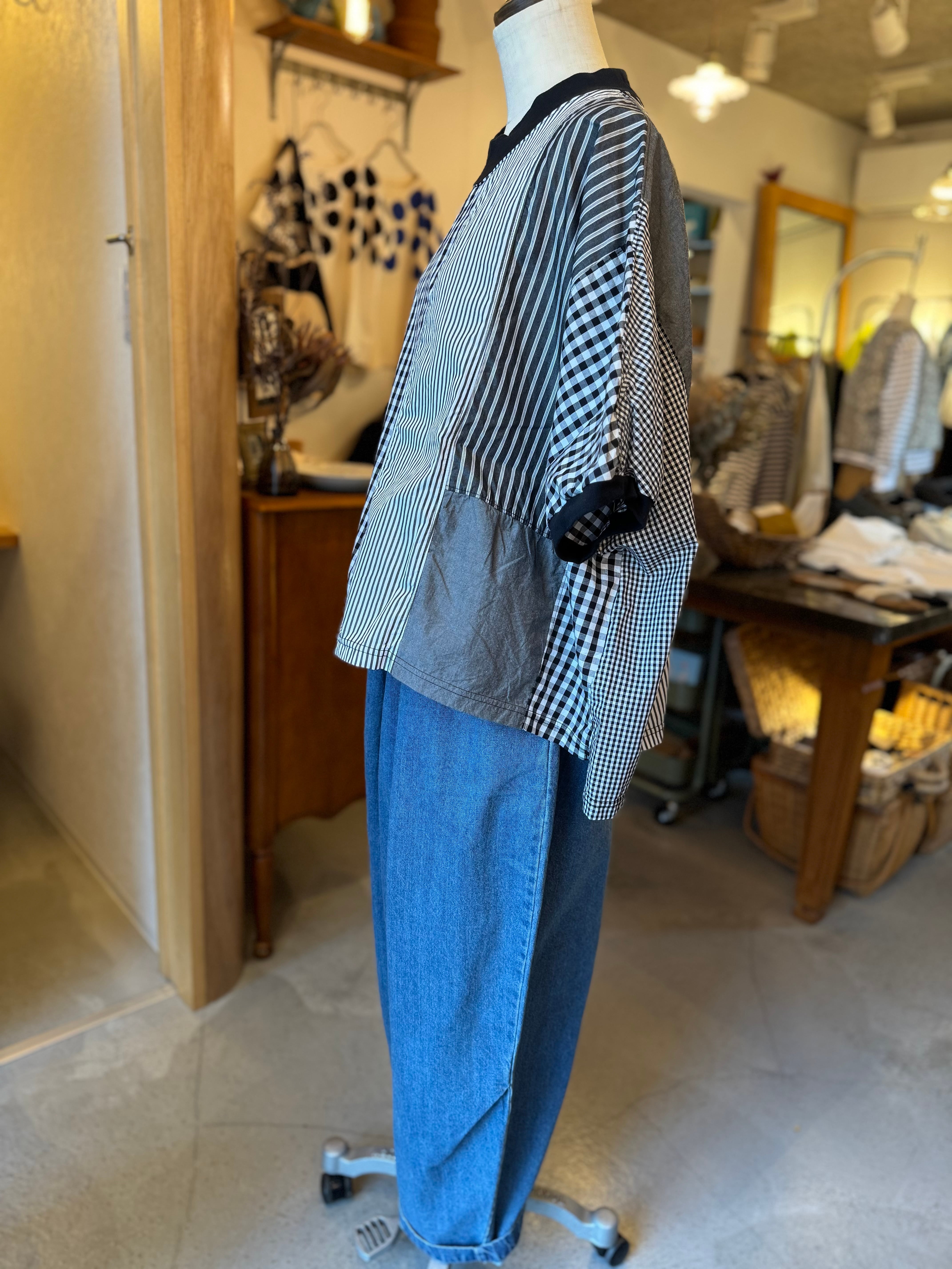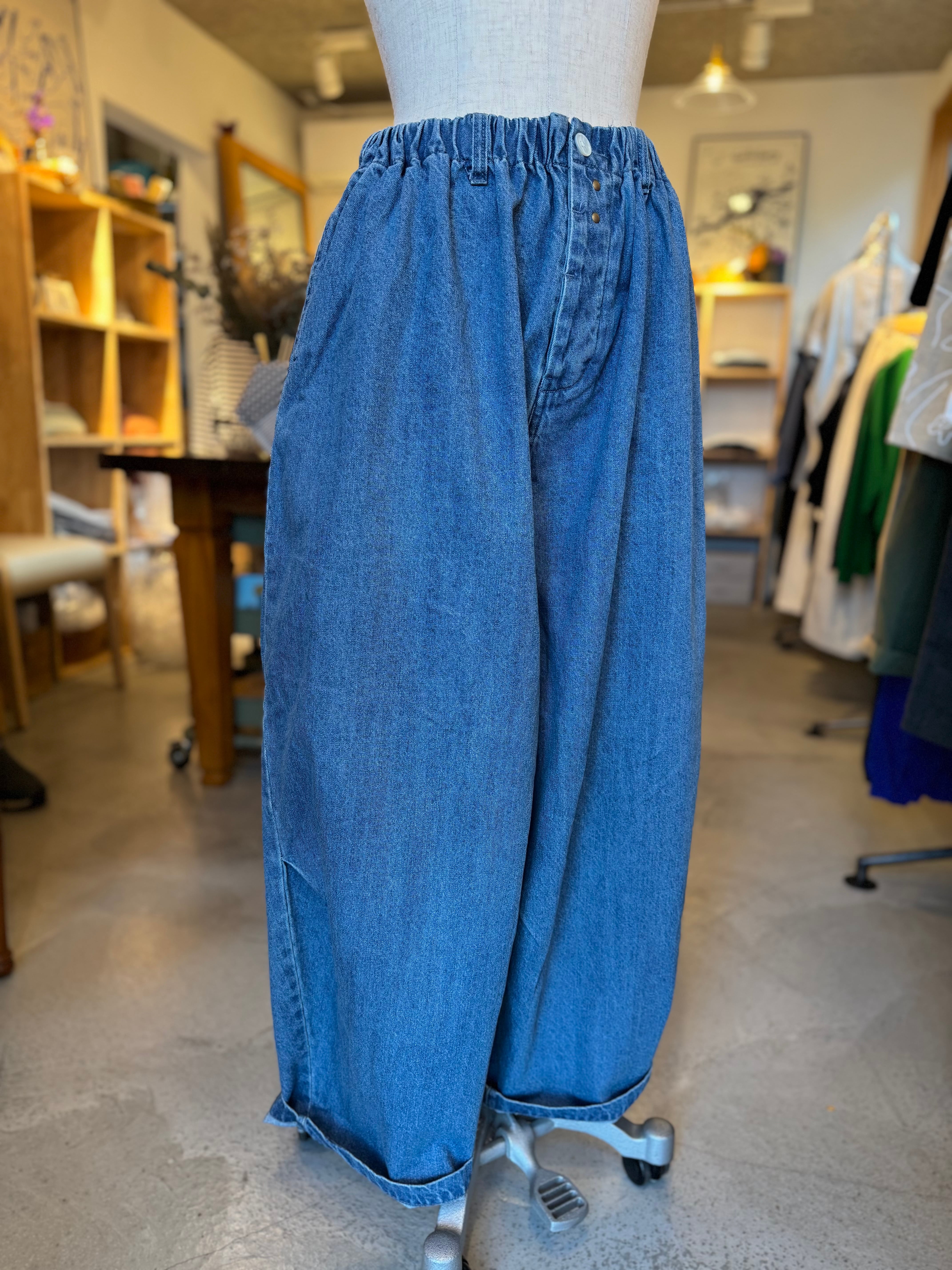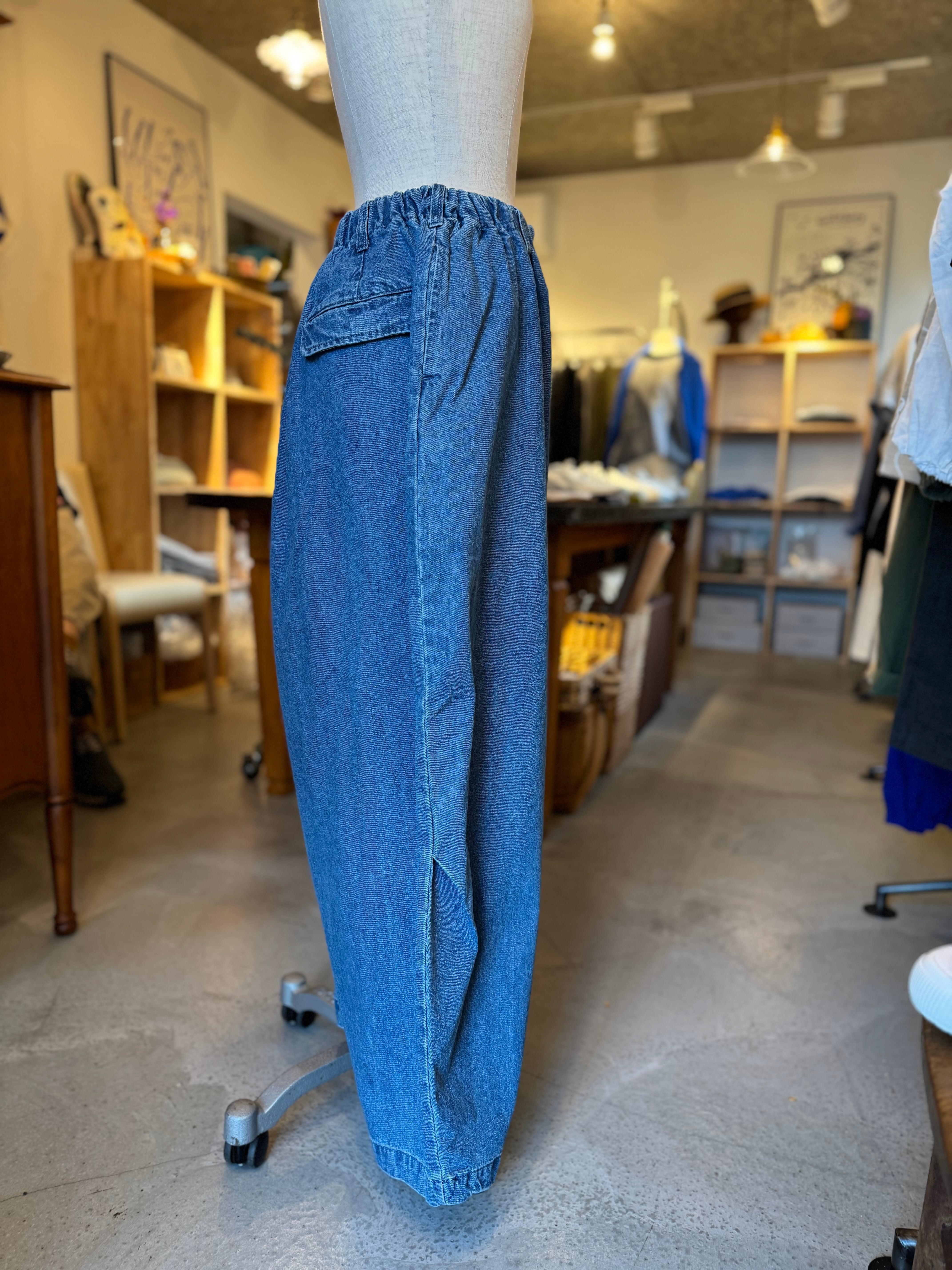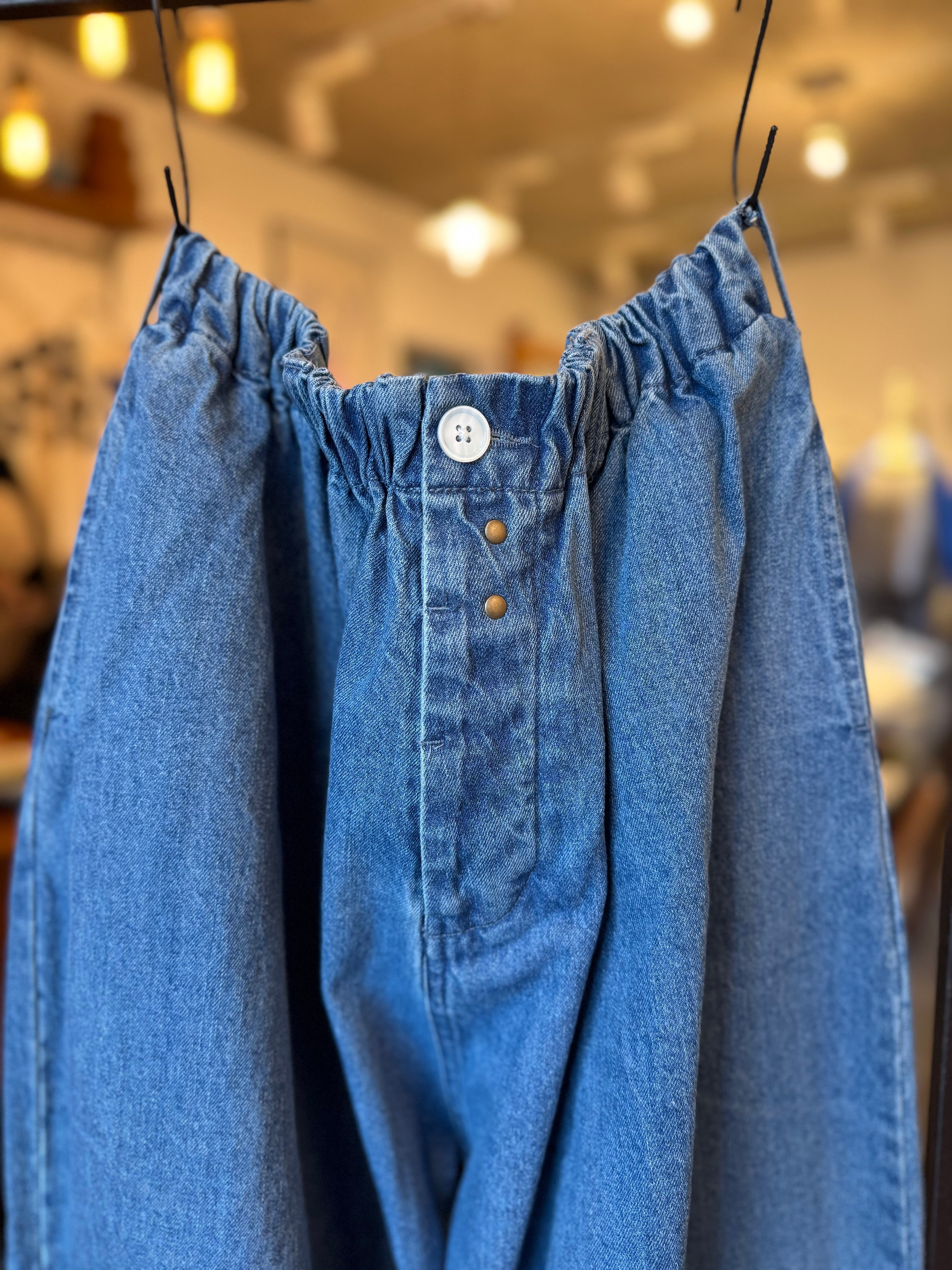 今回は春らしく色落ちさせたライトインディゴです。たくさんのタックやたっぷりとしたシルエットで唯一無二なシルエットはデニムになっても変わりません!