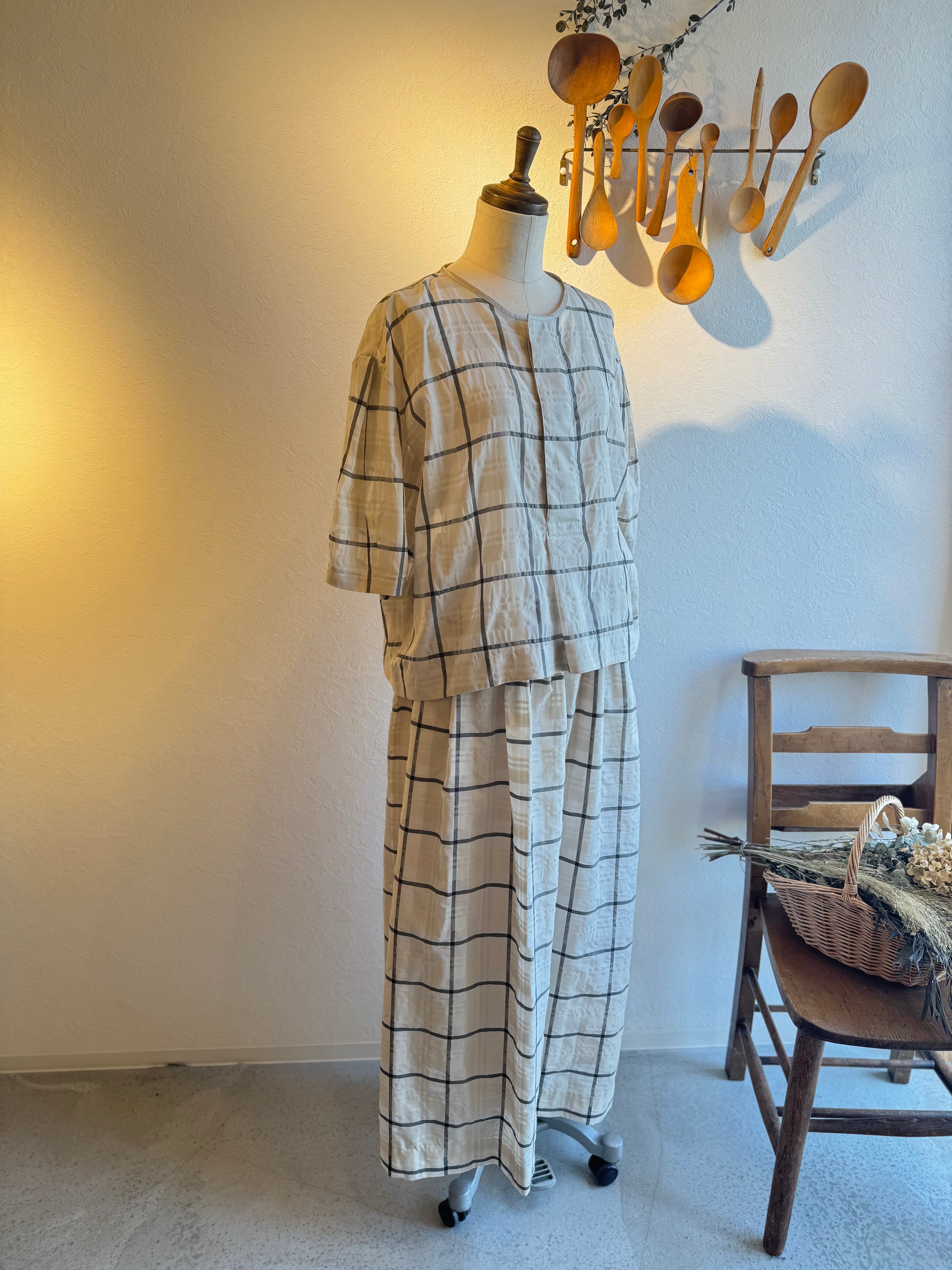 SHUKADO✂︎TOKYO シアーチェックワイドパンツ