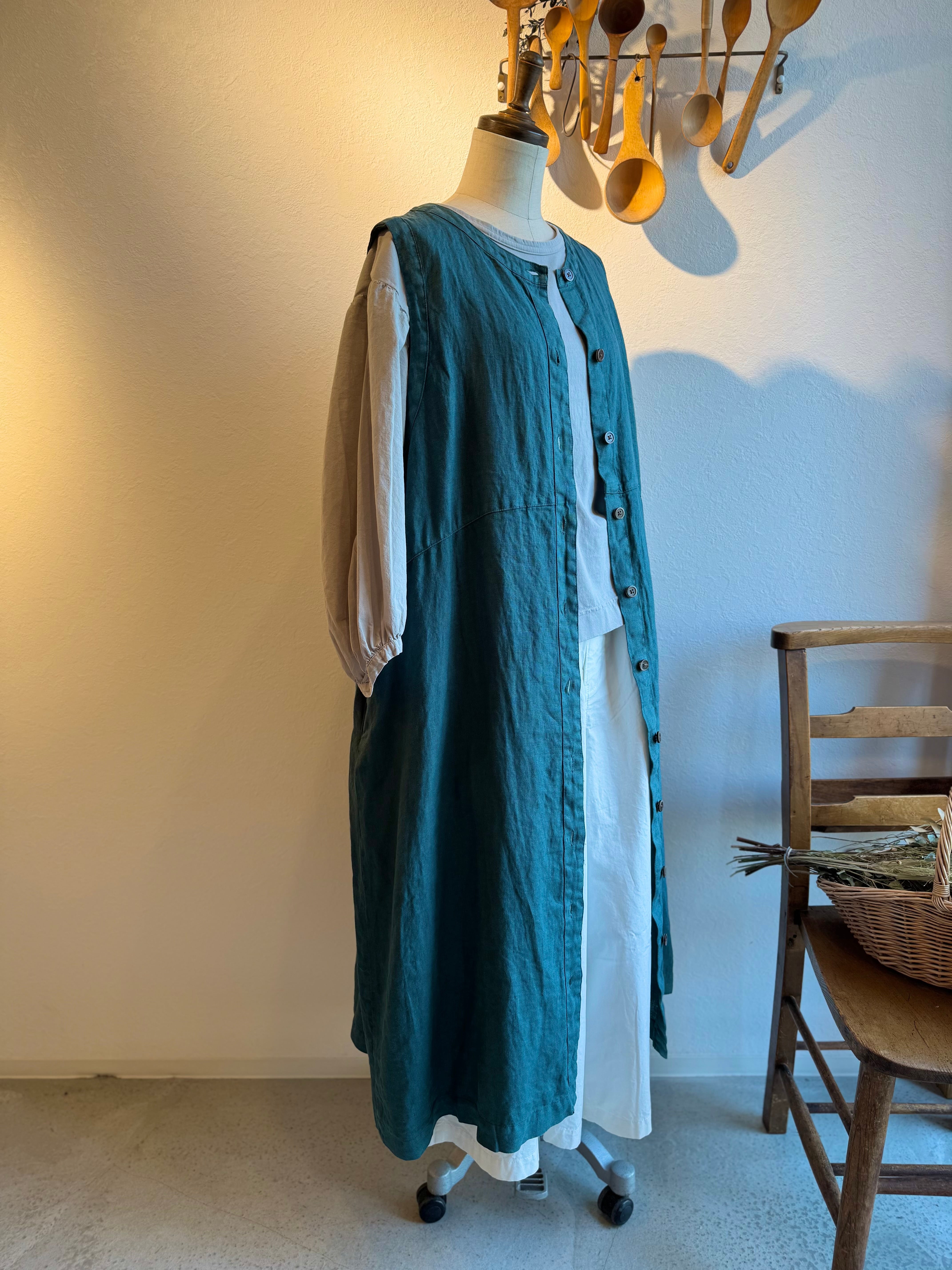すっきりとして合わせやすいネイビーと、リネンの素材感がよくでていてナチュラルに着られるブルーグリーンの2カラーです。